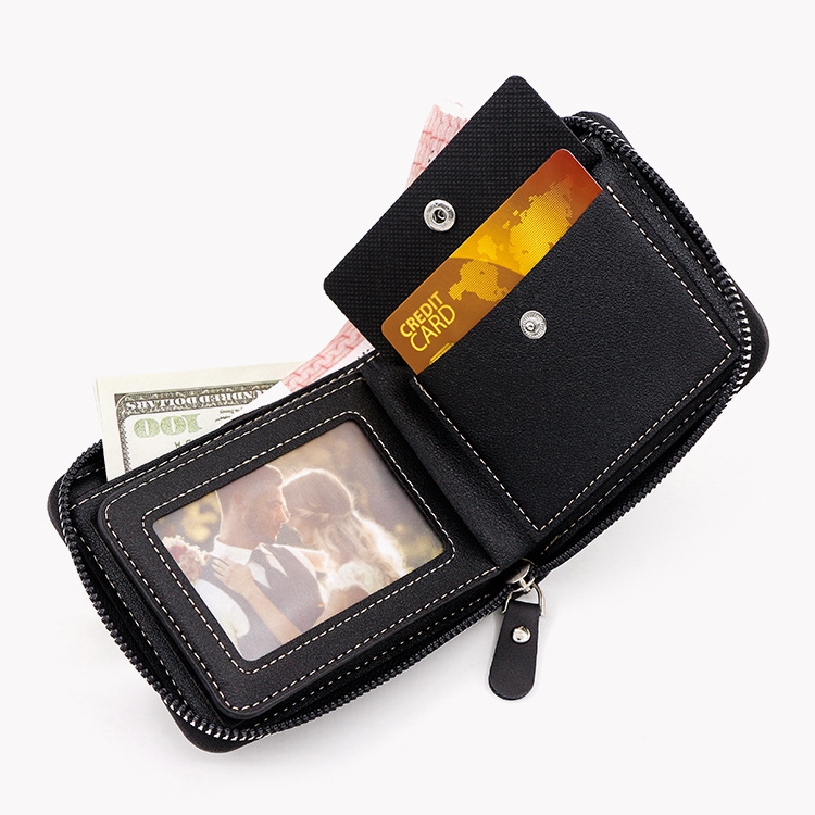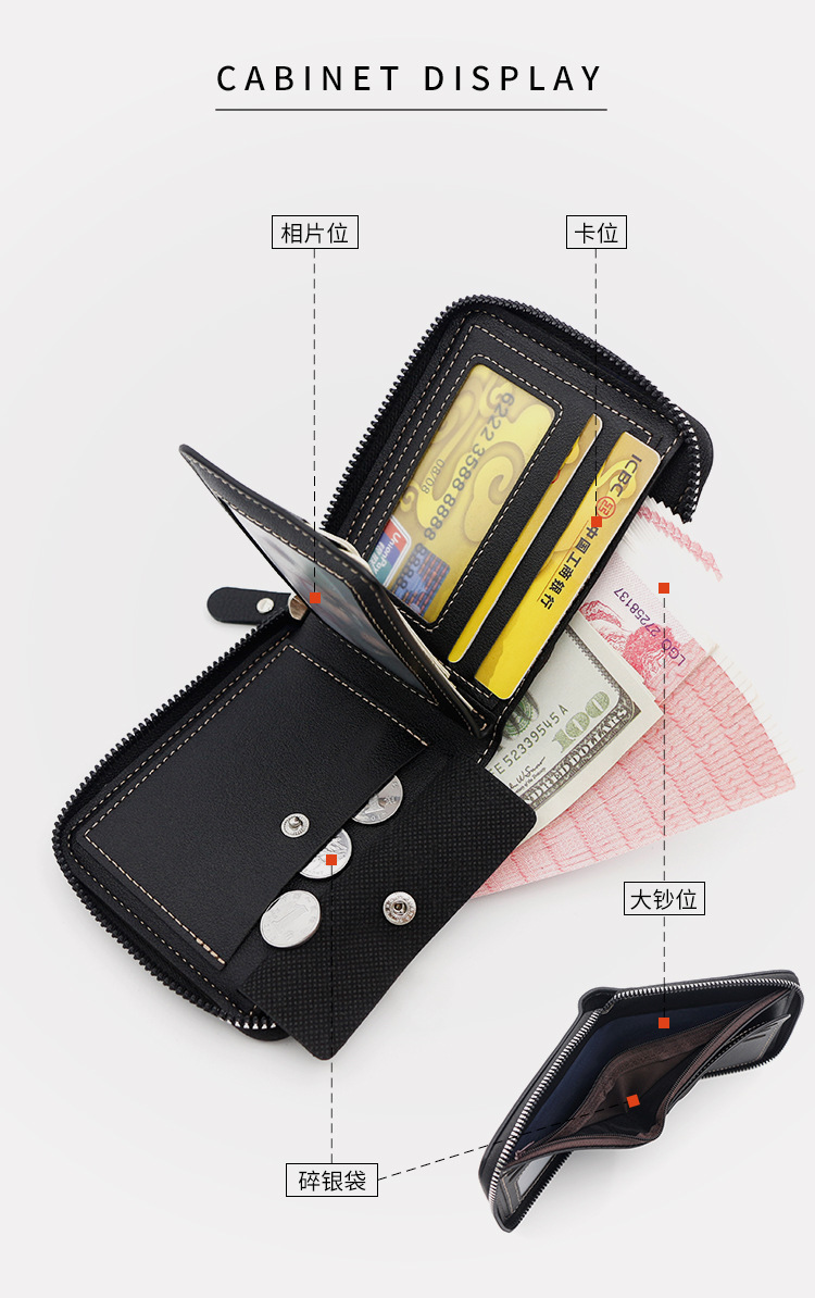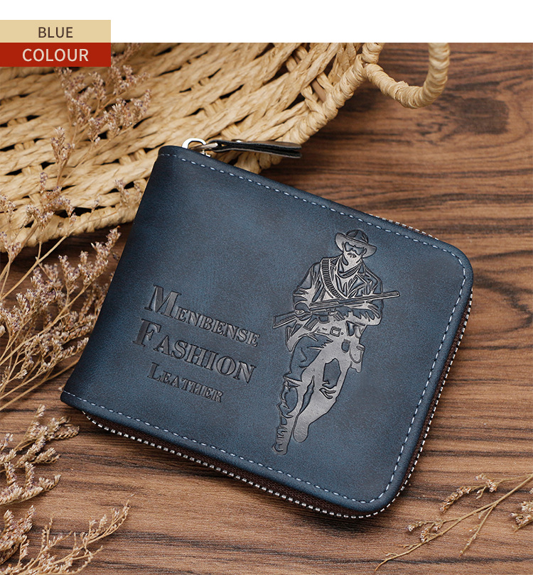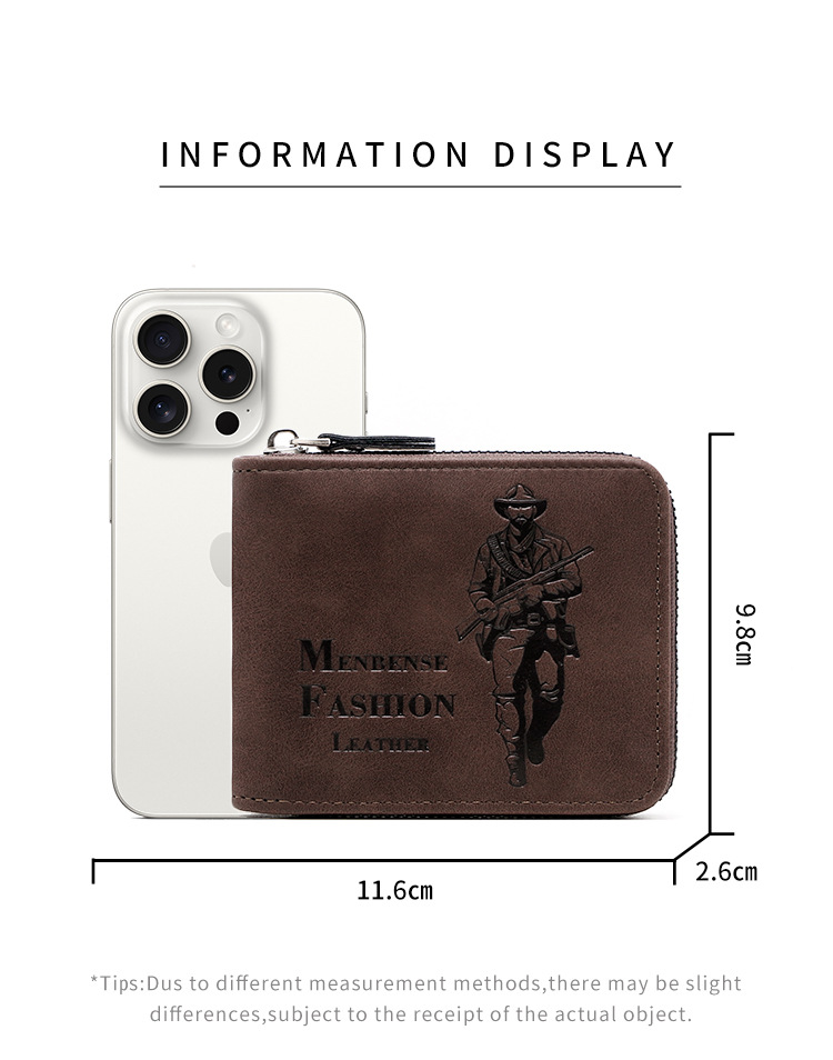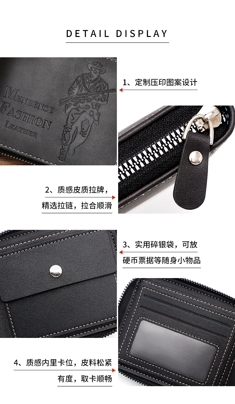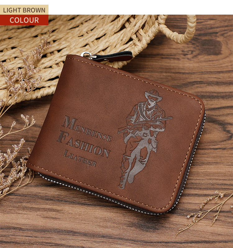 跨境风潮猎人压花男士短款围链钱包 大容量三折零钱袋美金包批发