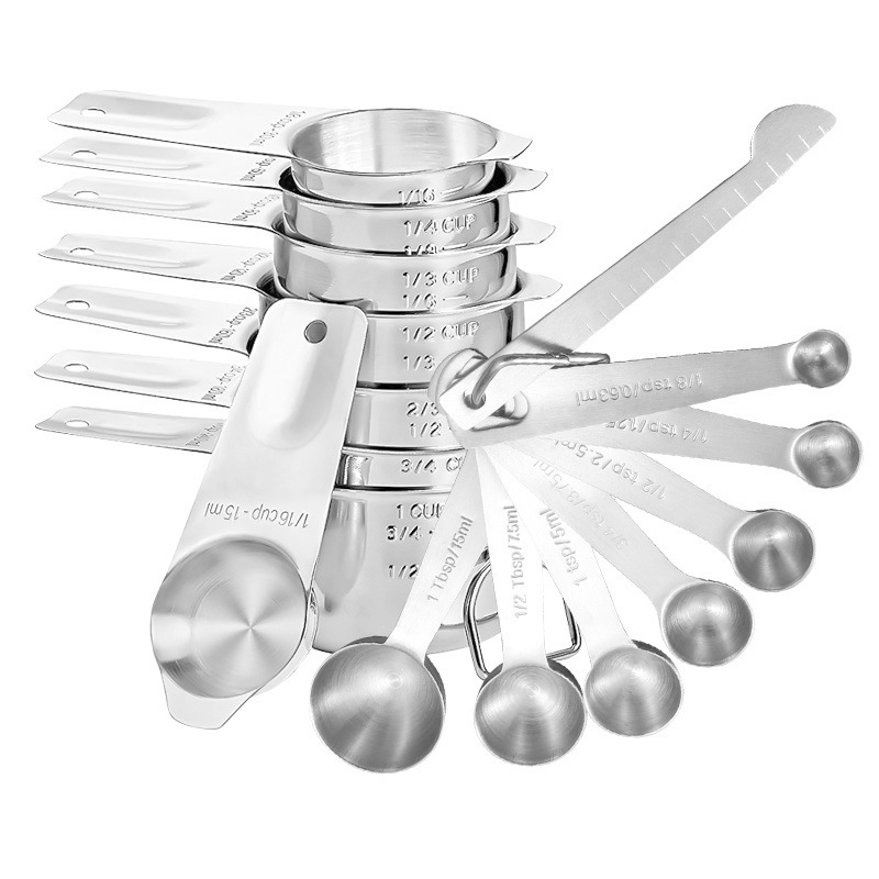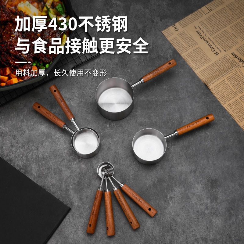 毫升不锈钢套装量杯量勺调味量匙镀钛金色烘焙套装量杯刻度