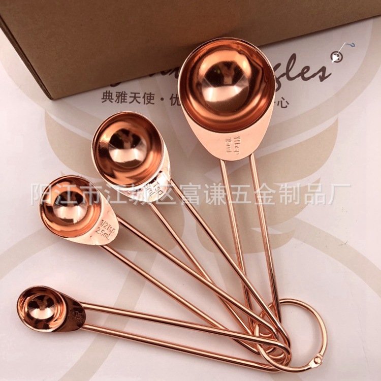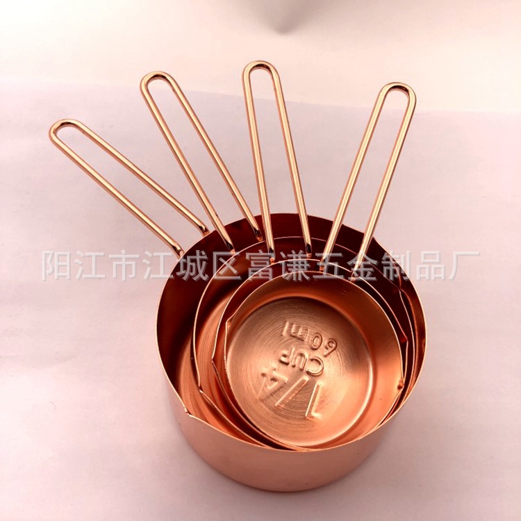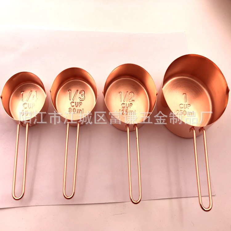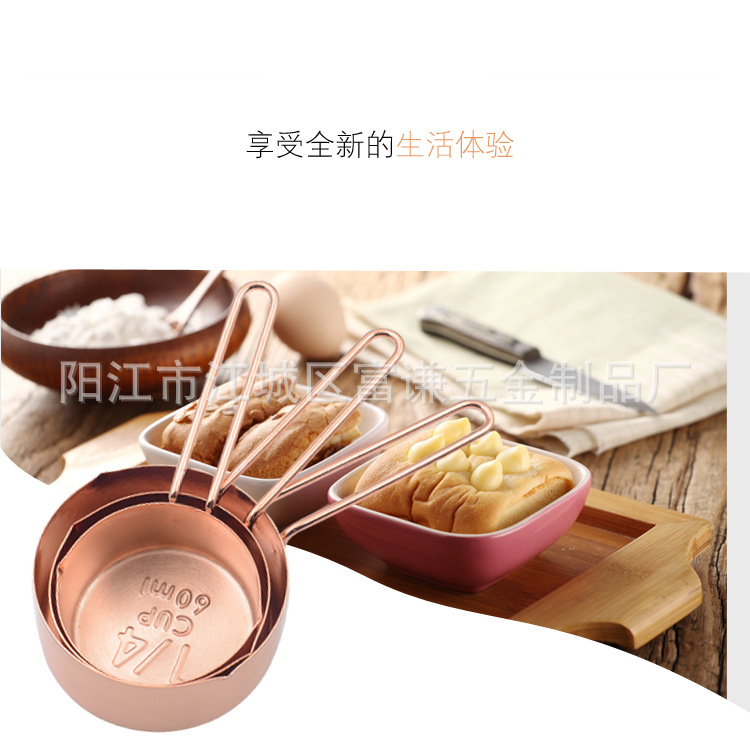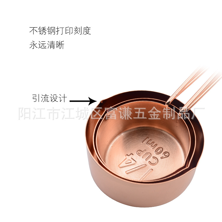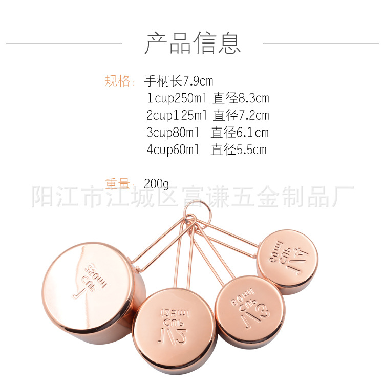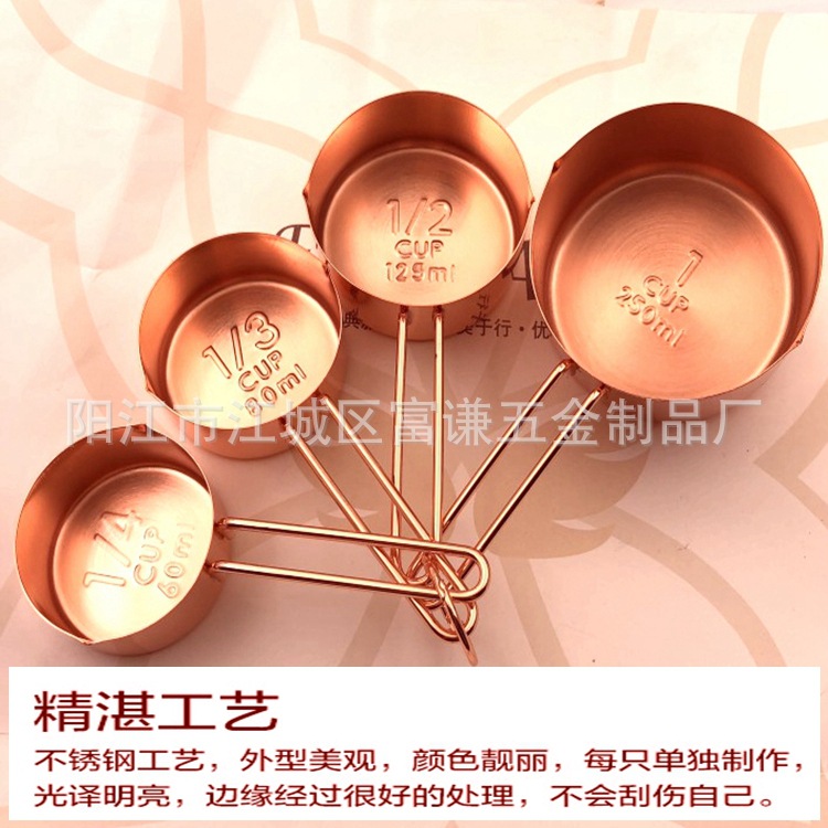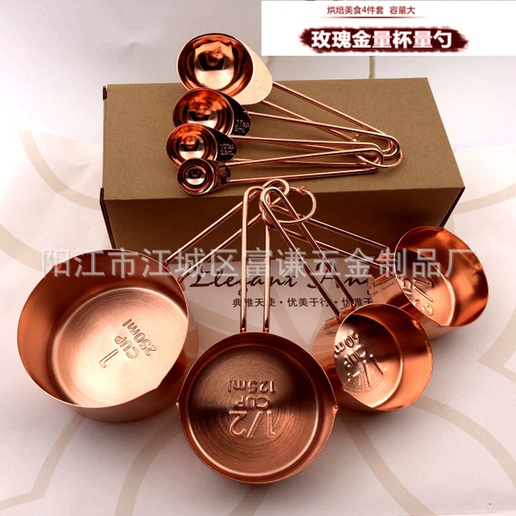 玫瑰金不锈钢量杯八件套装烘焙工具烘培量勺金色量杯量勺