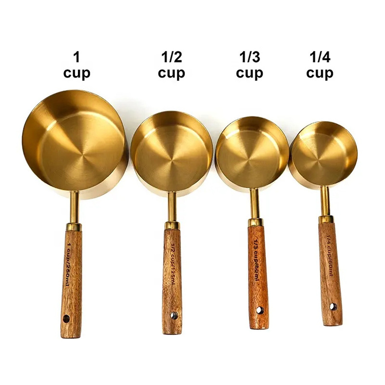 厂家直供跨境不锈钢长柄量勺量匙木柄不锈钢量杯烘焙用具咖啡量勺