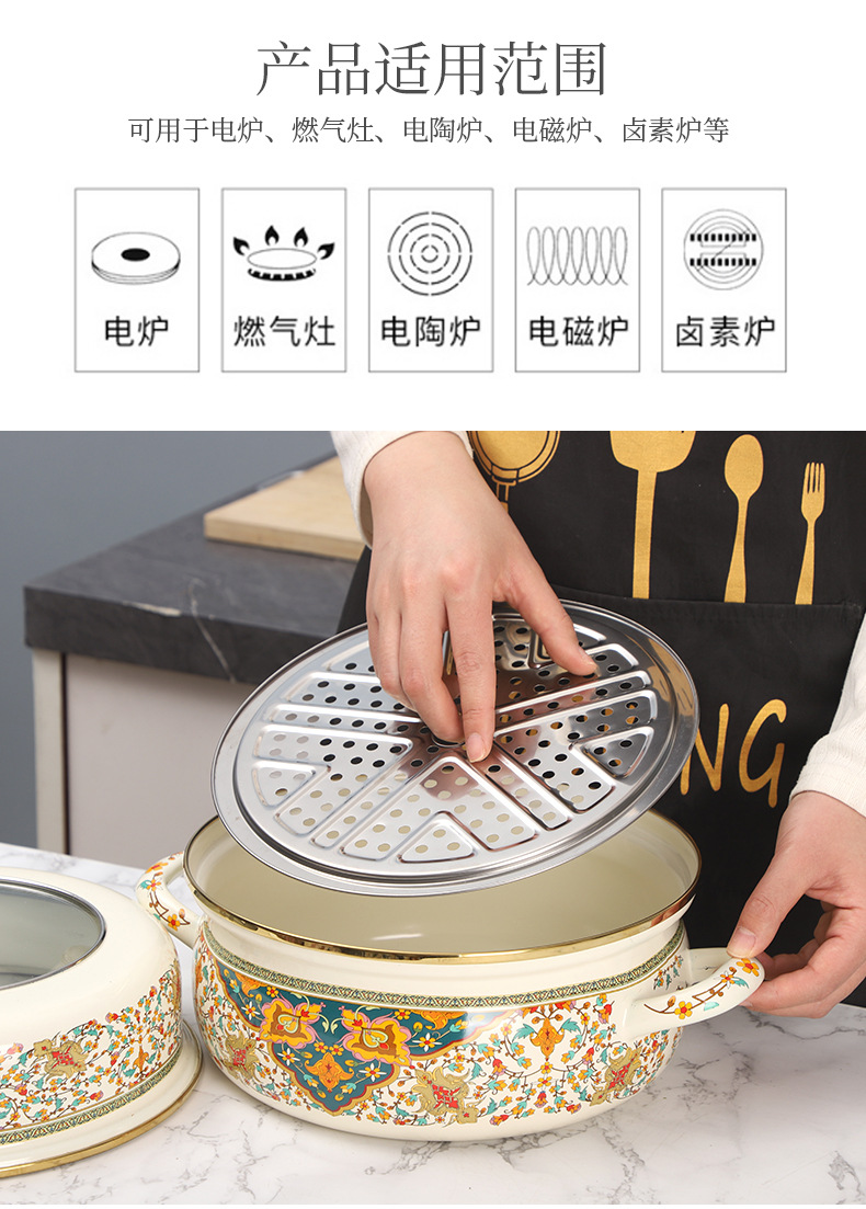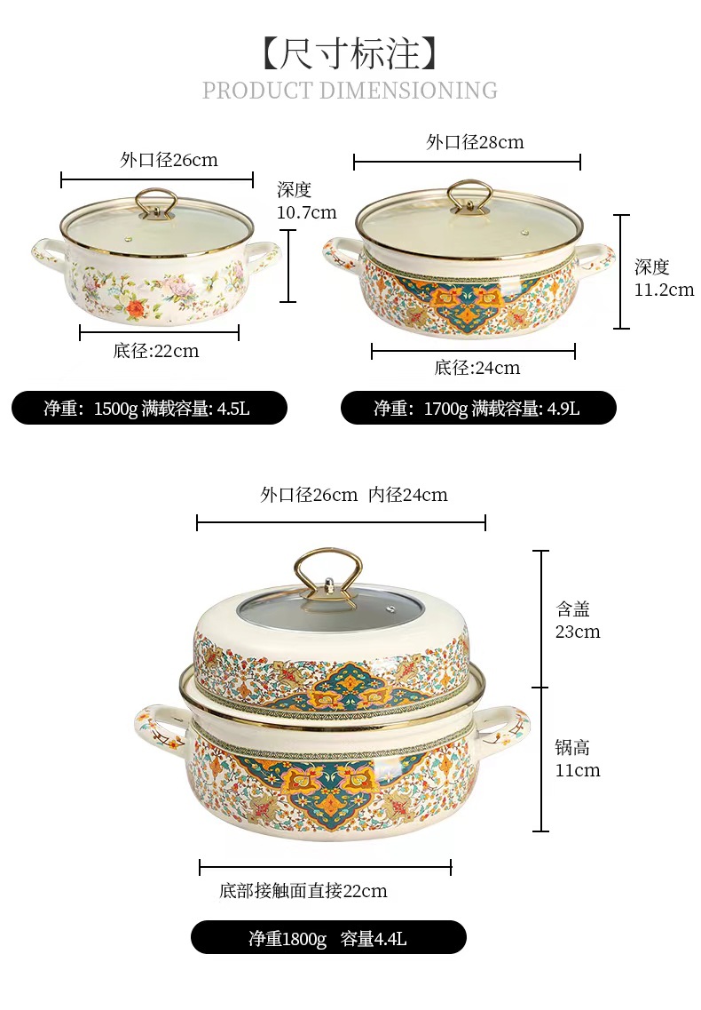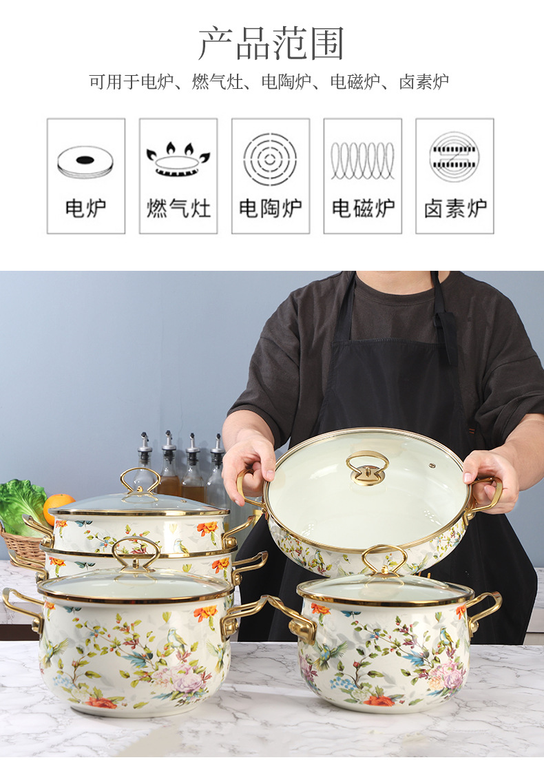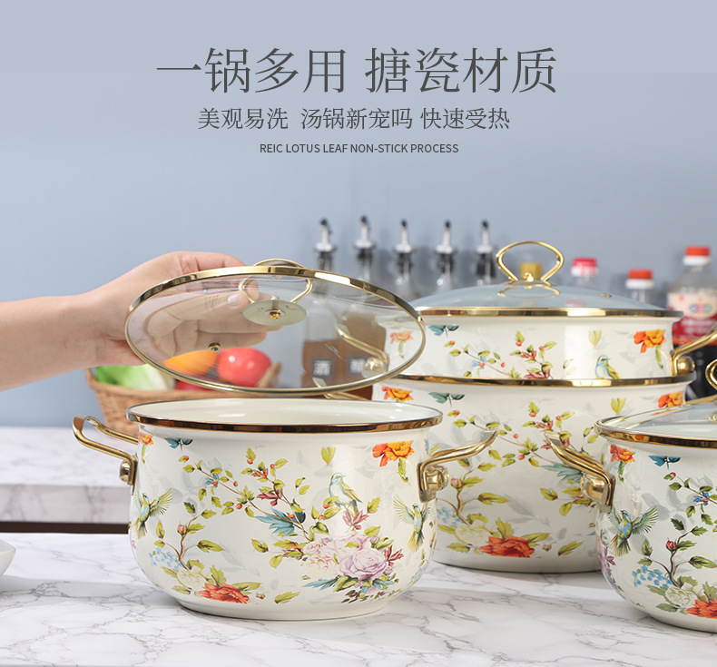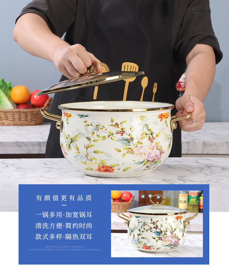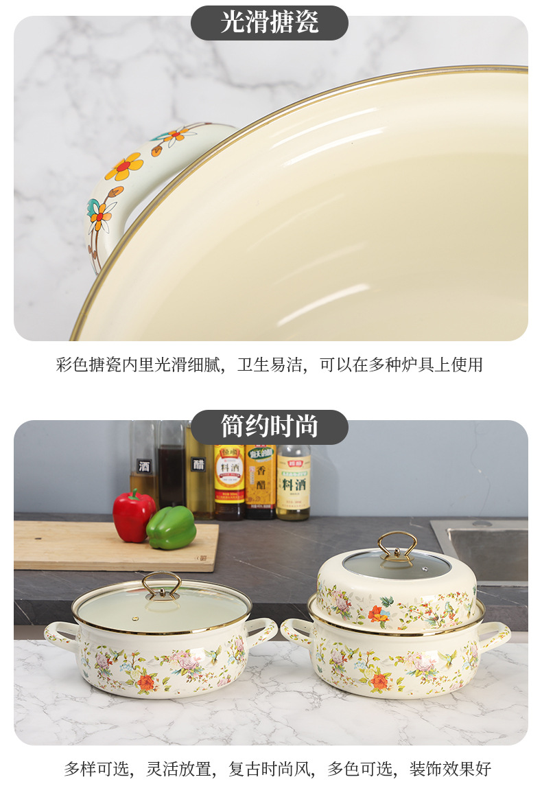 欧丽家珐琅搪瓷四季汤锅冬季火锅奶锅家用炖锅搪瓷锅燃气电磁炉锅