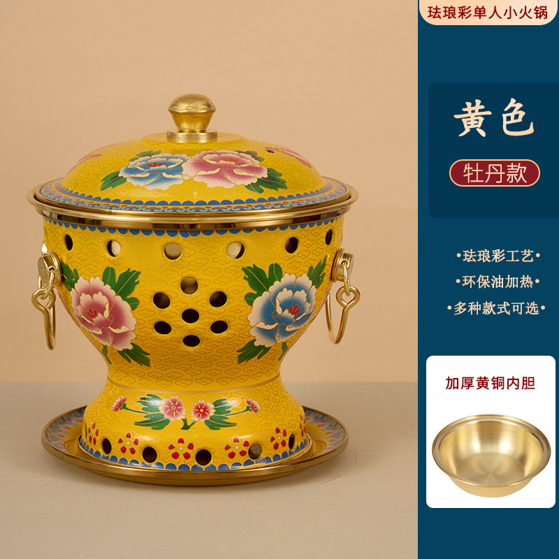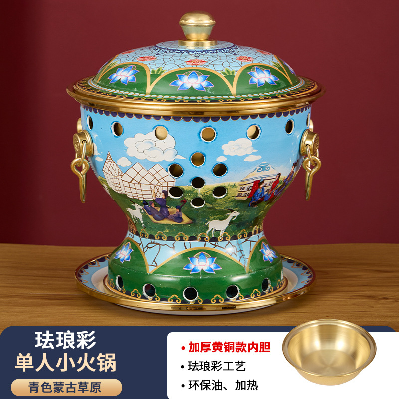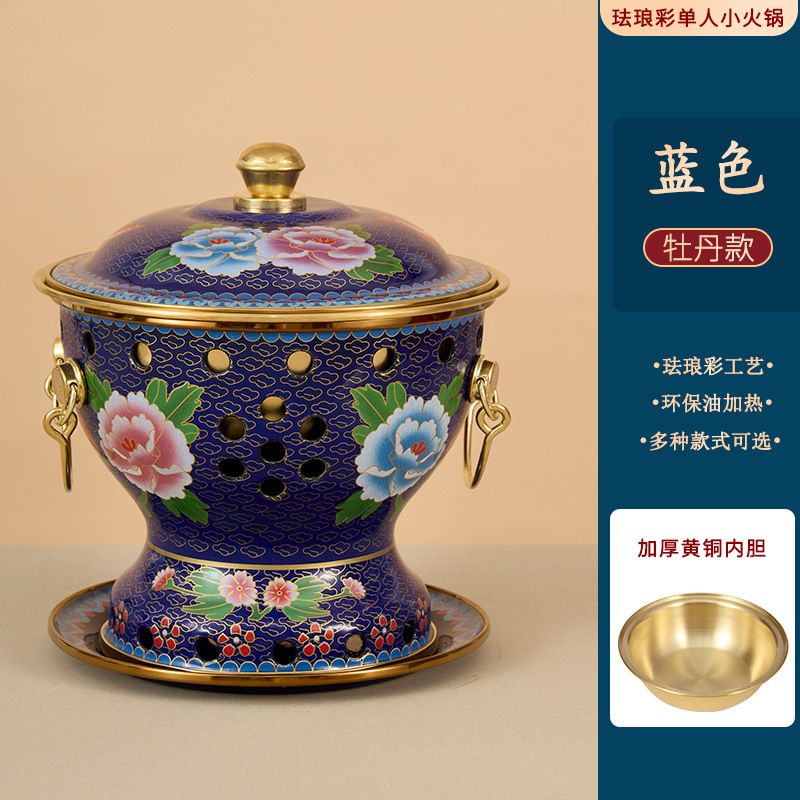 景泰蓝单人小铜锅商用酒精小肥牛火锅分餐紫铜火锅珐琅彩铜锅