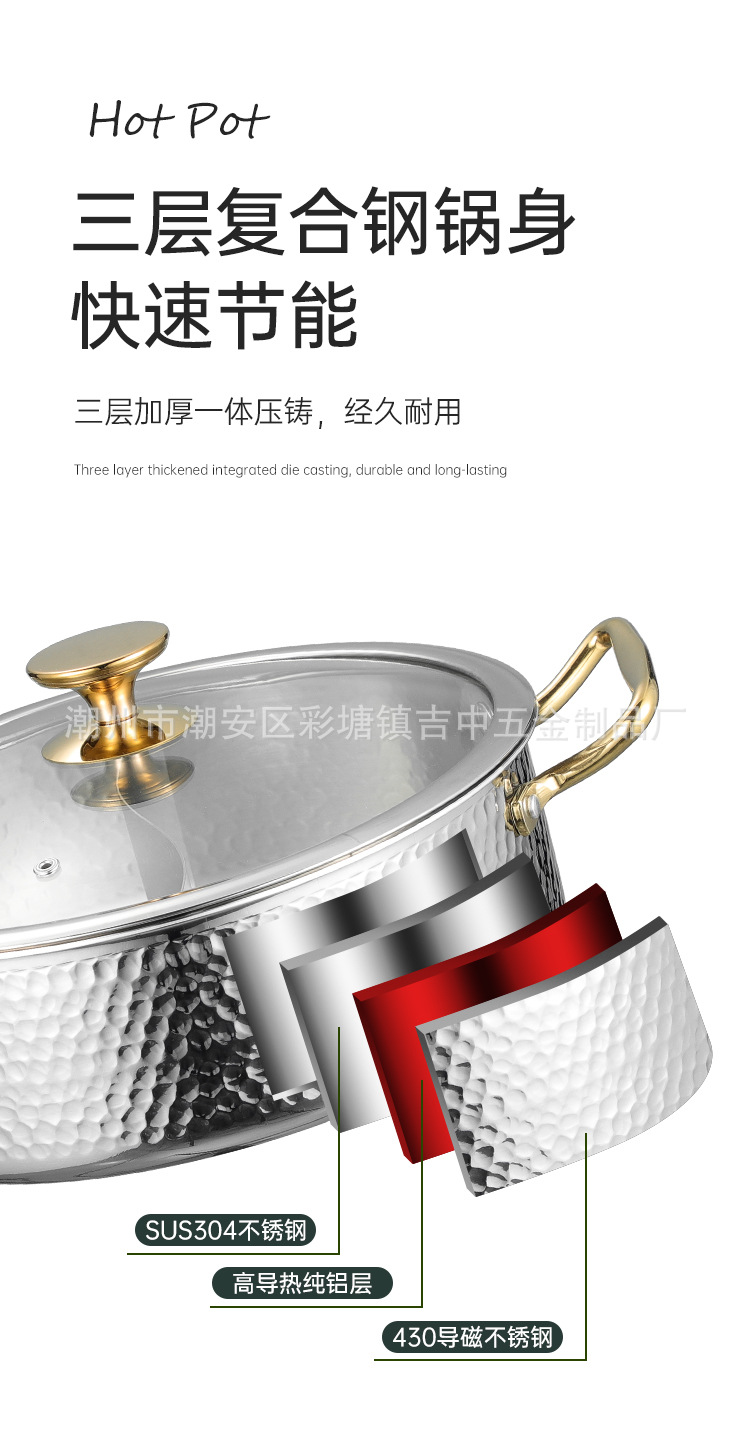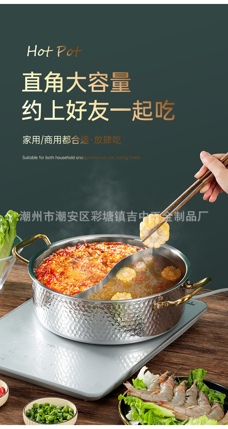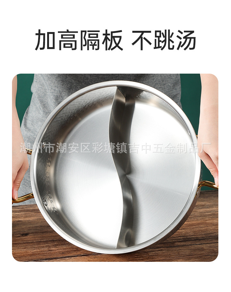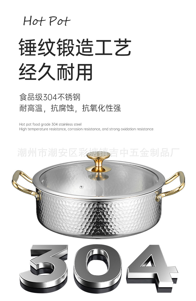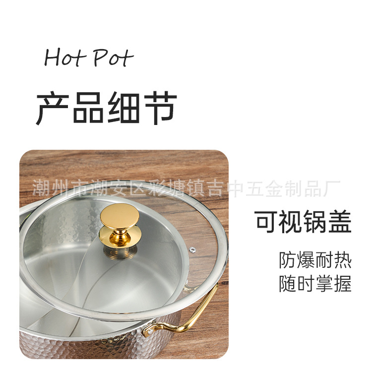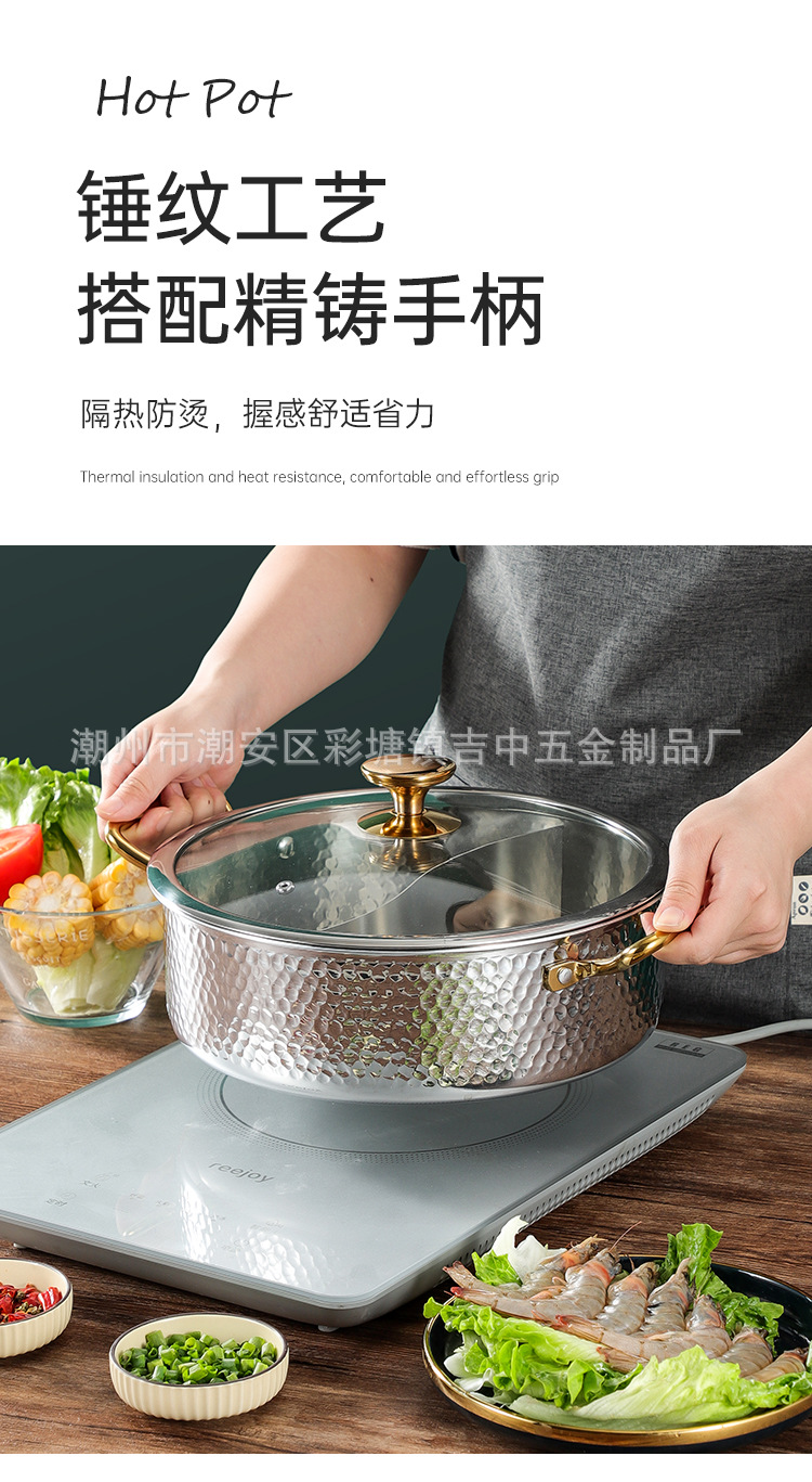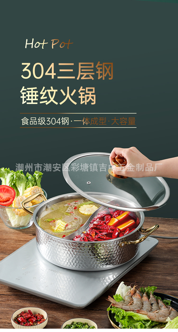 304不锈钢锤纹清汤鸳鸯火锅锅家用大容量加厚电磁炉燃气通用火锅