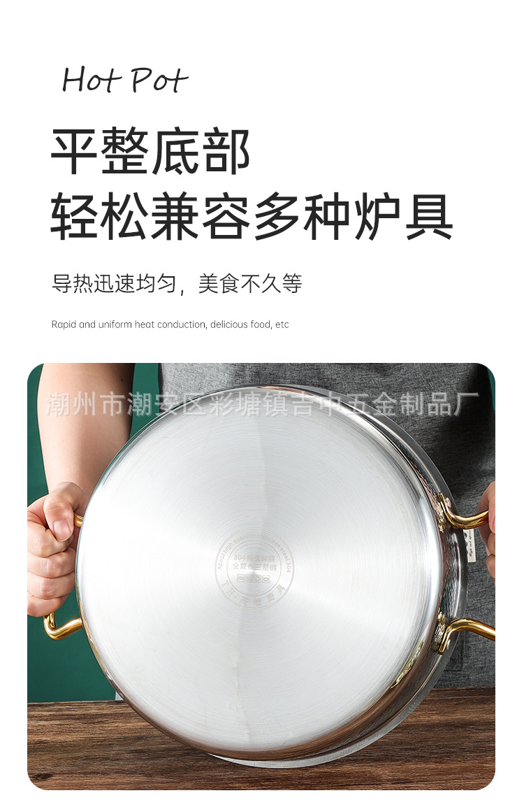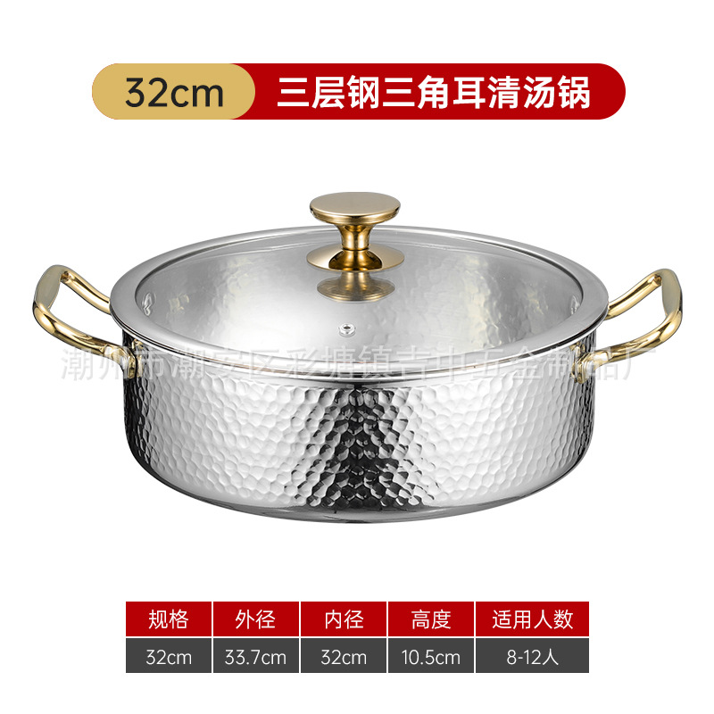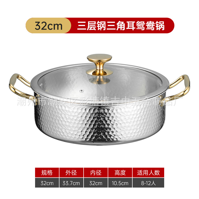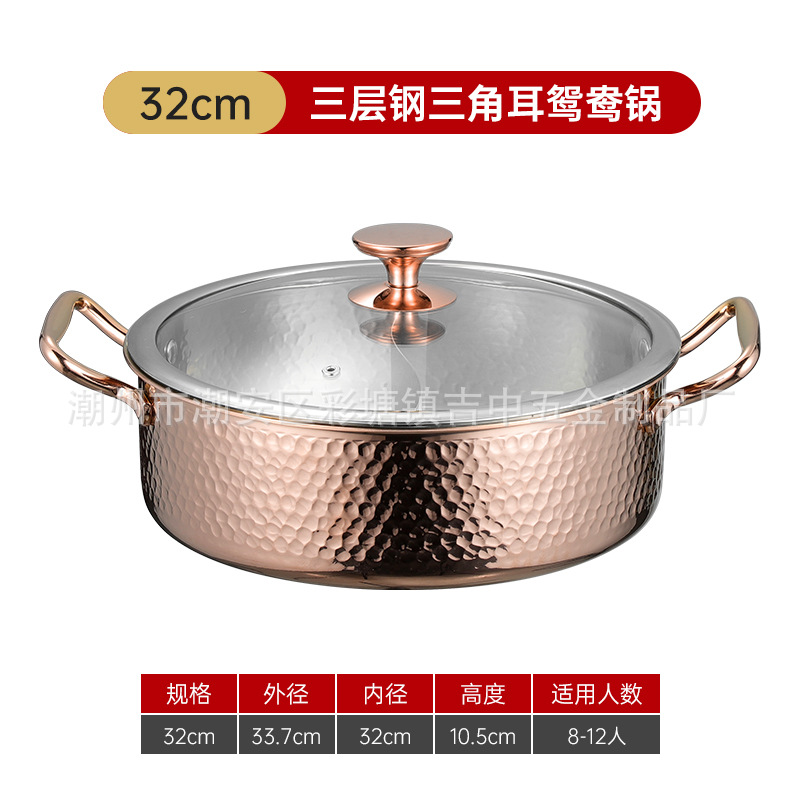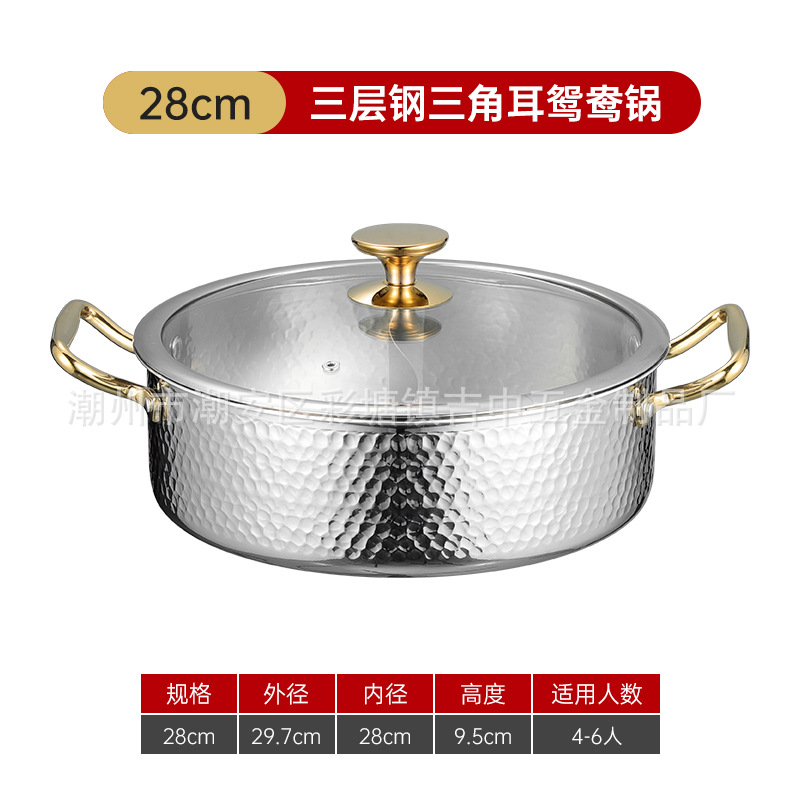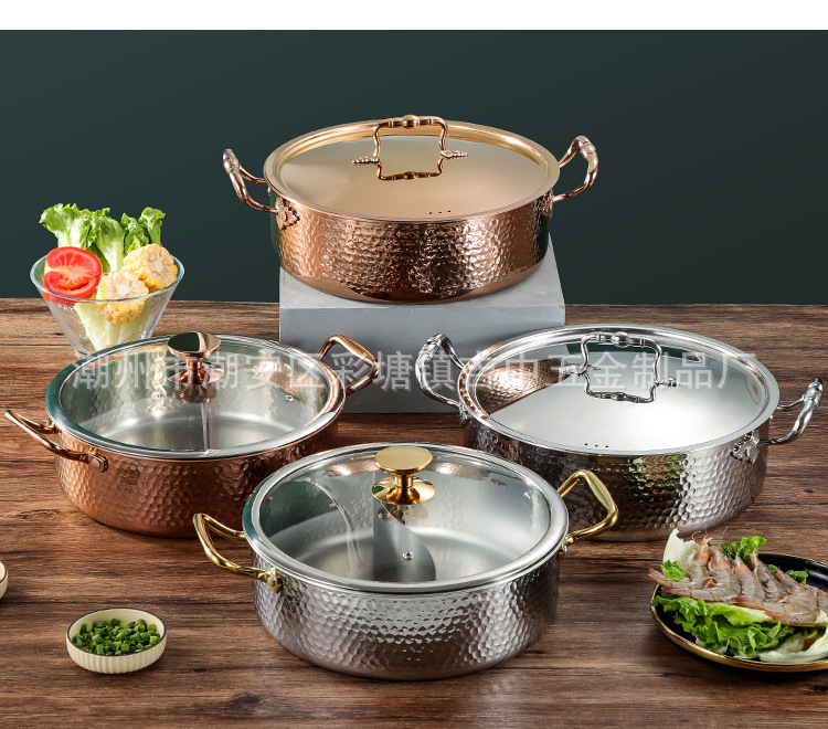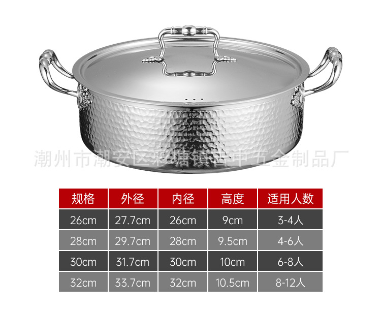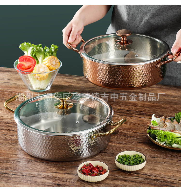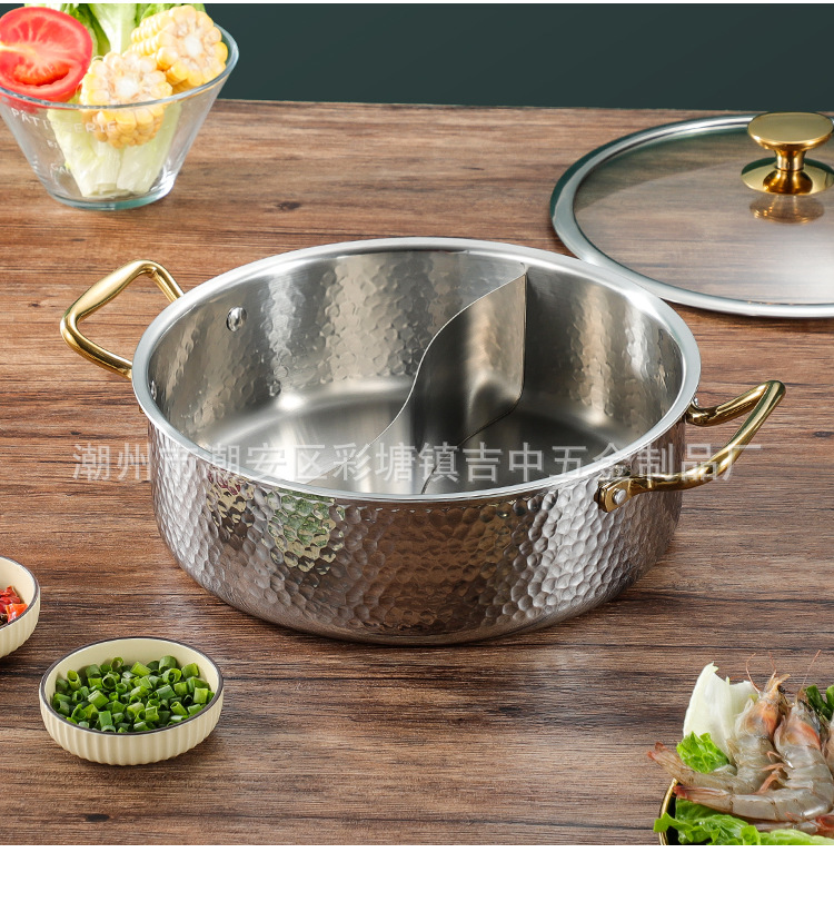 304不锈钢锤纹清汤鸳鸯火锅锅家用大容量加厚电磁炉燃气通用火锅
