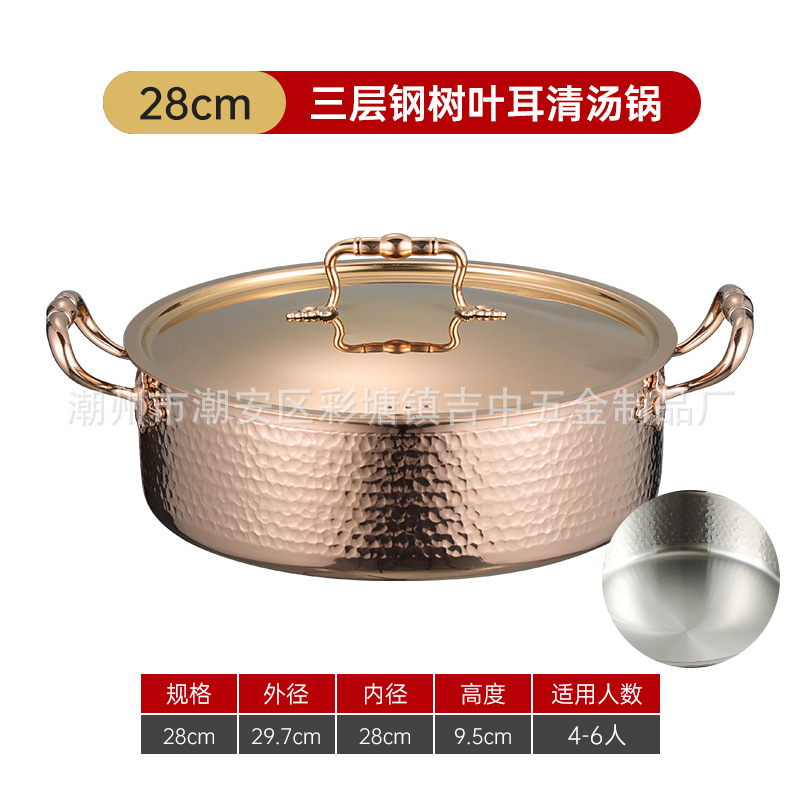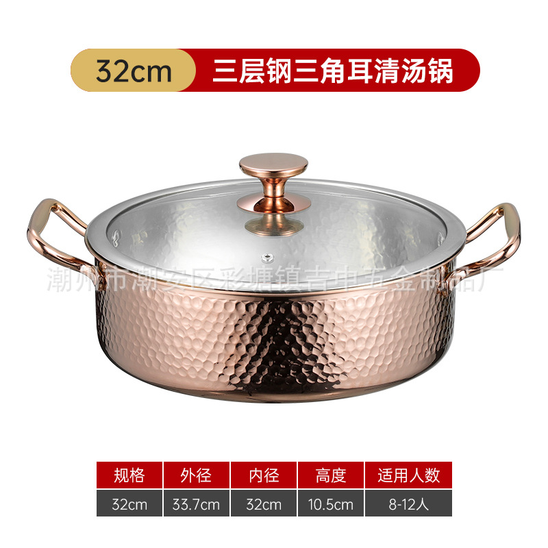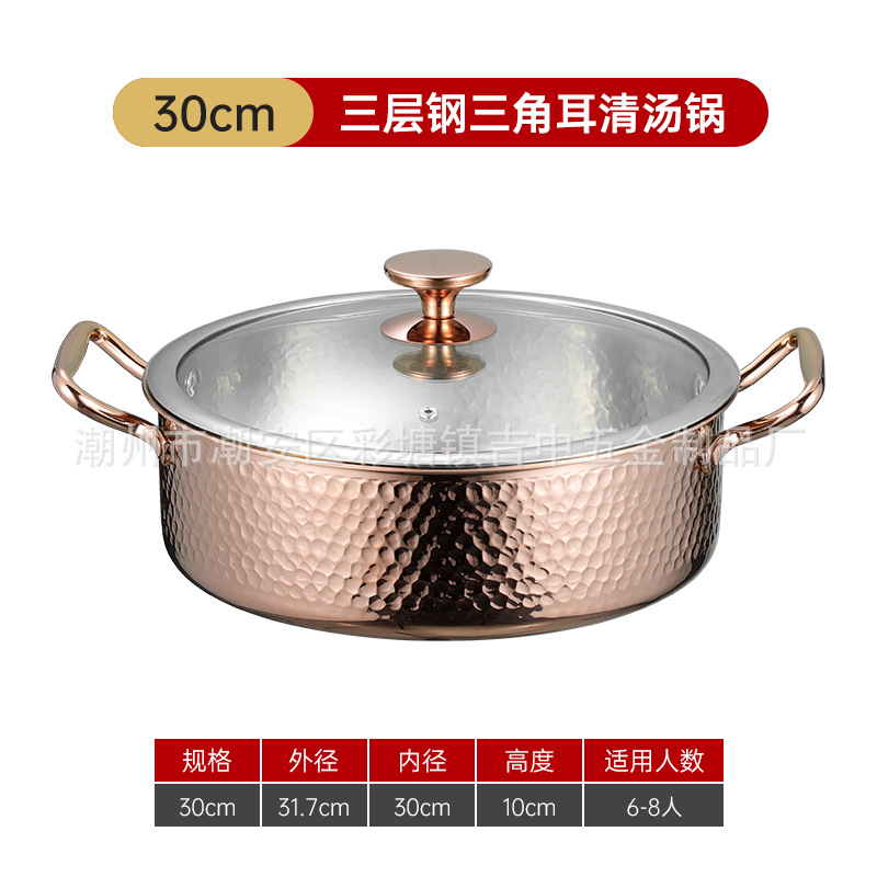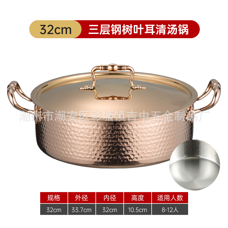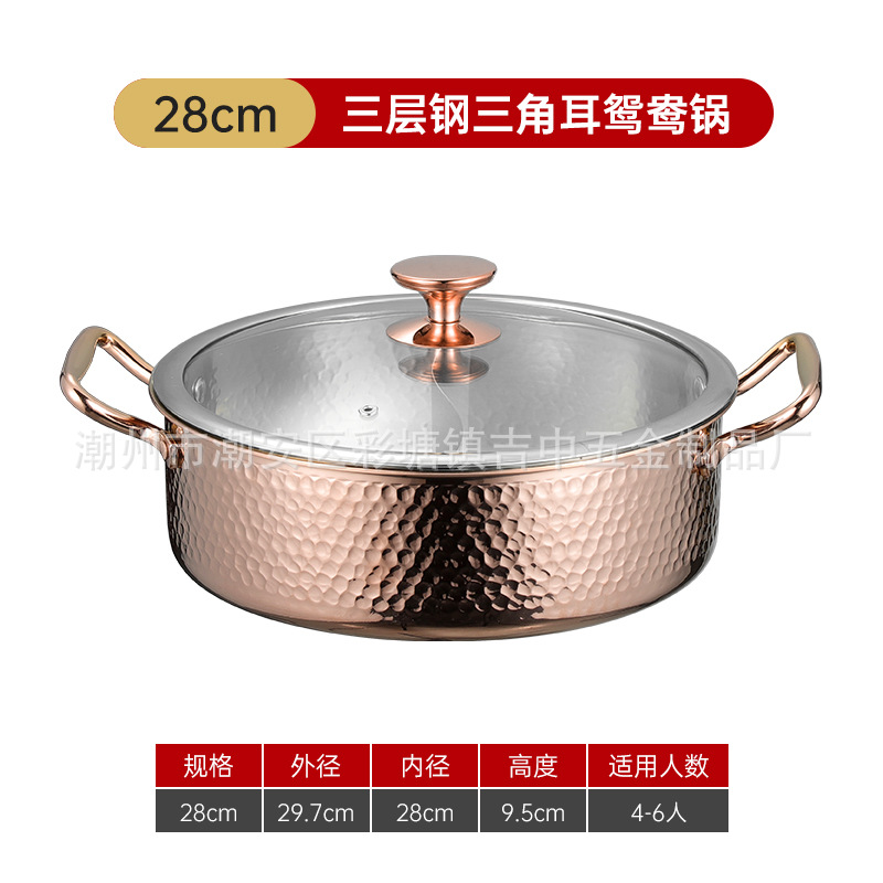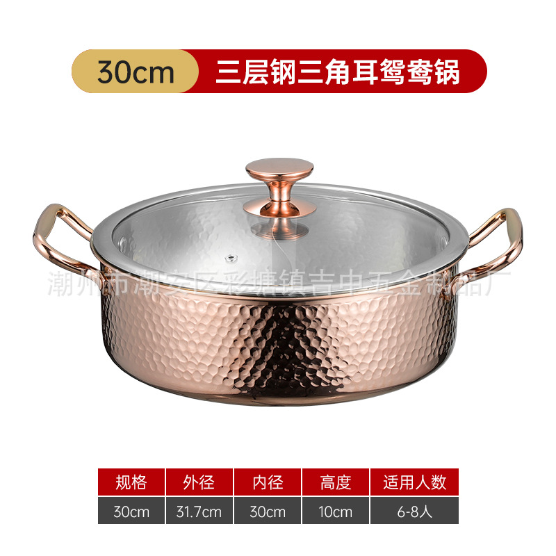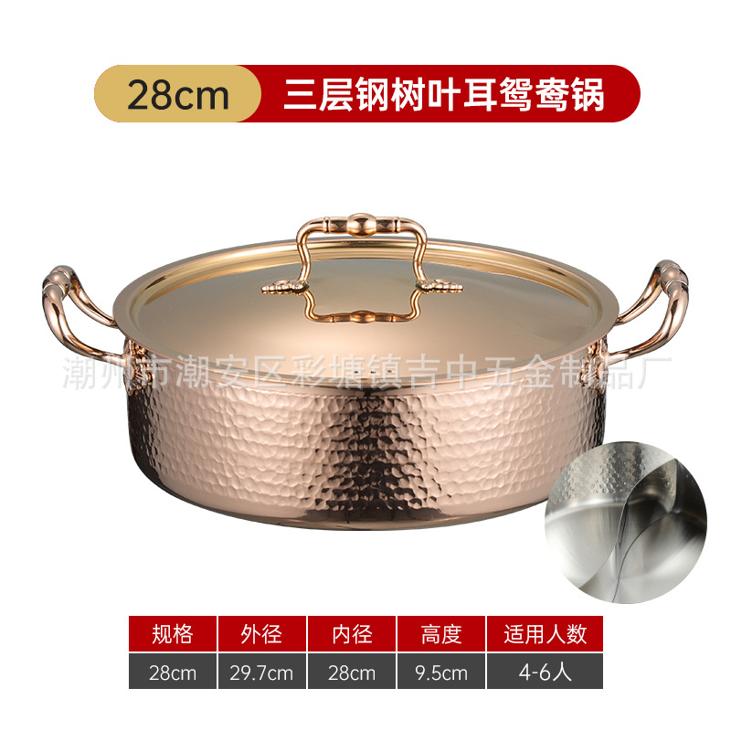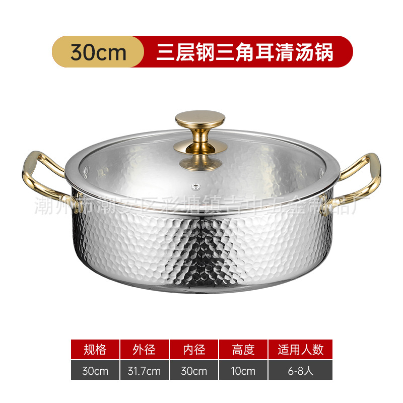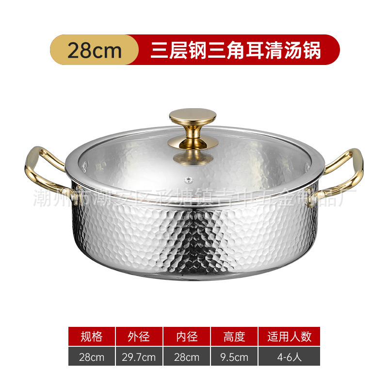 304不锈钢锤纹清汤鸳鸯火锅锅家用大容量加厚电磁炉燃气通用火锅