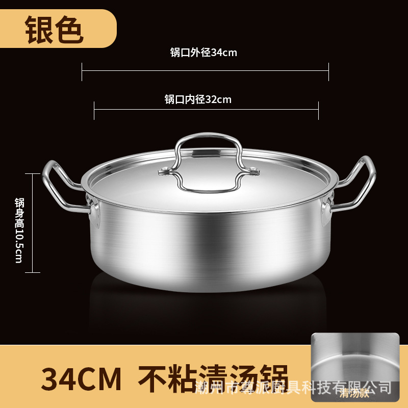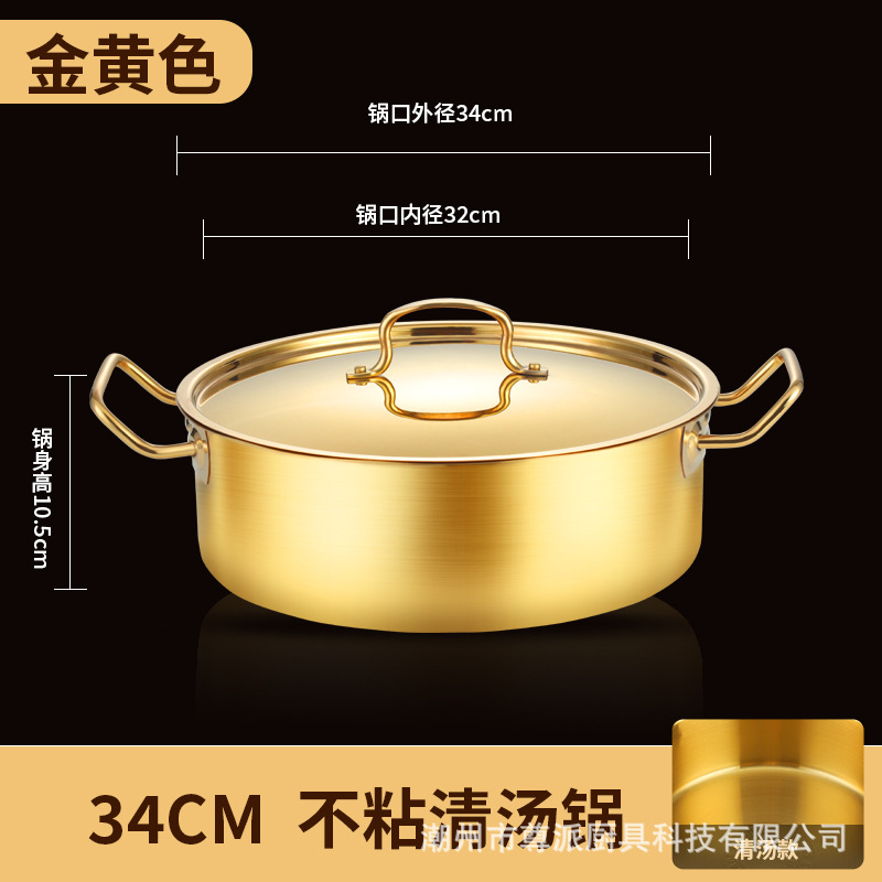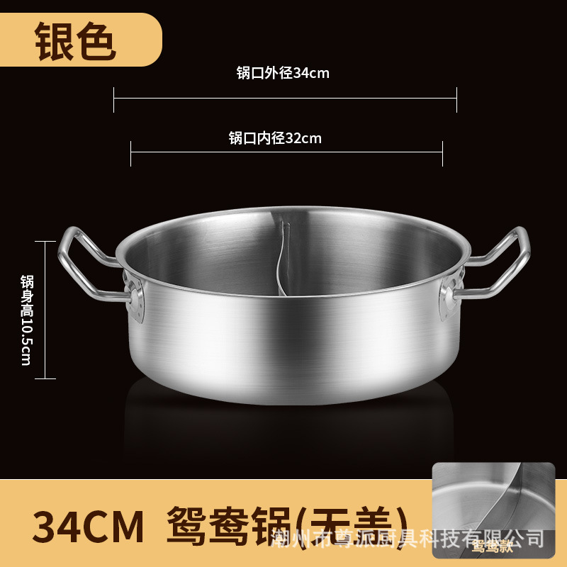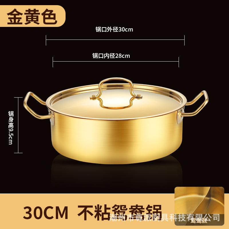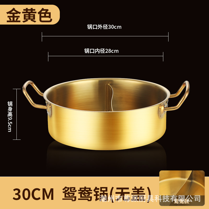 金色鸳鸯锅清汤锅火锅锅具家用加厚不锈钢双耳平底涮锅商用大容量