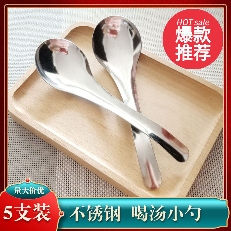 加厚不锈钢汤勺匙汤勺勺子平底勺餐具家用喝汤勺西瓜勺调羹吃饭勺