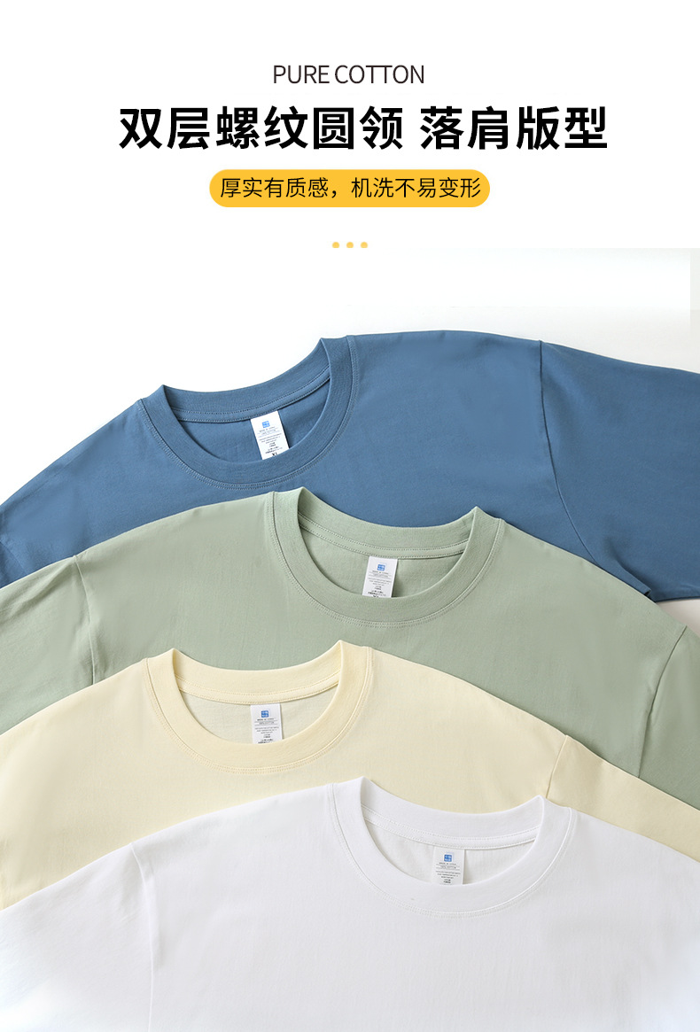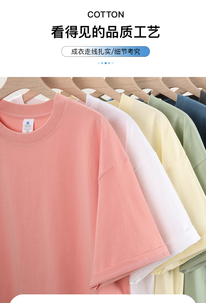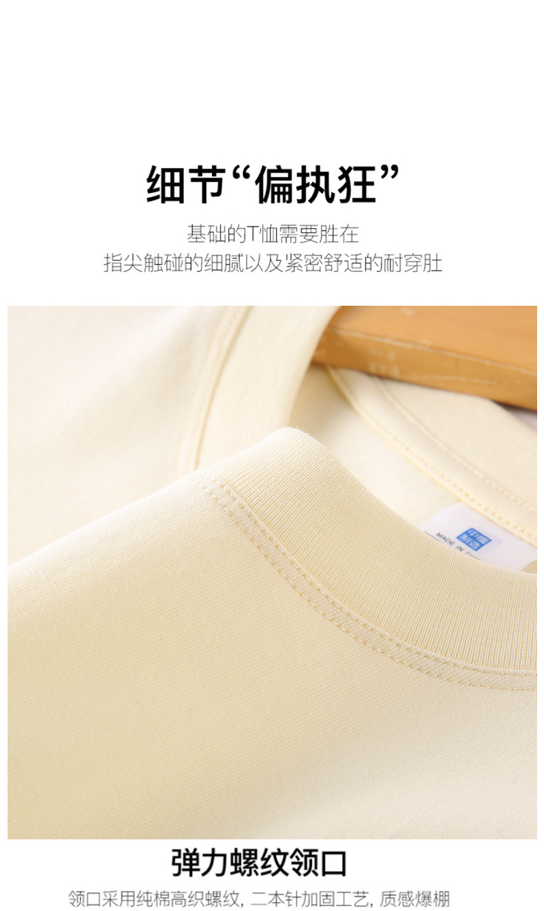 240克阿美咔叽重磅纯棉落肩短袖T恤白色掉肩港风五分袖中袖打底衫