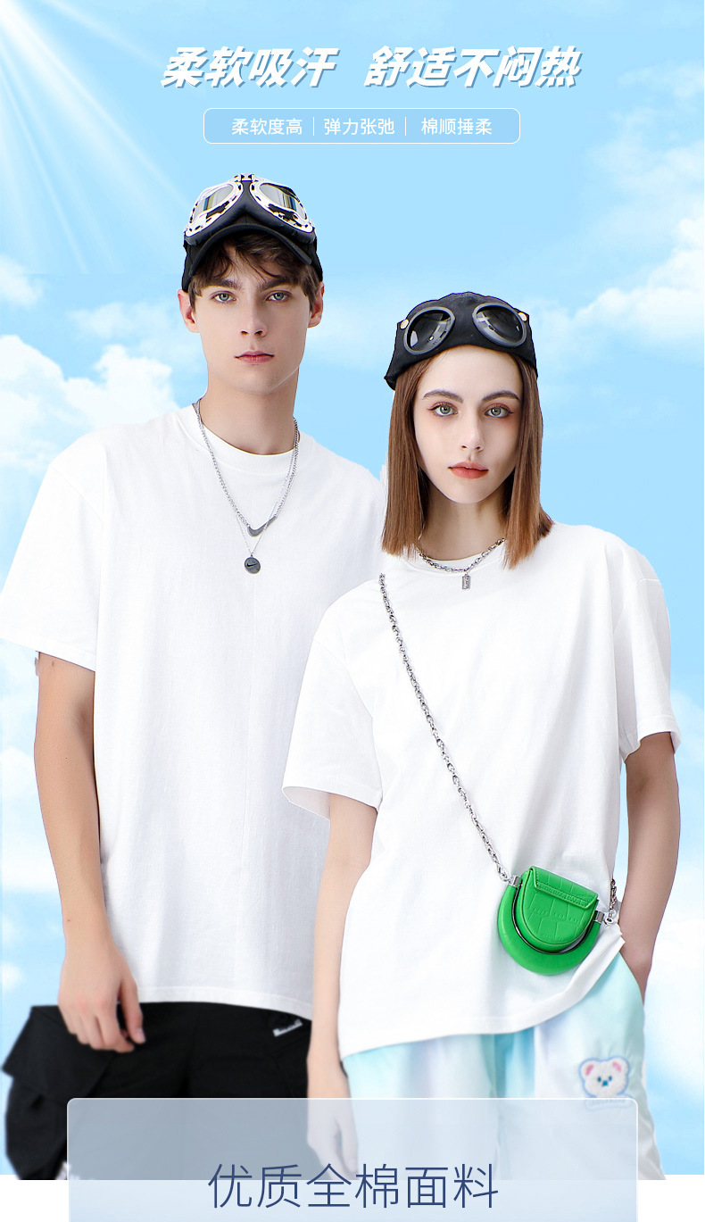 250g纯棉t恤男夏季上班百搭休闲重磅短袖纯色白色宽松精梳棉体恤