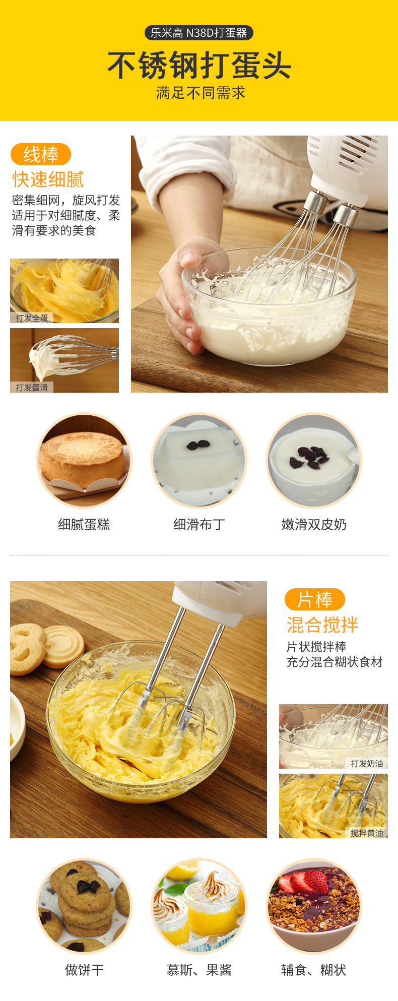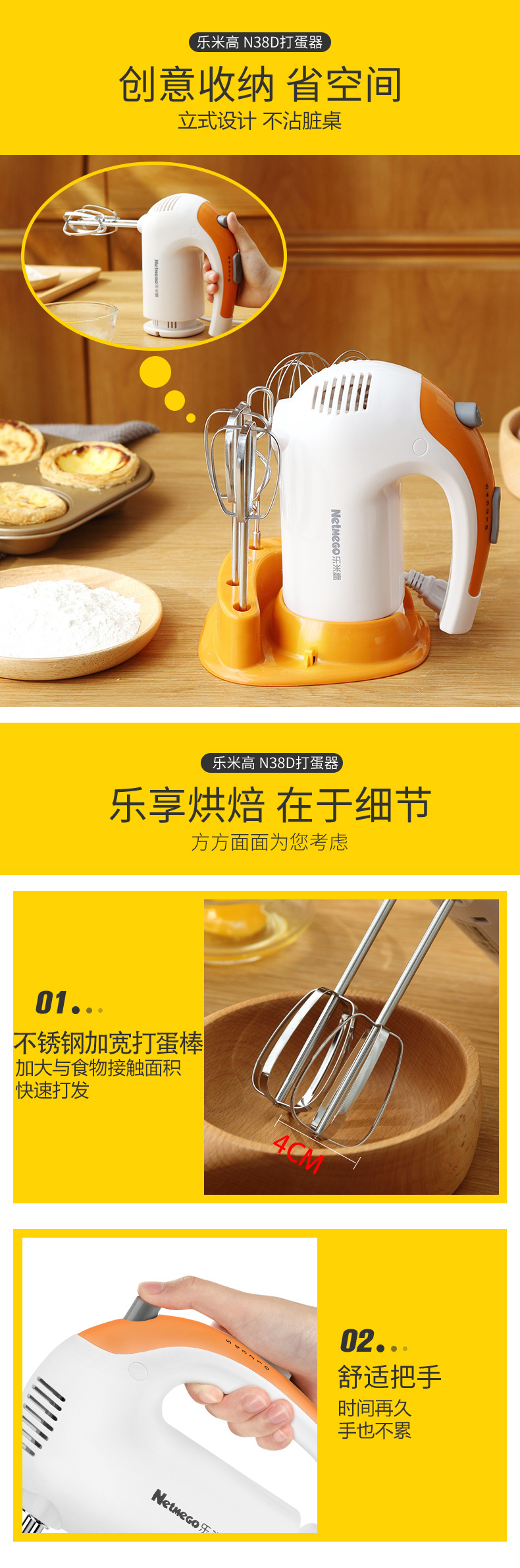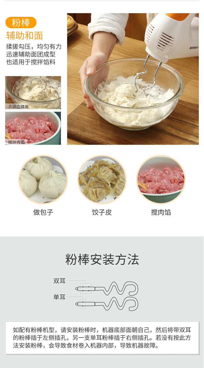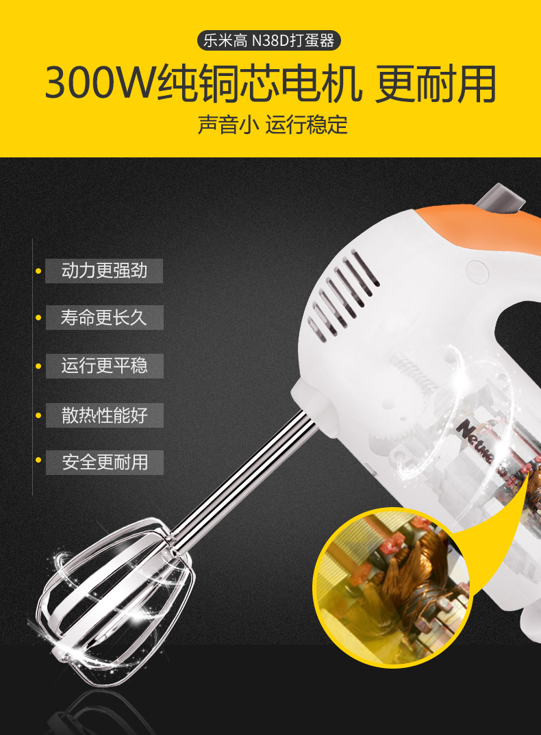 乐米高N38D电动打蛋器300W家用烘焙手持电动打蛋机搅拌机家用