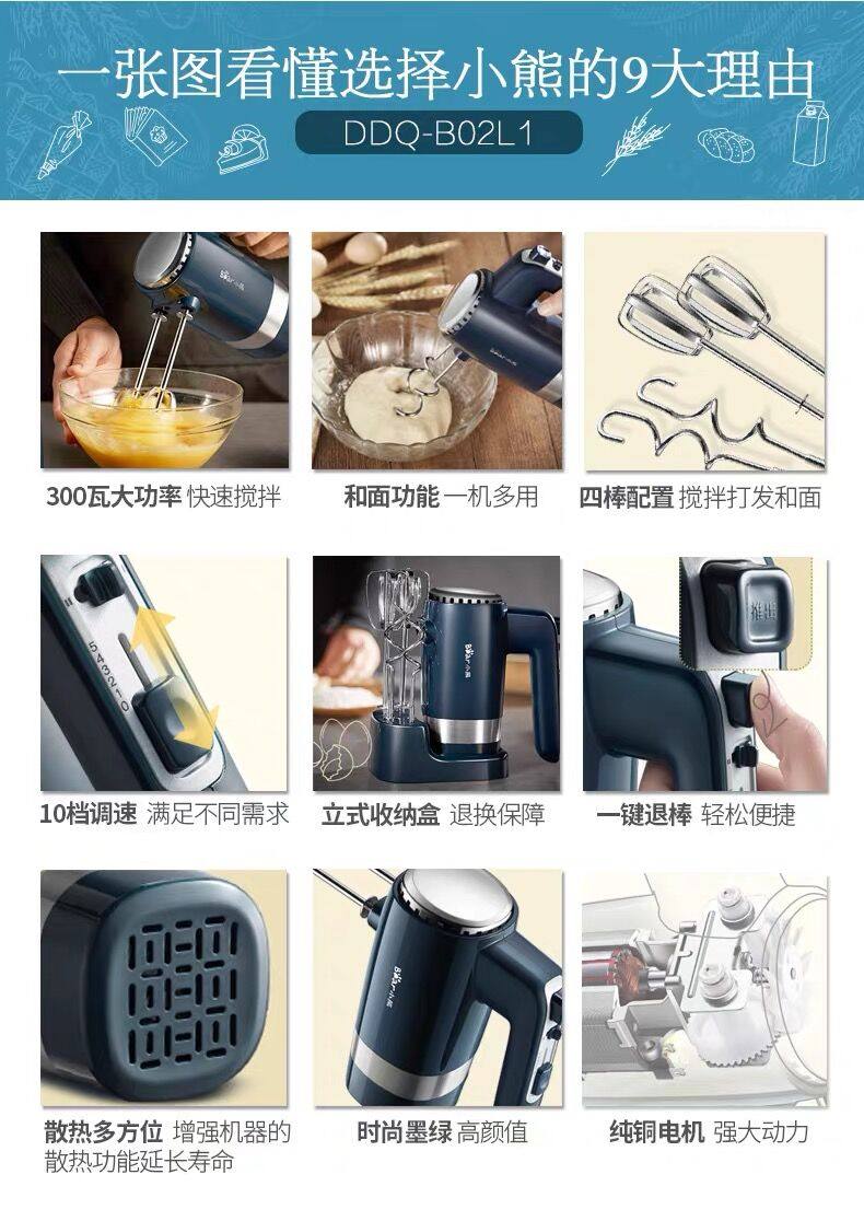 小熊打蛋器家用小型打蛋机 奶油烘焙蛋糕手持电动打发器DDQ-B02L1