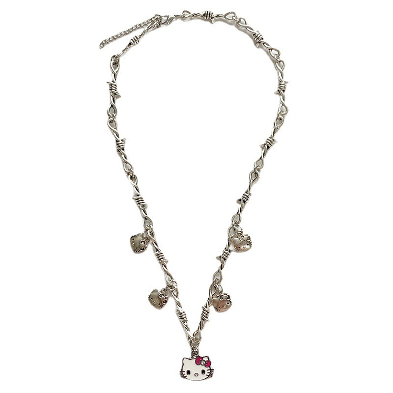 可爱卡通猫咪银色金属吊坠锁骨链甜酷女气质颈链饰品脖子链项链