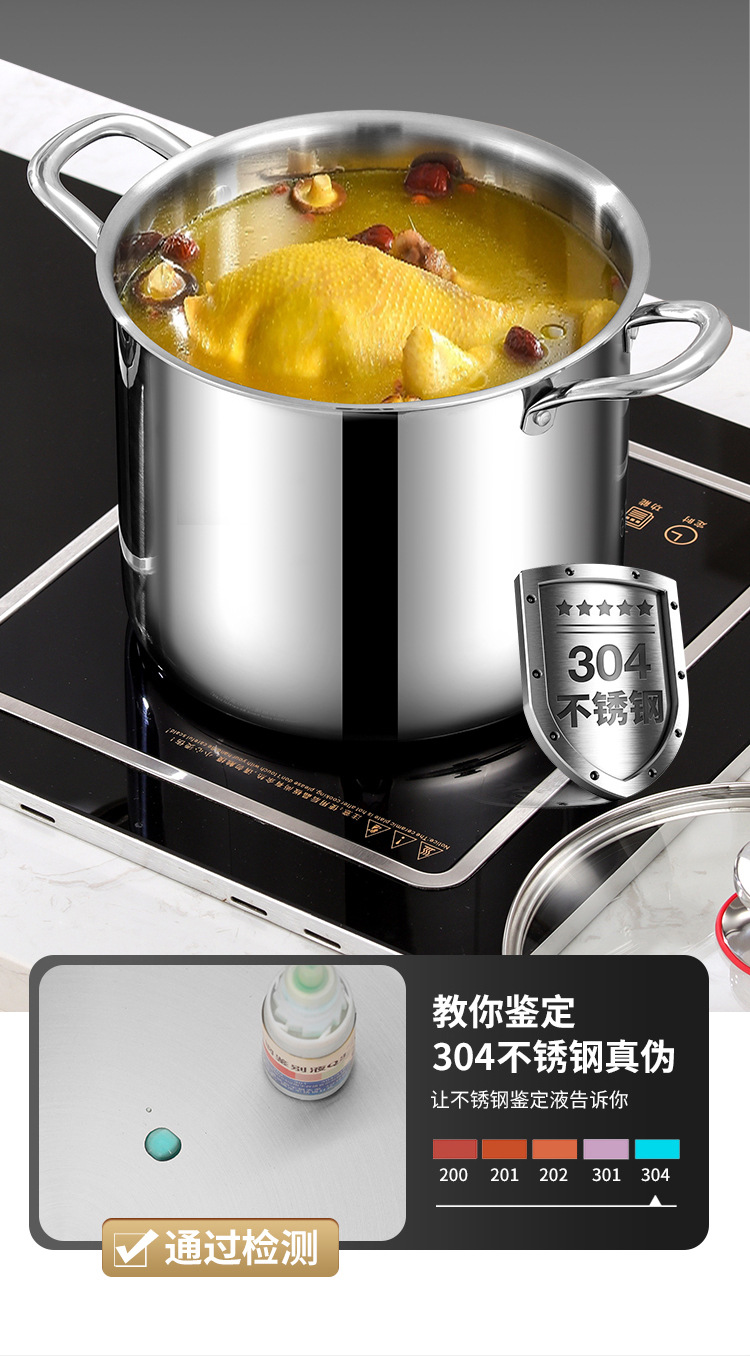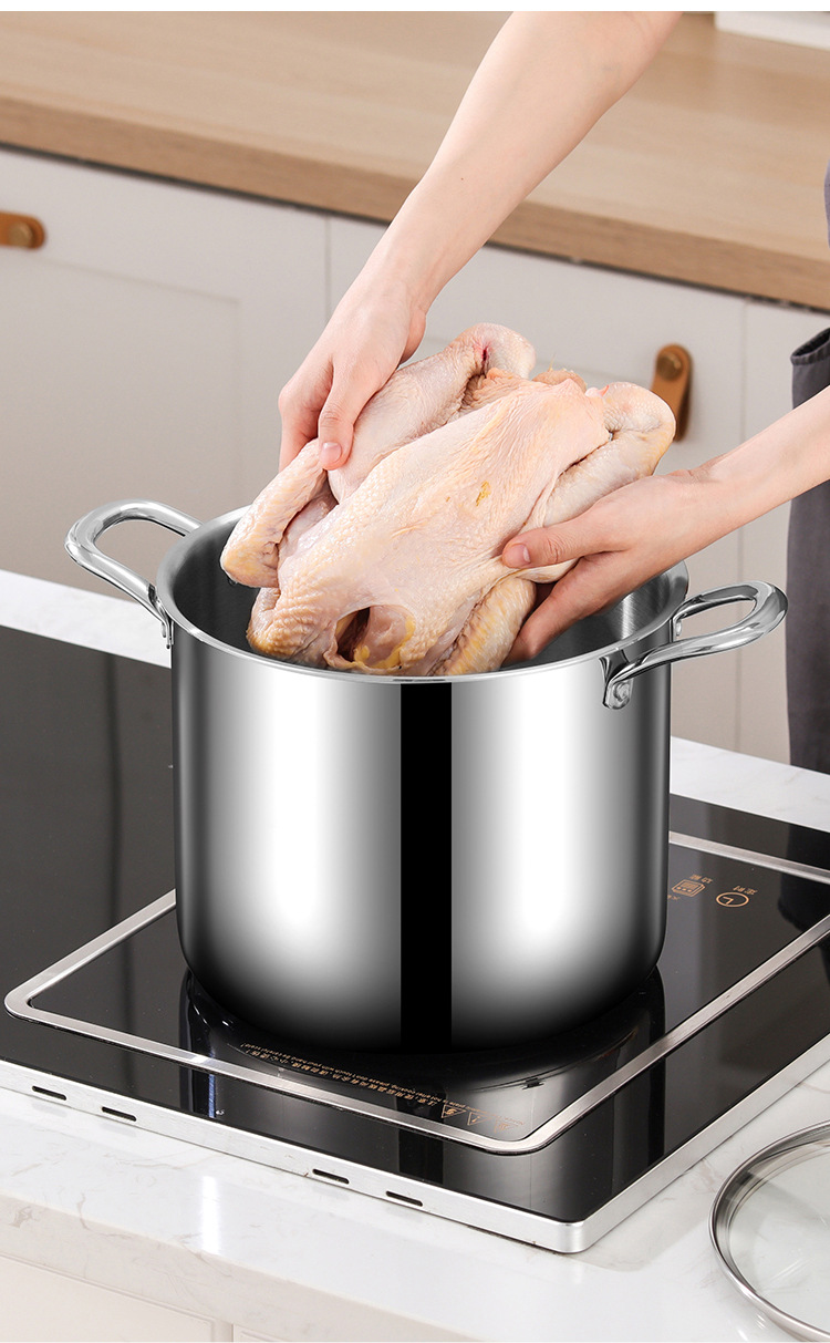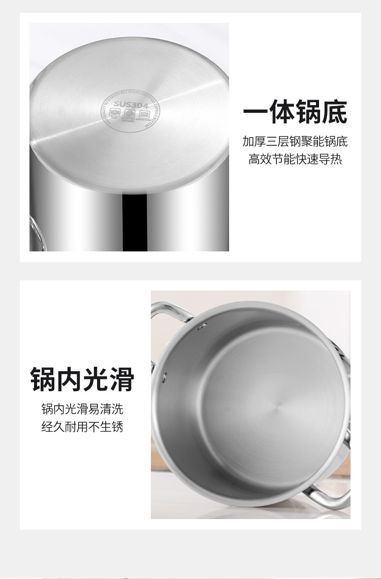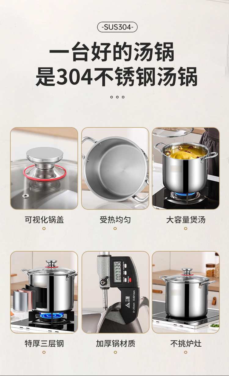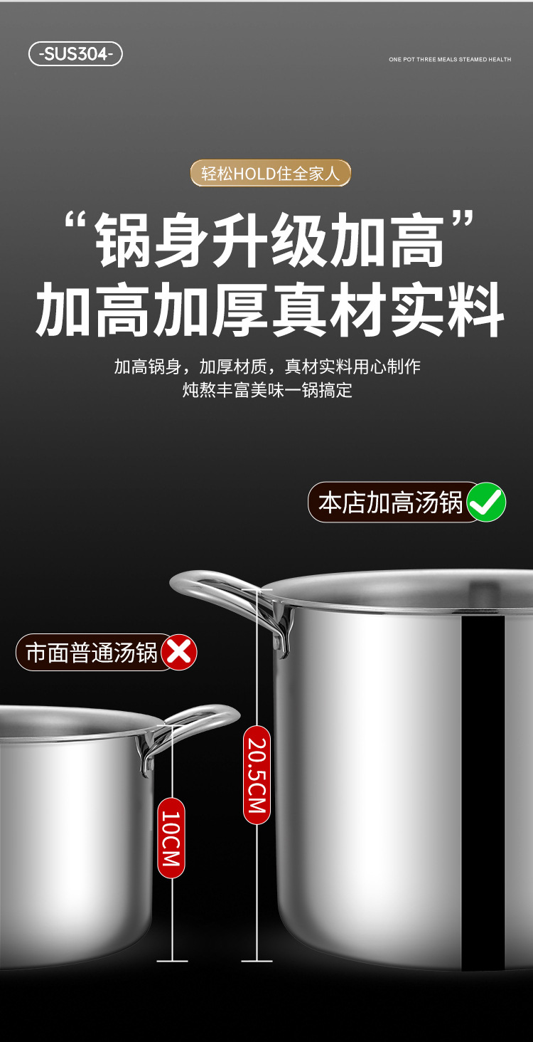 森可高汤锅不锈钢304加厚三层钢家用双耳复底通用大容量汤锅