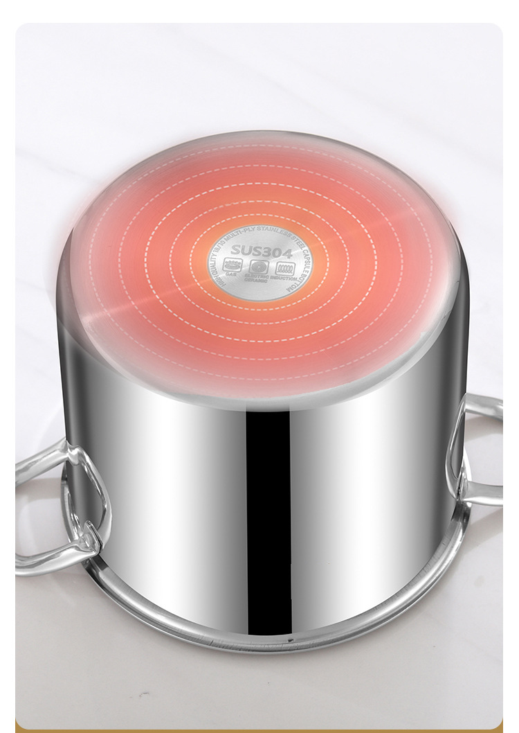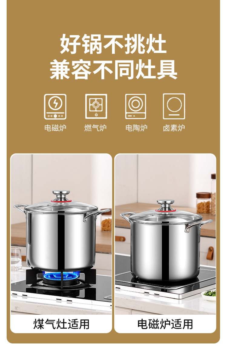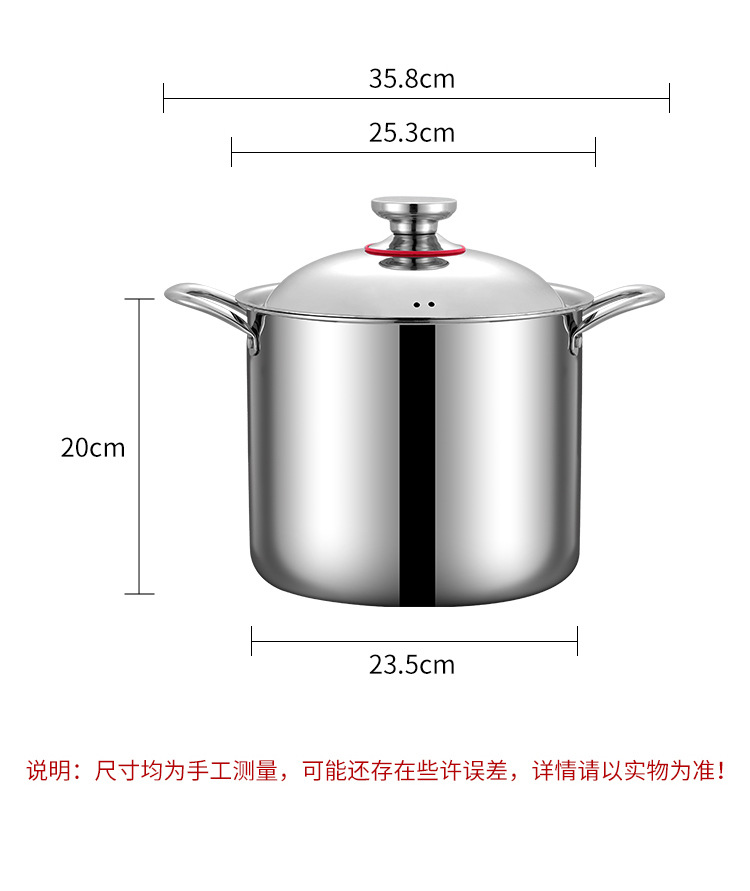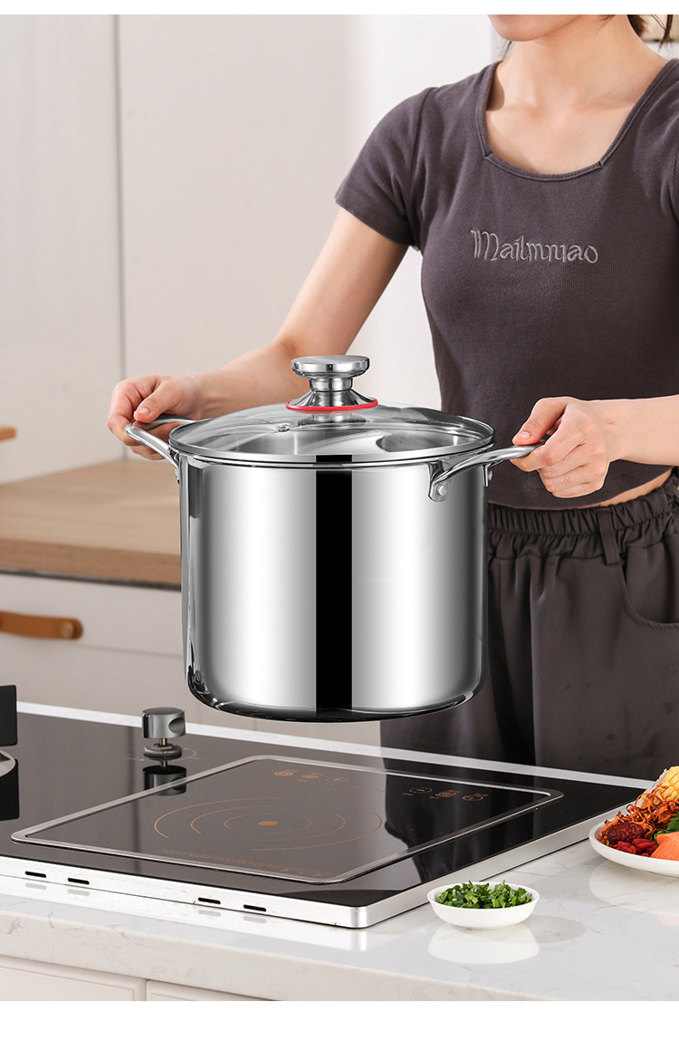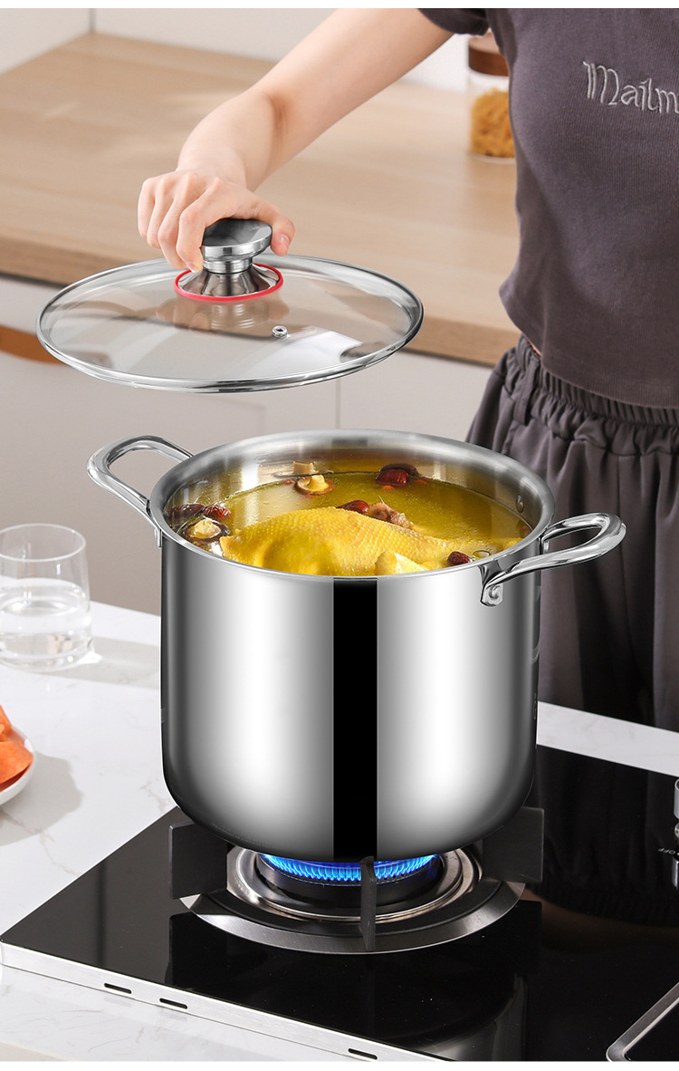 森可高汤锅不锈钢304加厚三层钢家用双耳复底通用大容量汤锅
