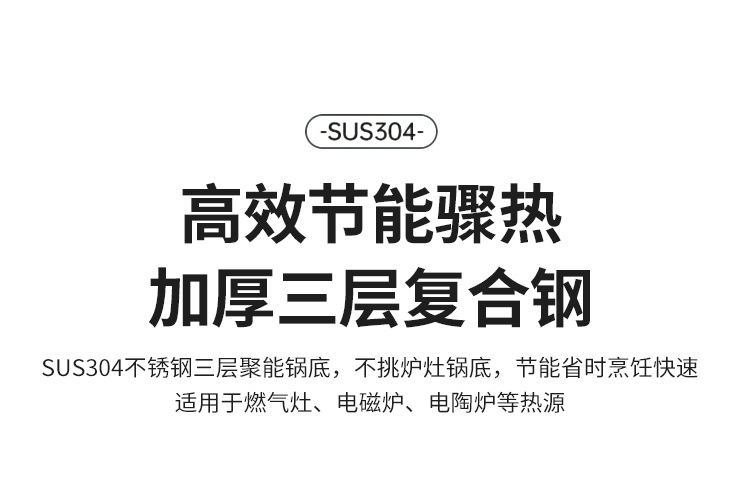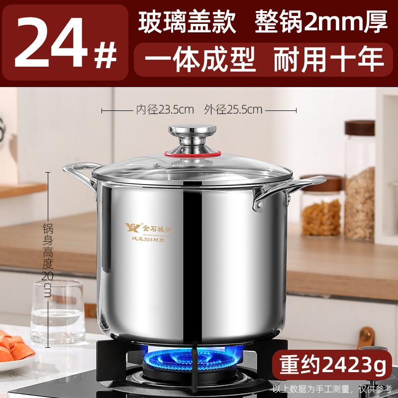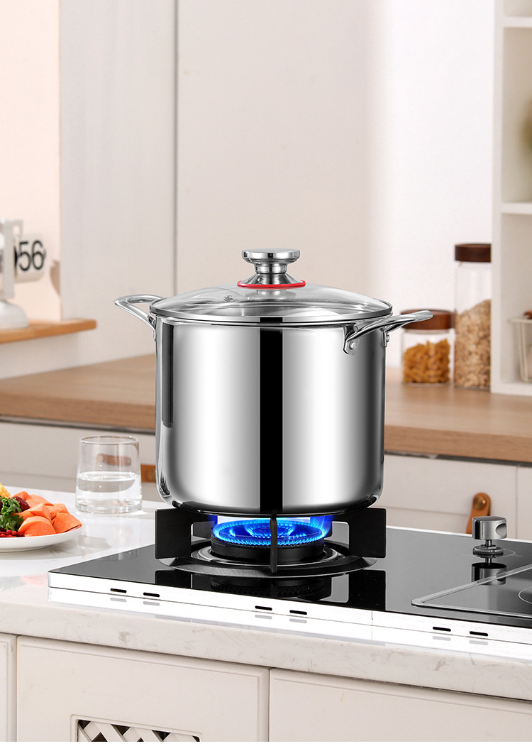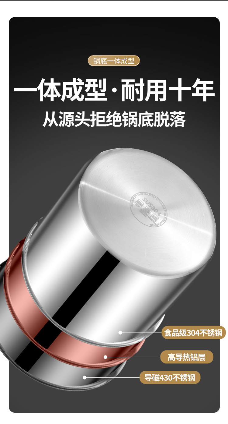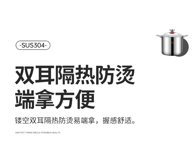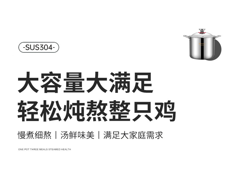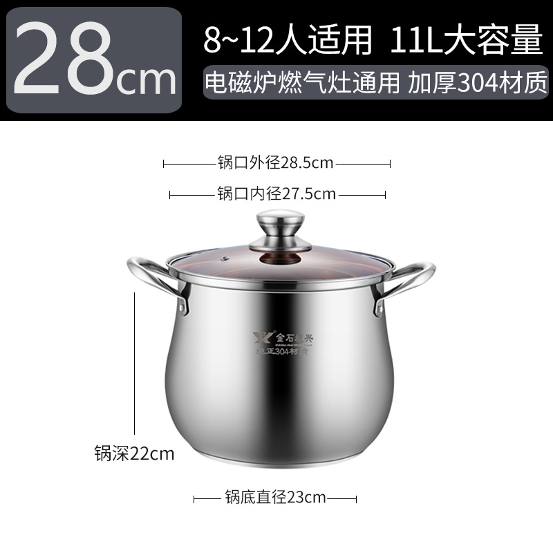 森可高汤锅不锈钢304加厚三层钢家用双耳复底通用大容量汤锅