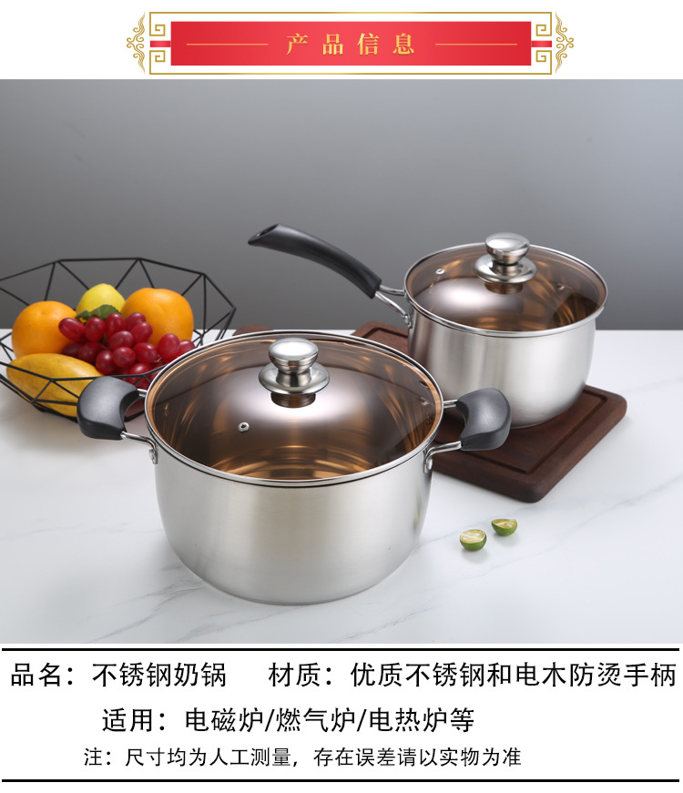 大尺寸奶锅不锈钢小汤锅奶锅煮面个人锅儿童辅食锅电池炉煤气通用