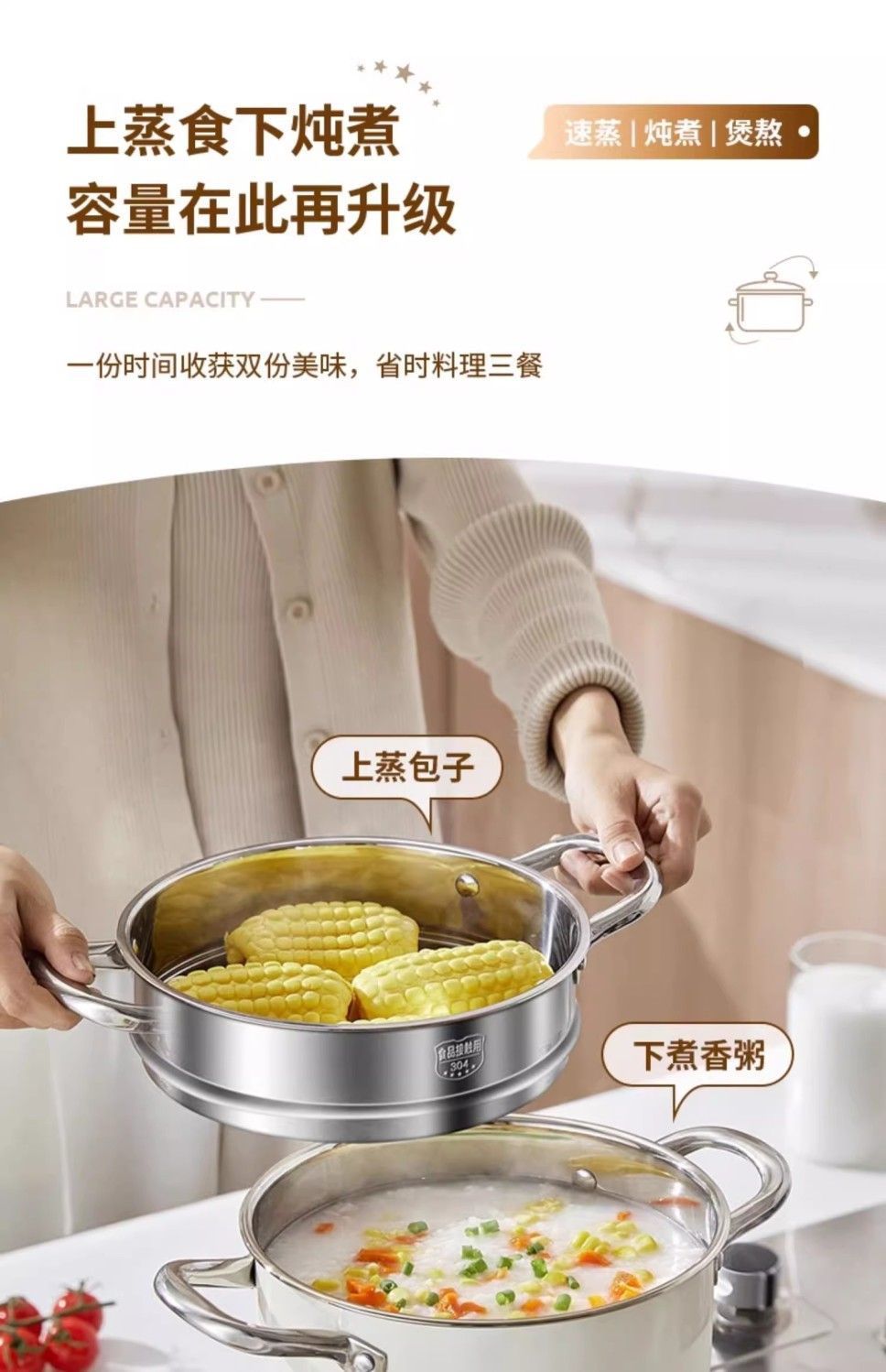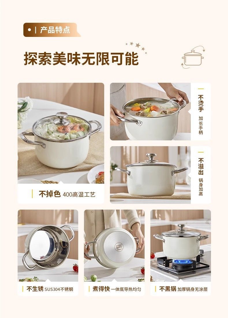 家用304不锈钢汤锅加厚煮锅电磁炉燃气双耳锅欧式食品级不锈批发