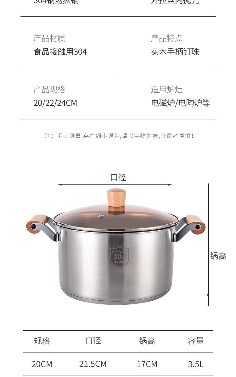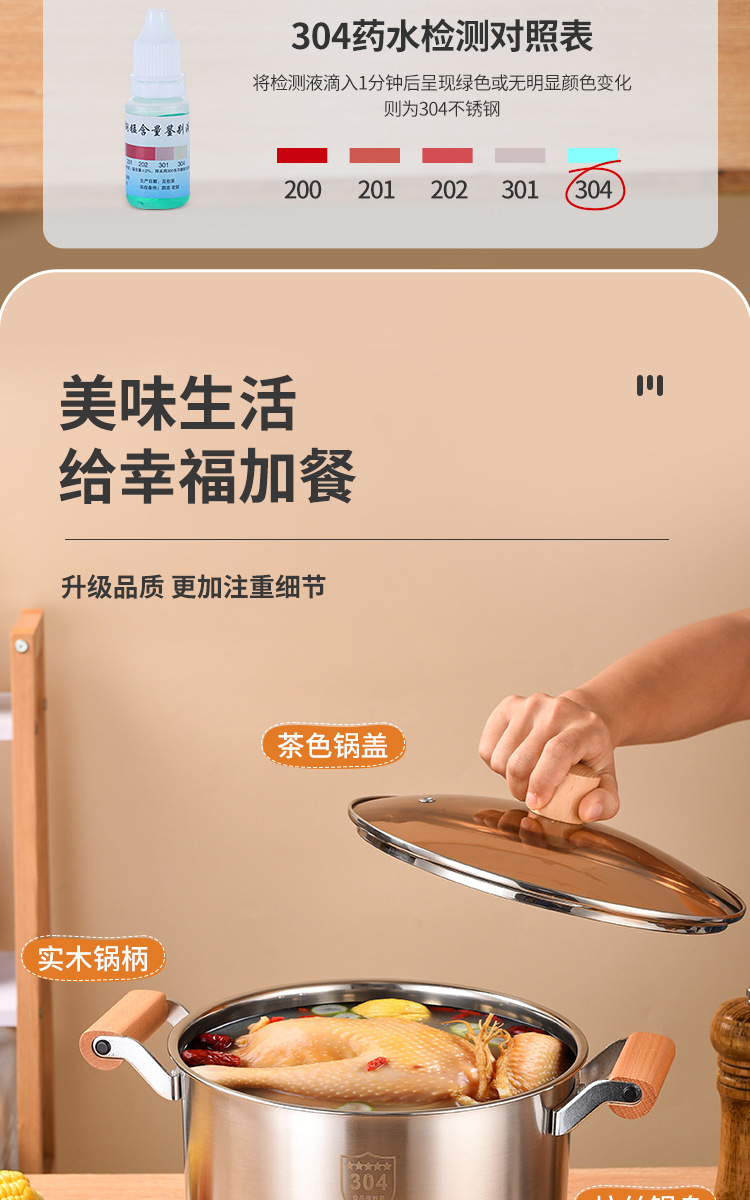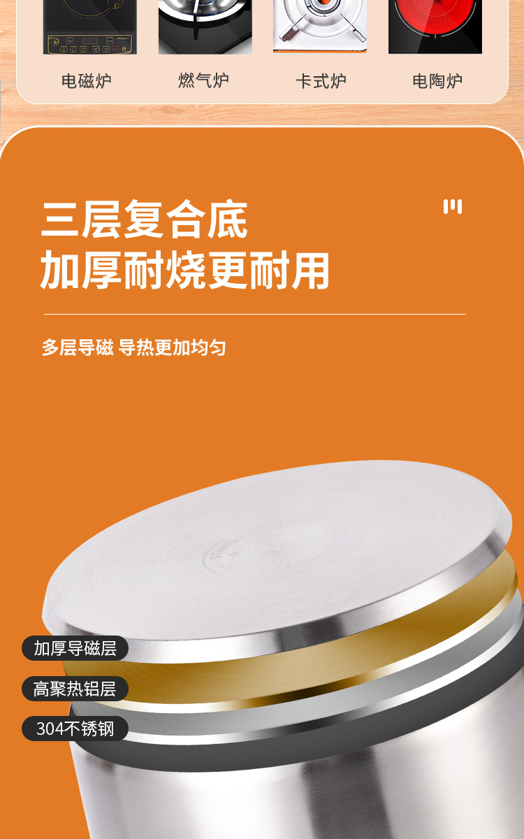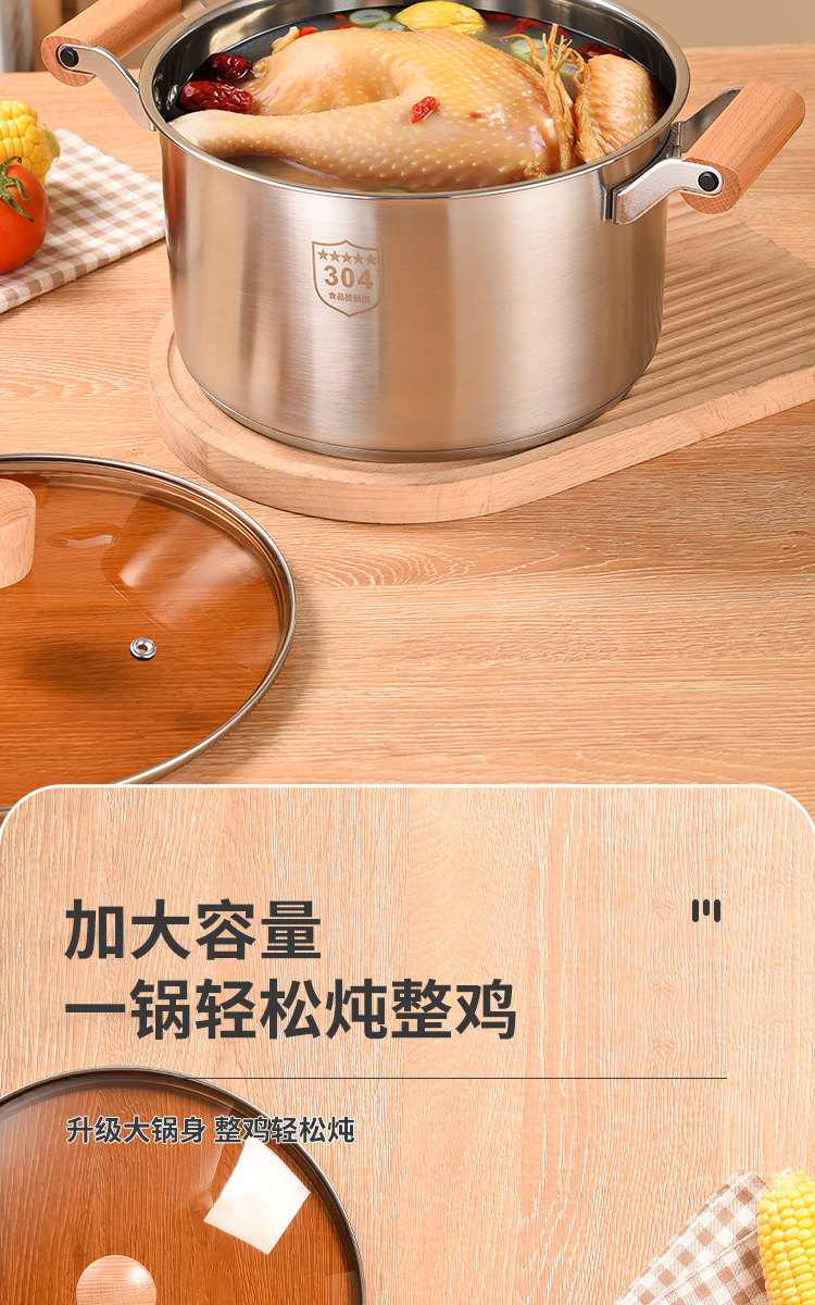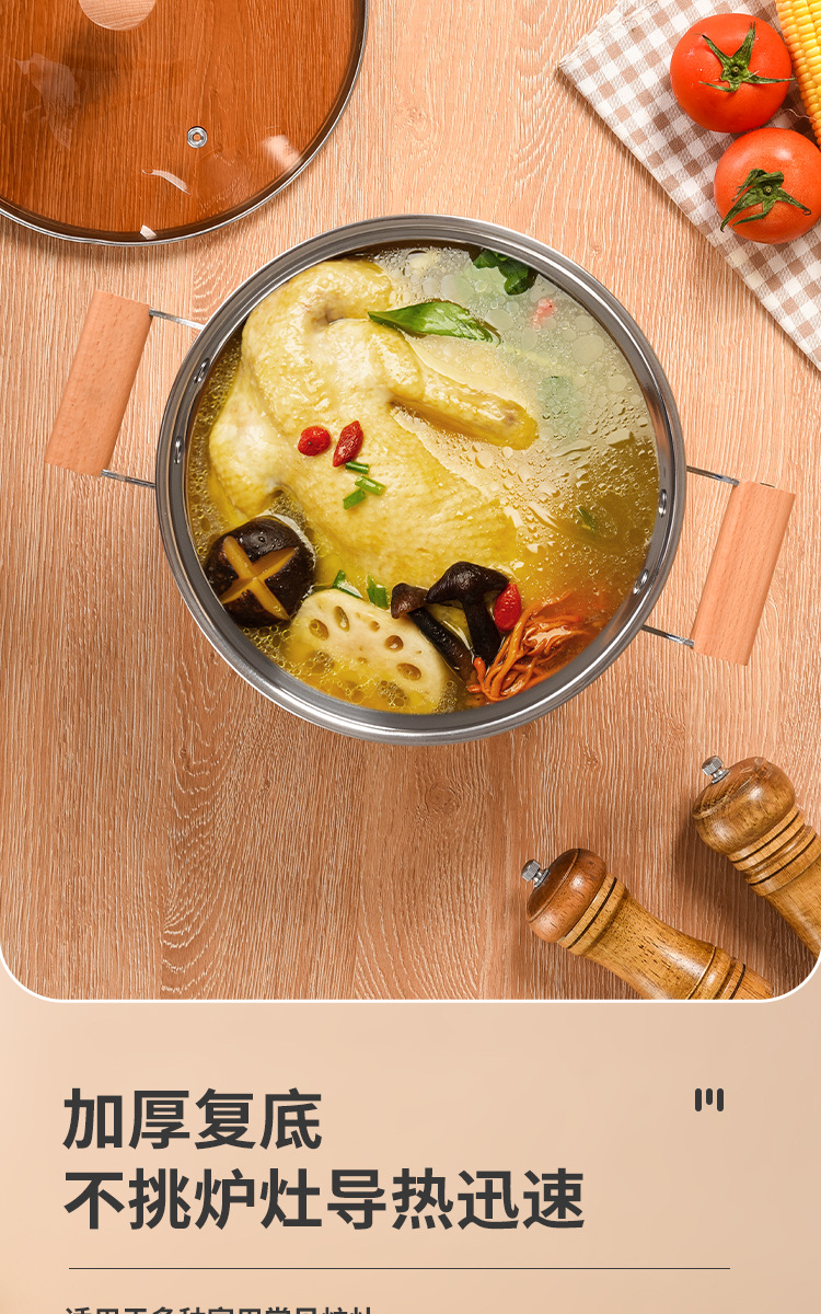 304不锈钢汤锅家用特厚电磁炉煲汤煮粥锅奶瓶消毒锅燃气炉双耳锅