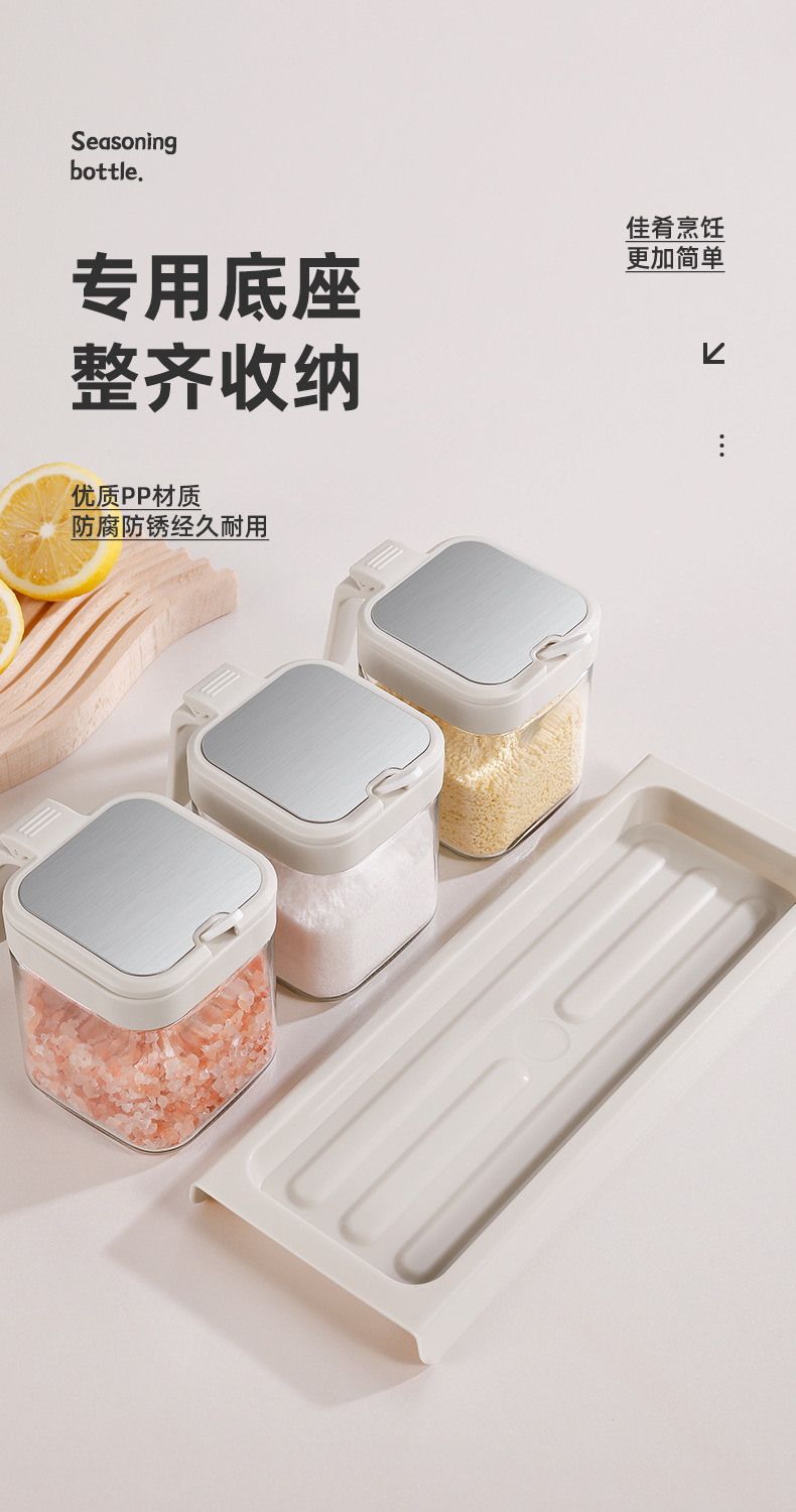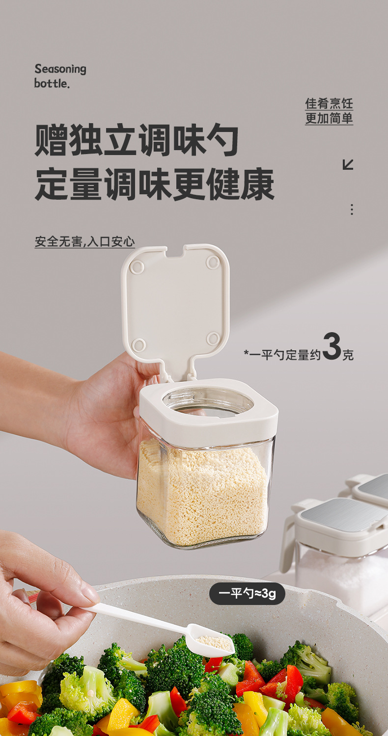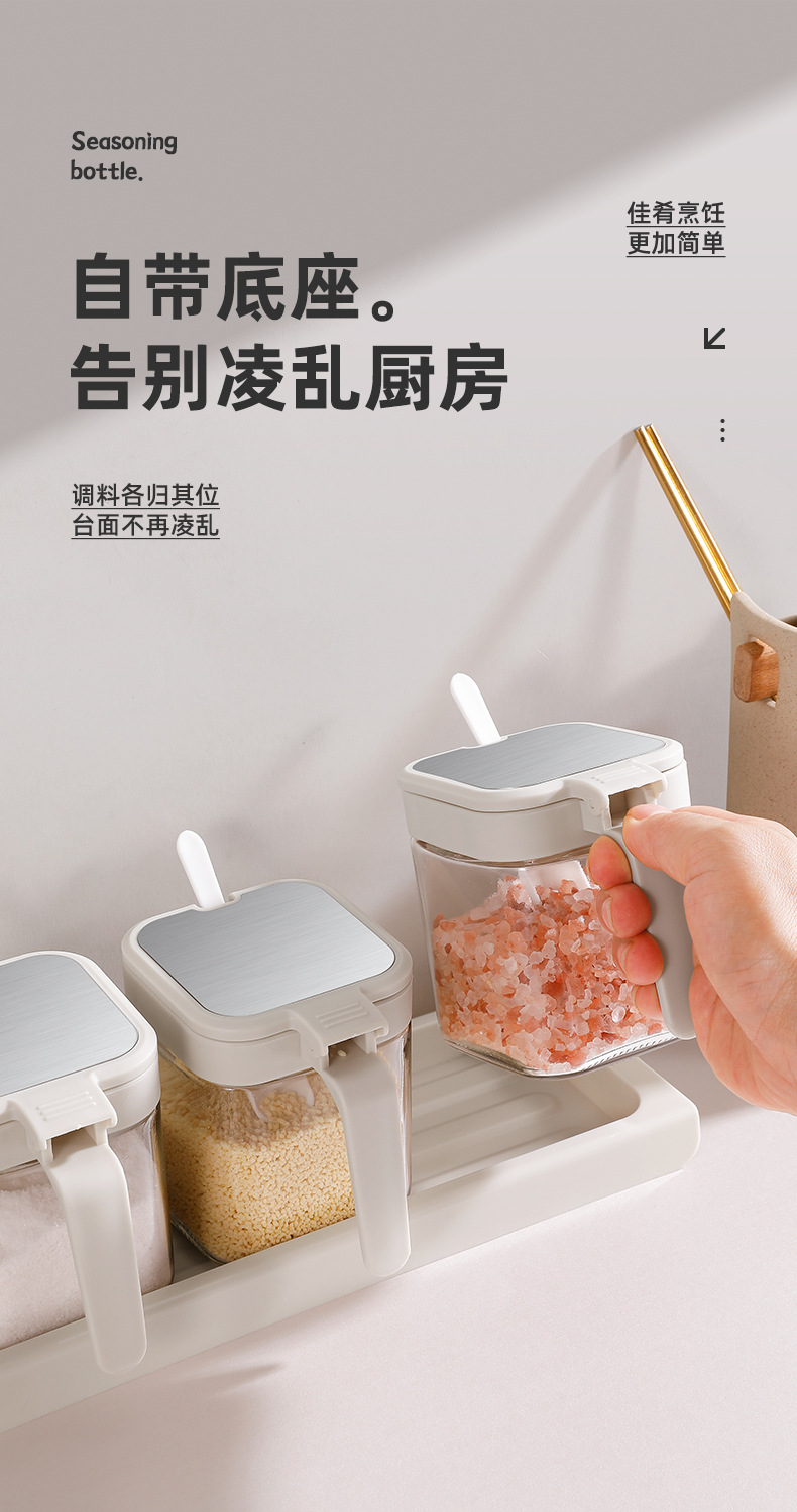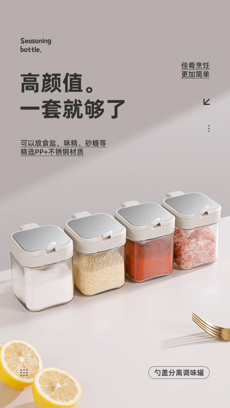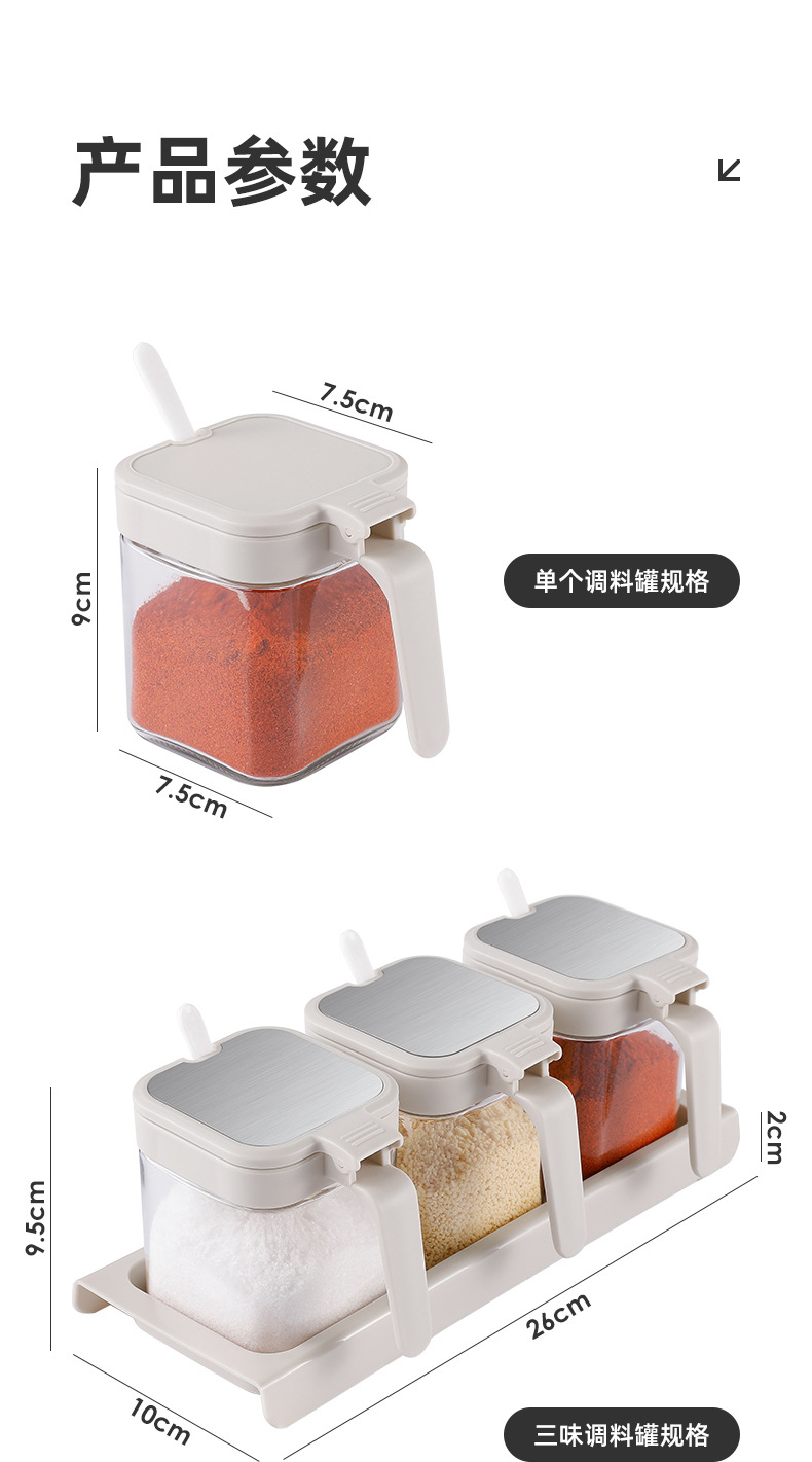 厨房调料盒家用组合套装盐罐子玻璃调味品收纳盒方形香料瓶配佐料