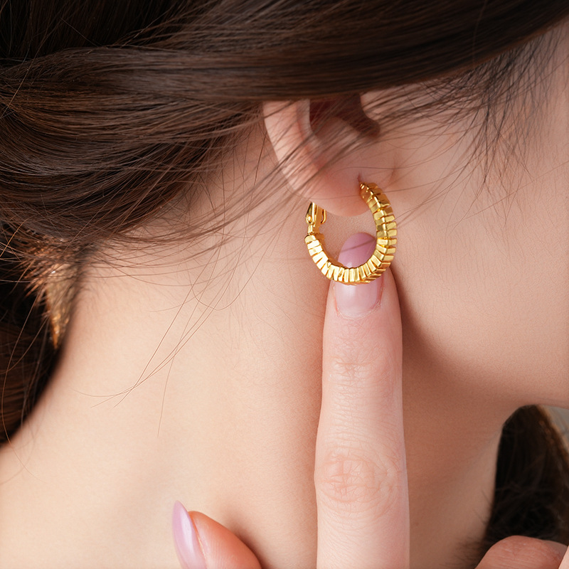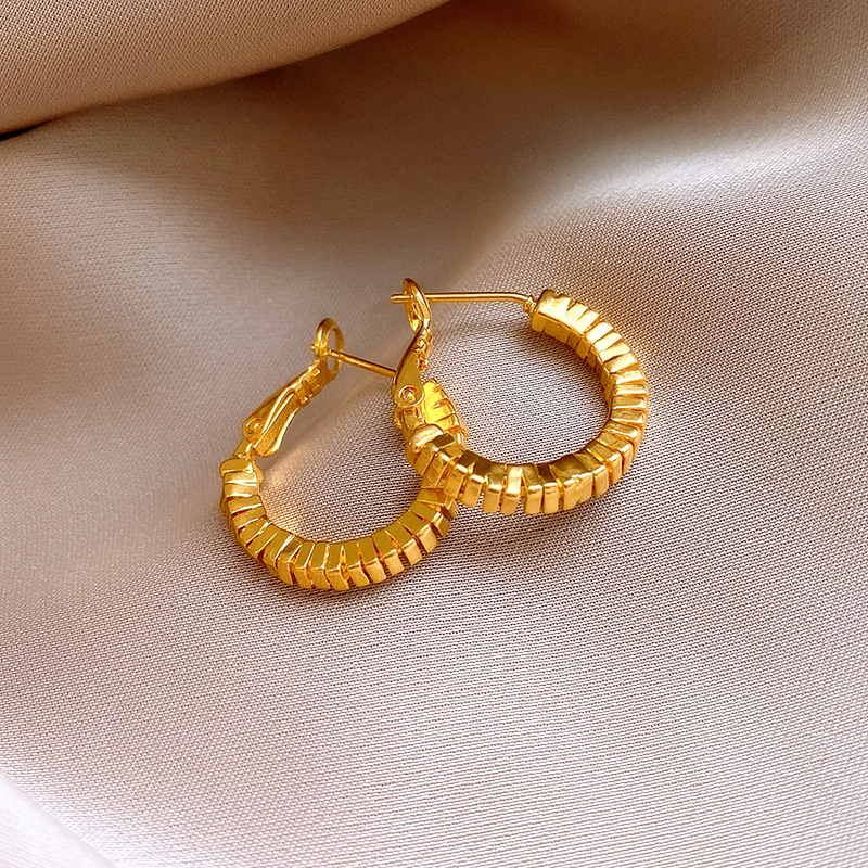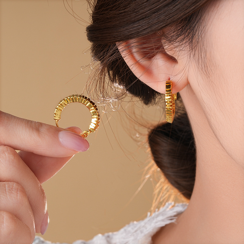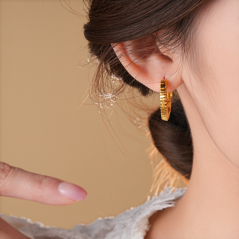 18k真金电镀银针不规则碎银圆形耳环时尚ins风耳圈新款百搭耳饰女