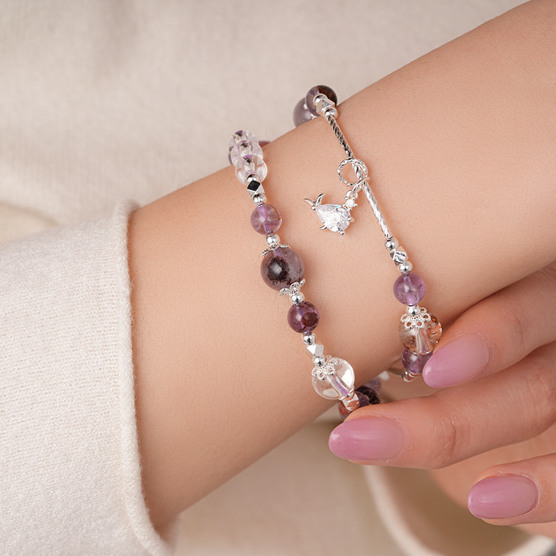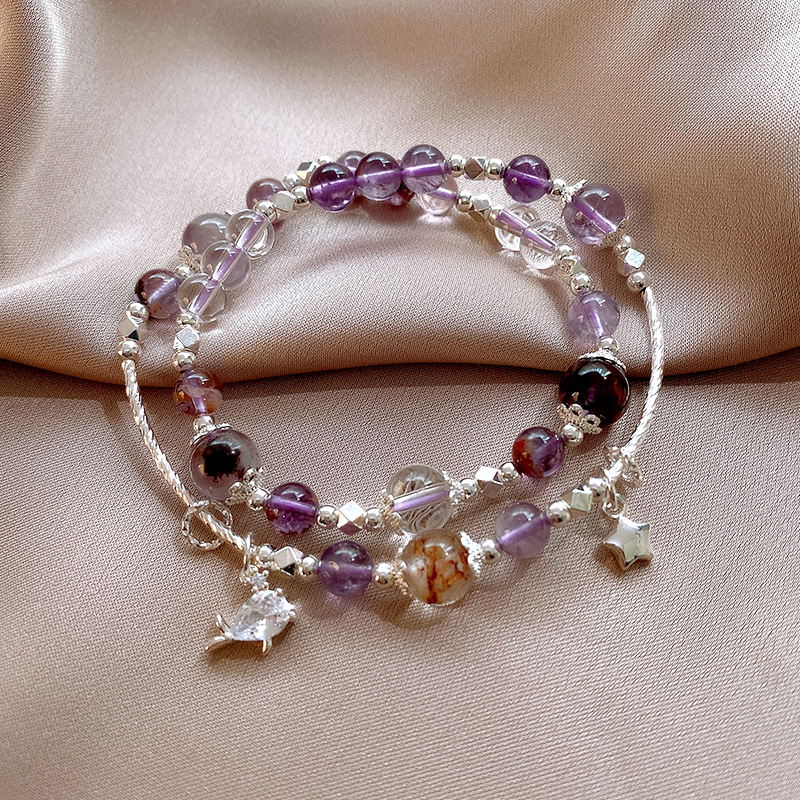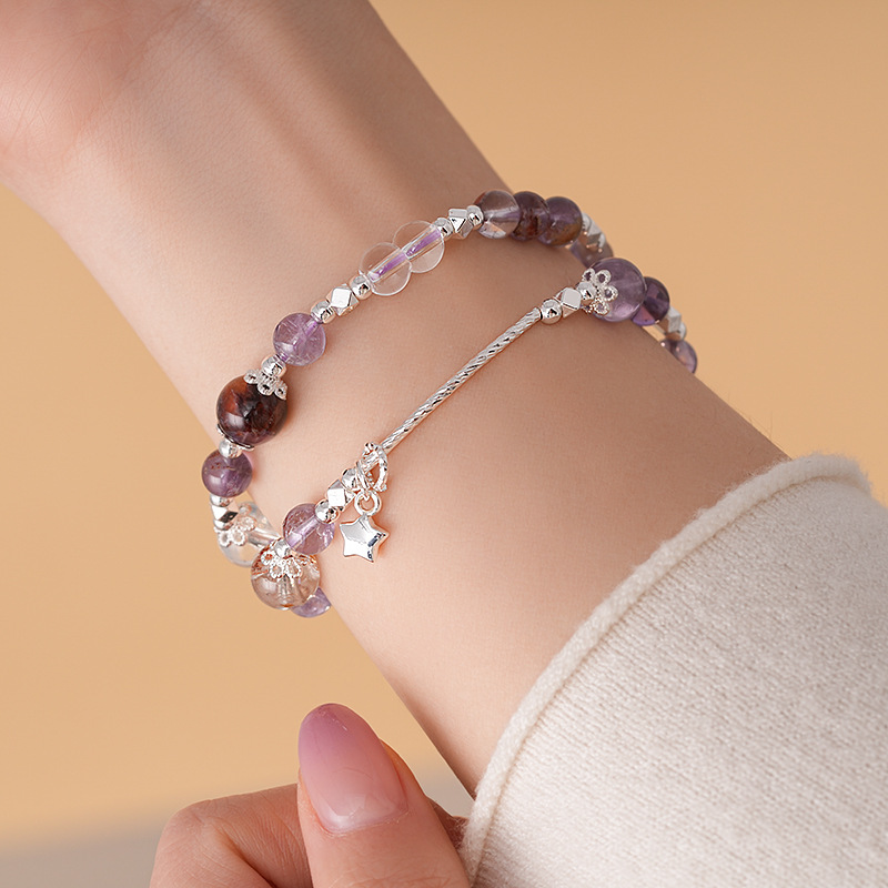 紫晶锆石星星水滴双层水晶手链轻奢高级感手串新中式时尚手饰批发