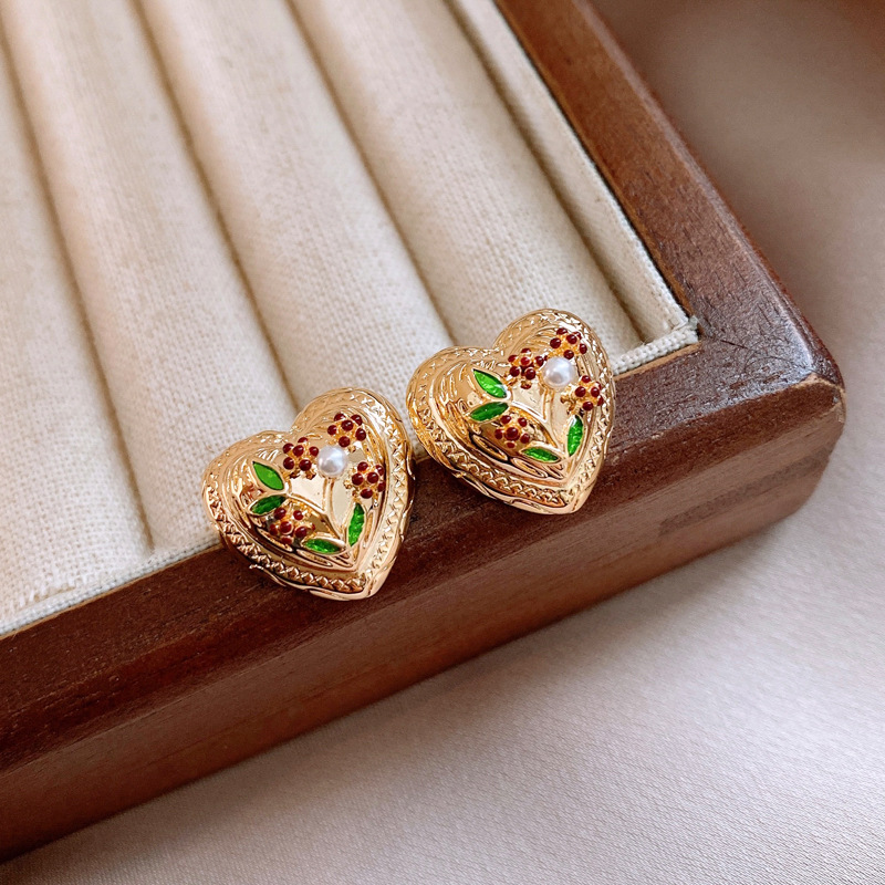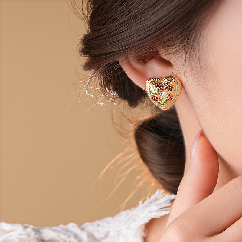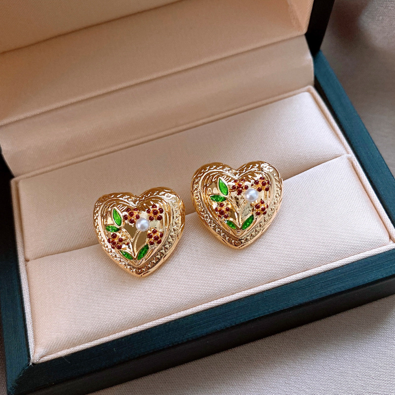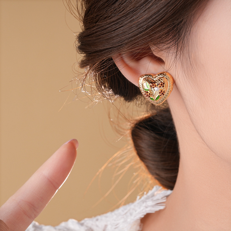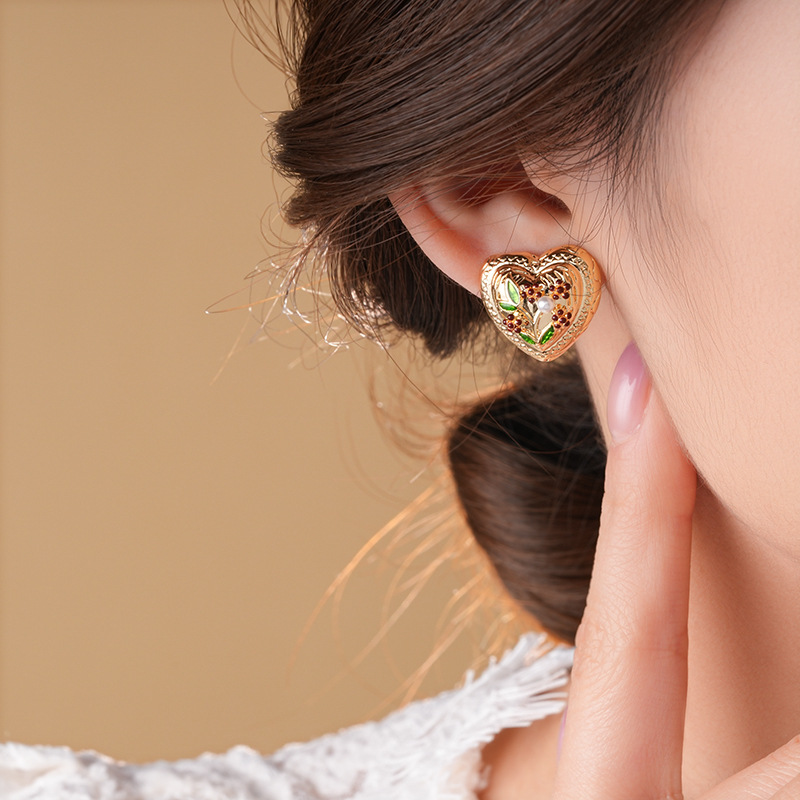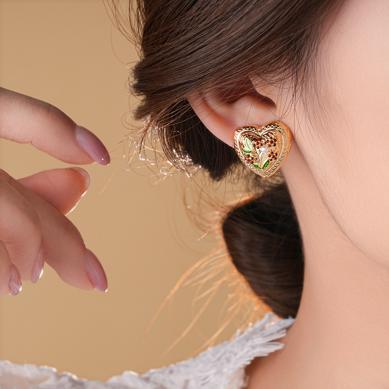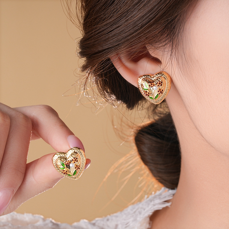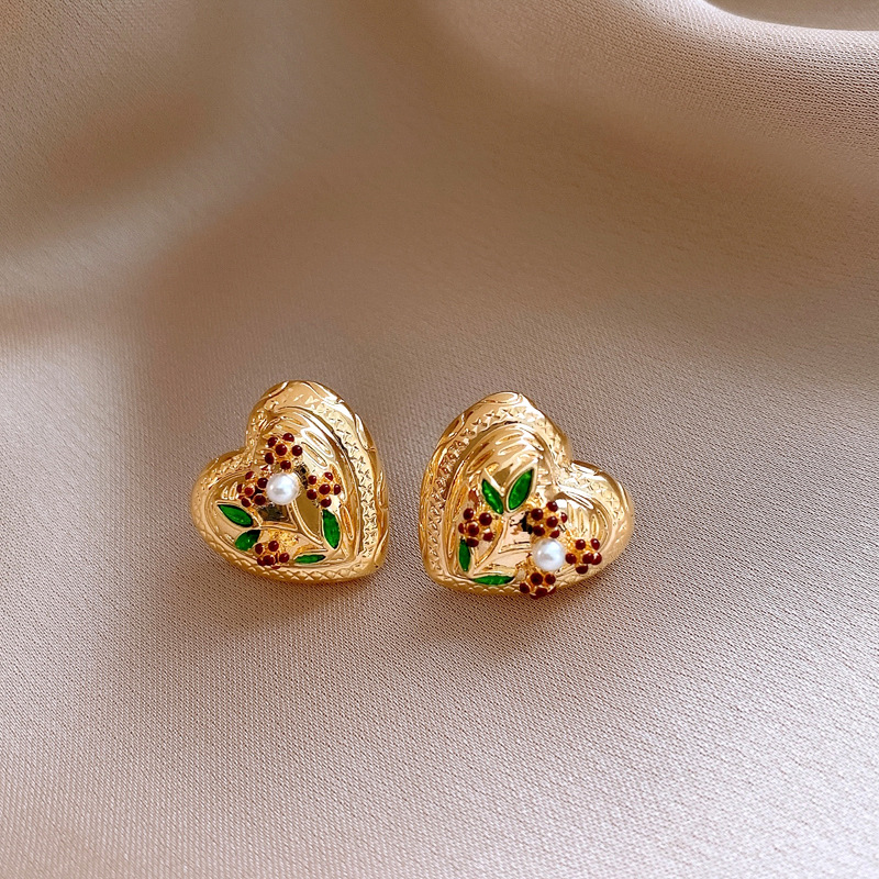 真金电镀滴油花朵爱心珍珠耳钉简约时尚耳环轻奢高级感百搭耳饰女