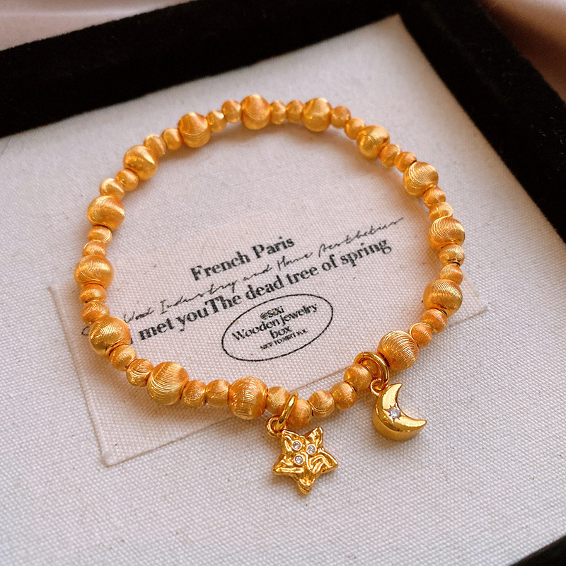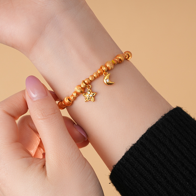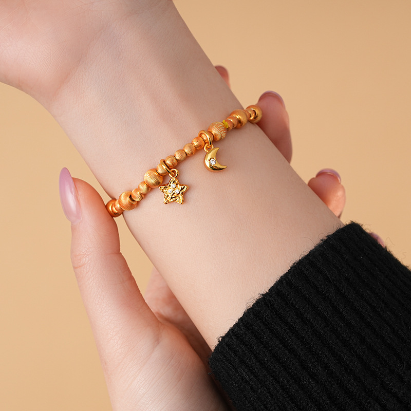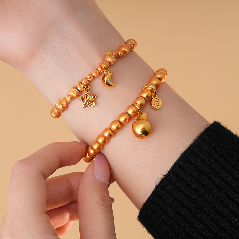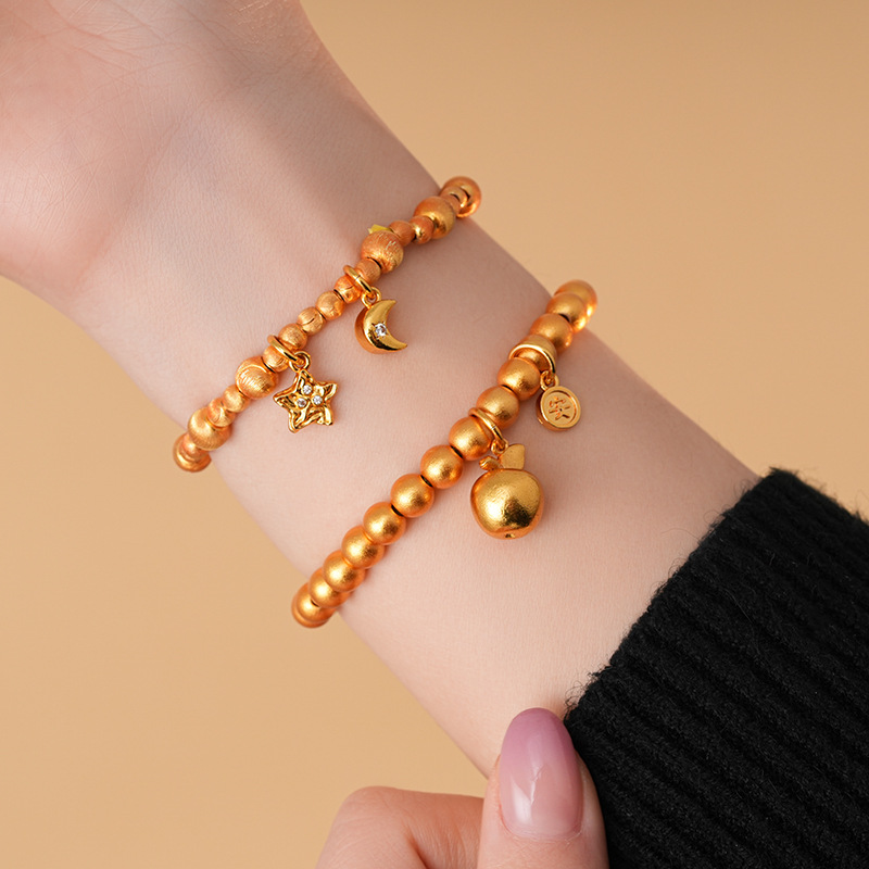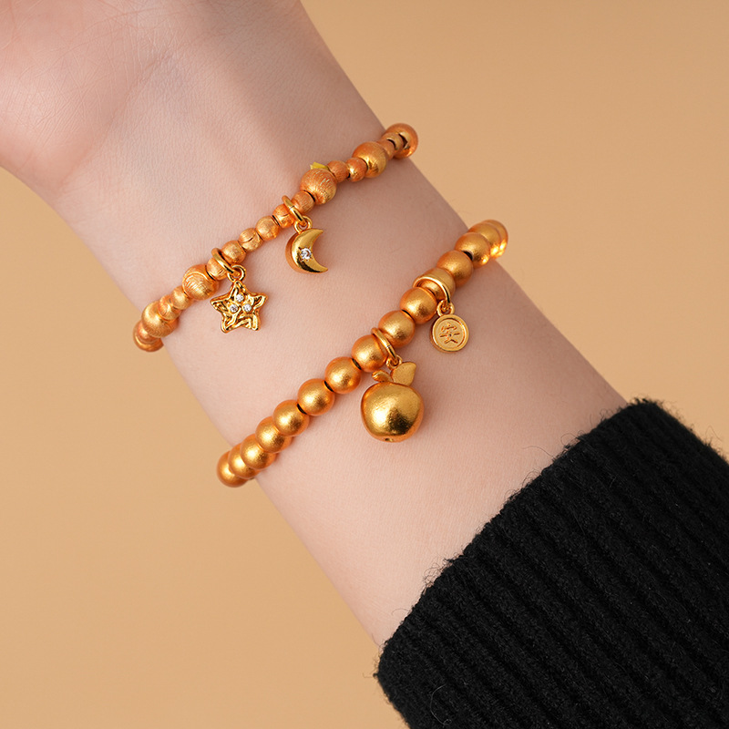 24k真金电镀星星月亮苹果手链轻奢高级感时尚ins风手串新款手饰女