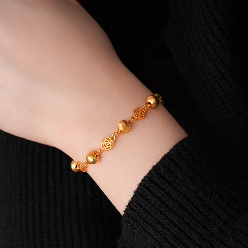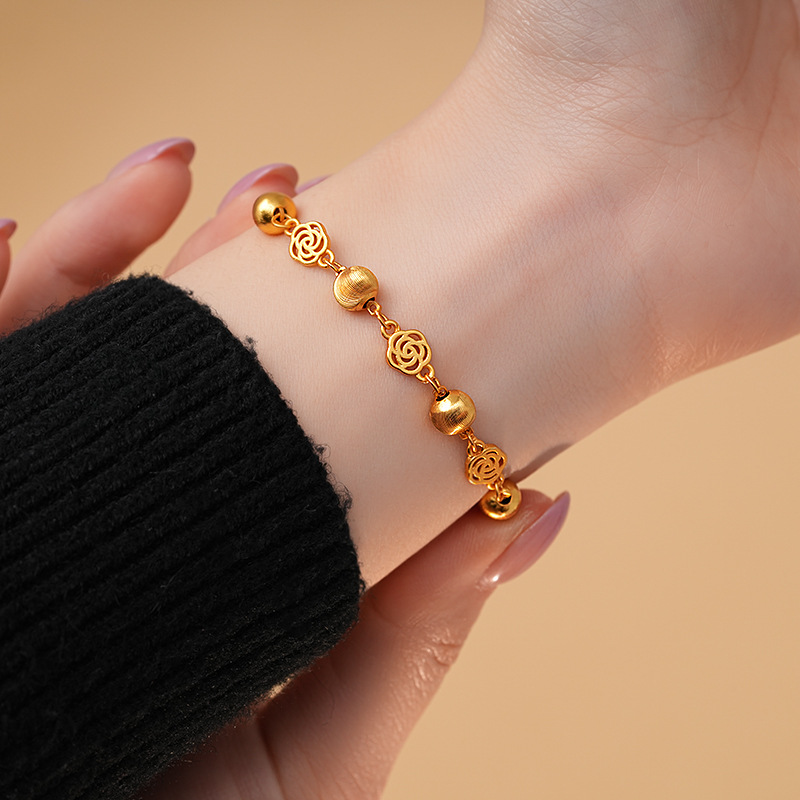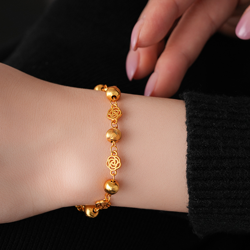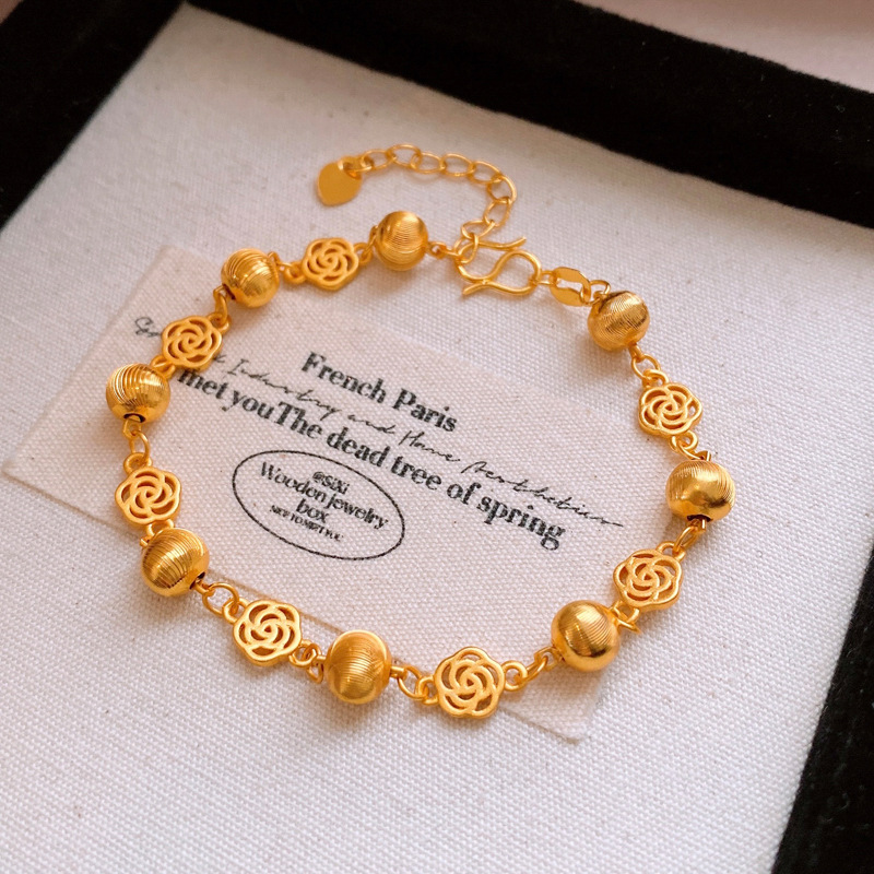 24k真金电镀花朵圆球手链轻奢高级感 精致时尚手环女新款手饰批发