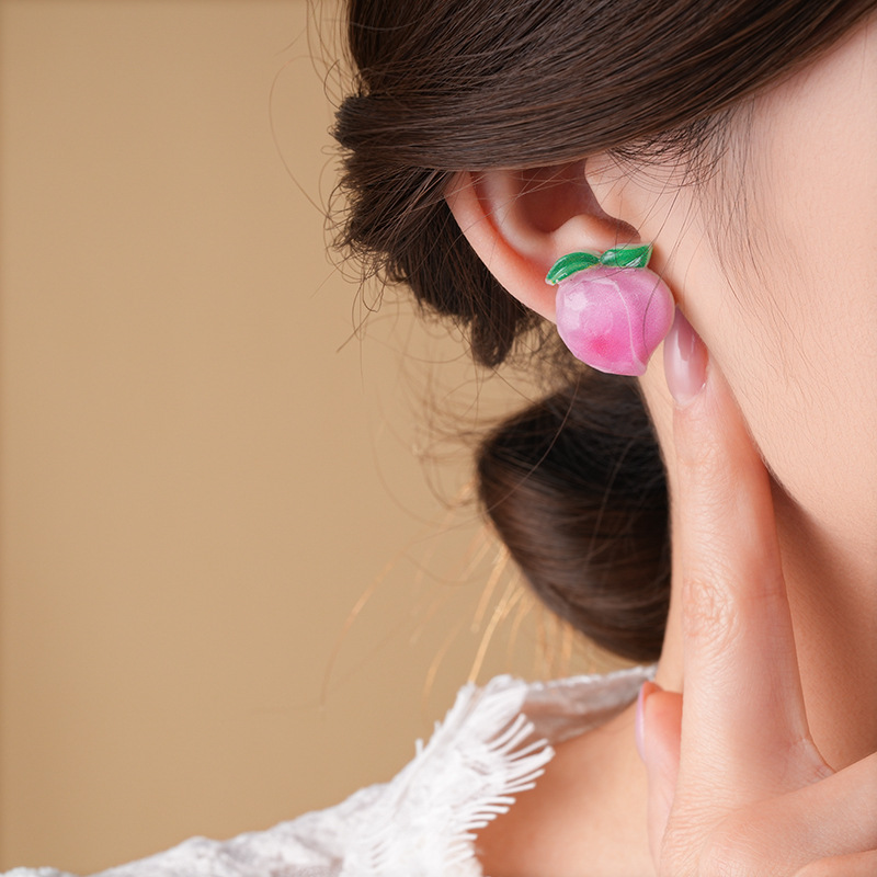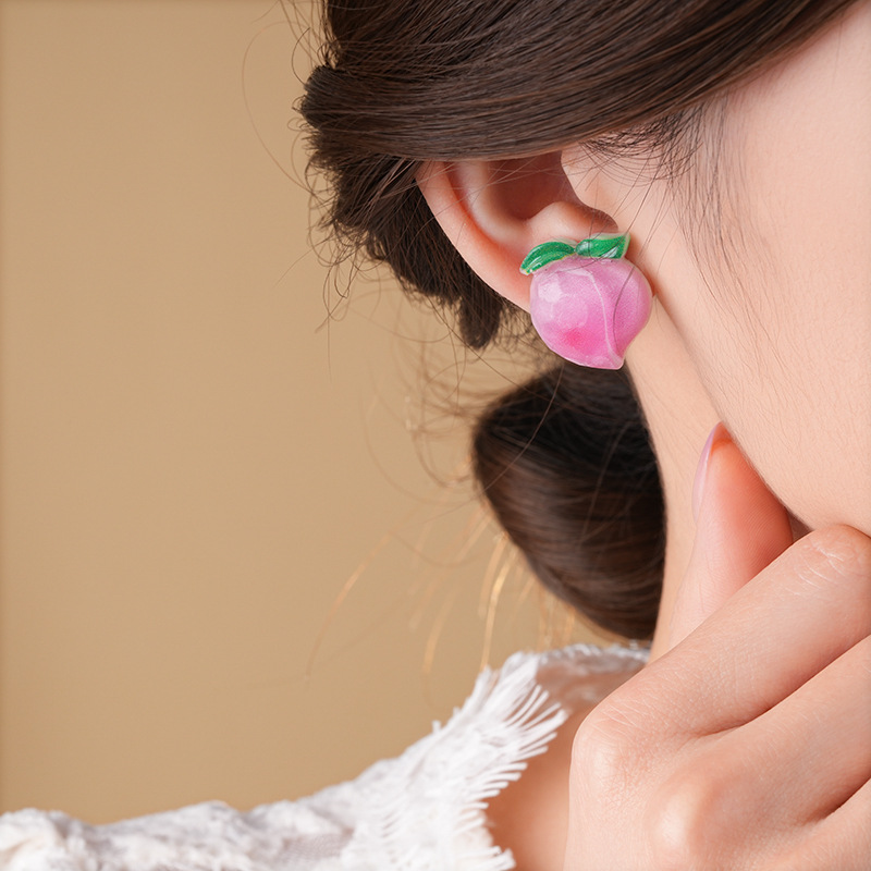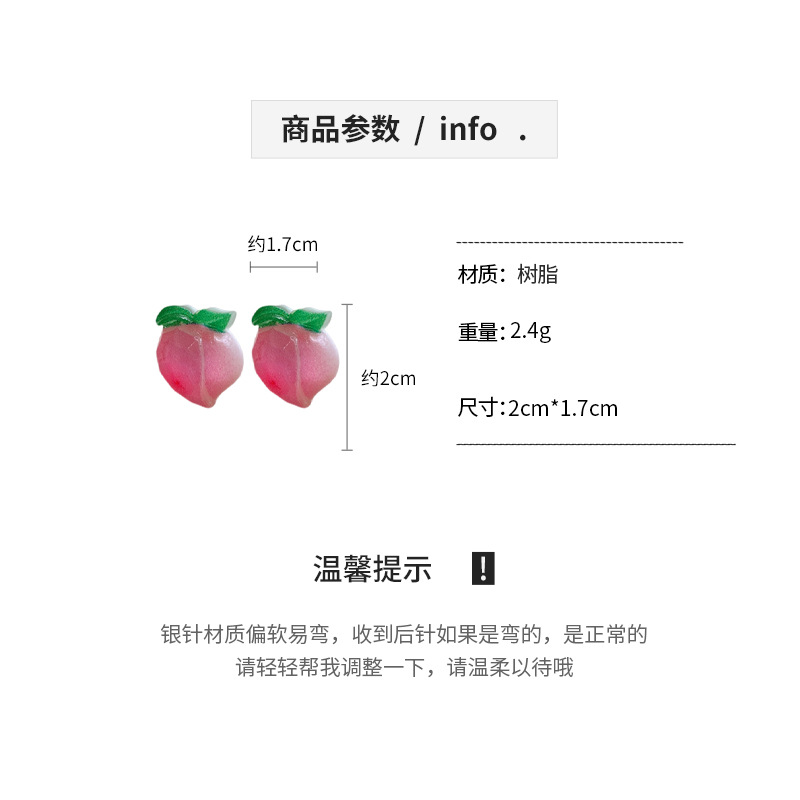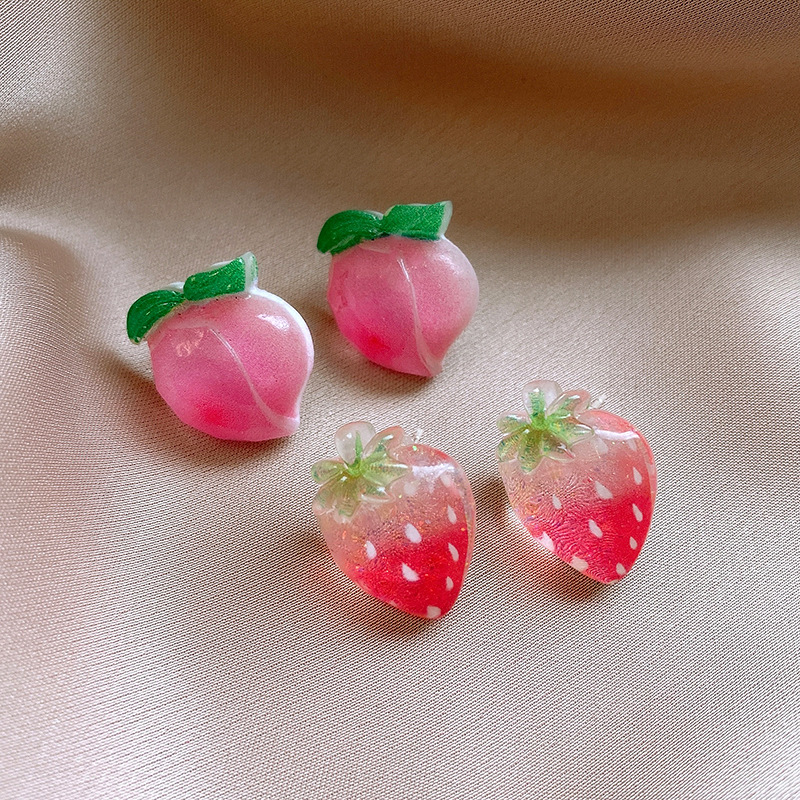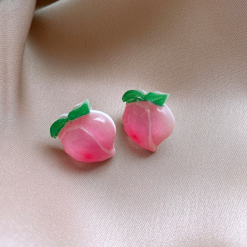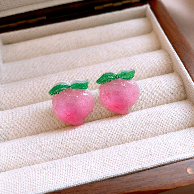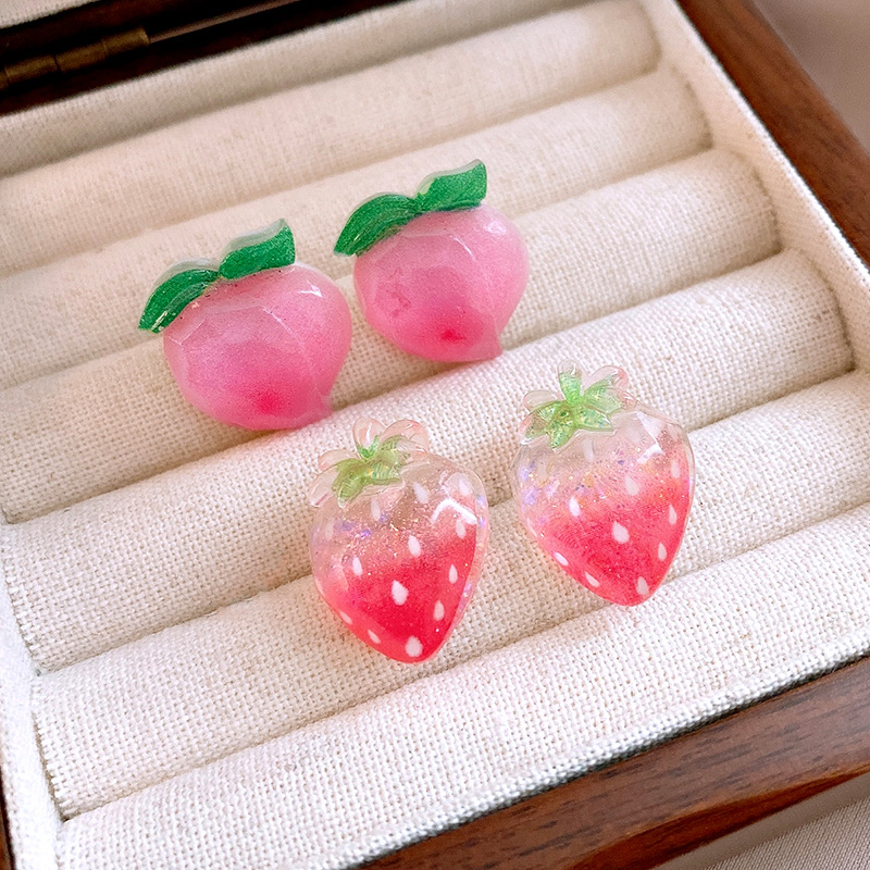 银针树脂桃子草莓耳钉简约独特设计耳环轻奢高级感新款时尚耳饰女