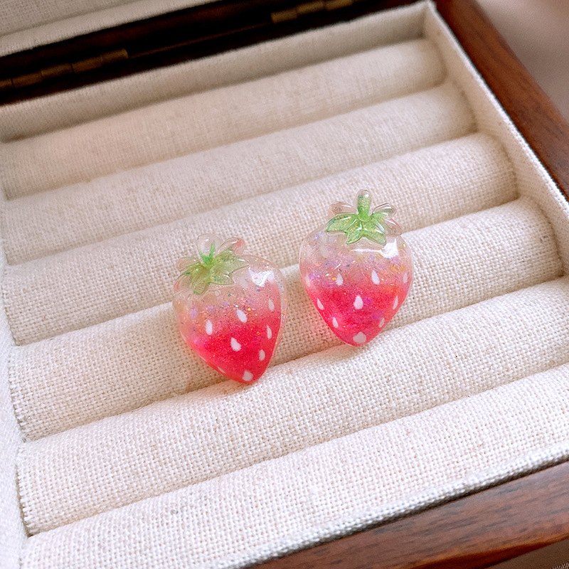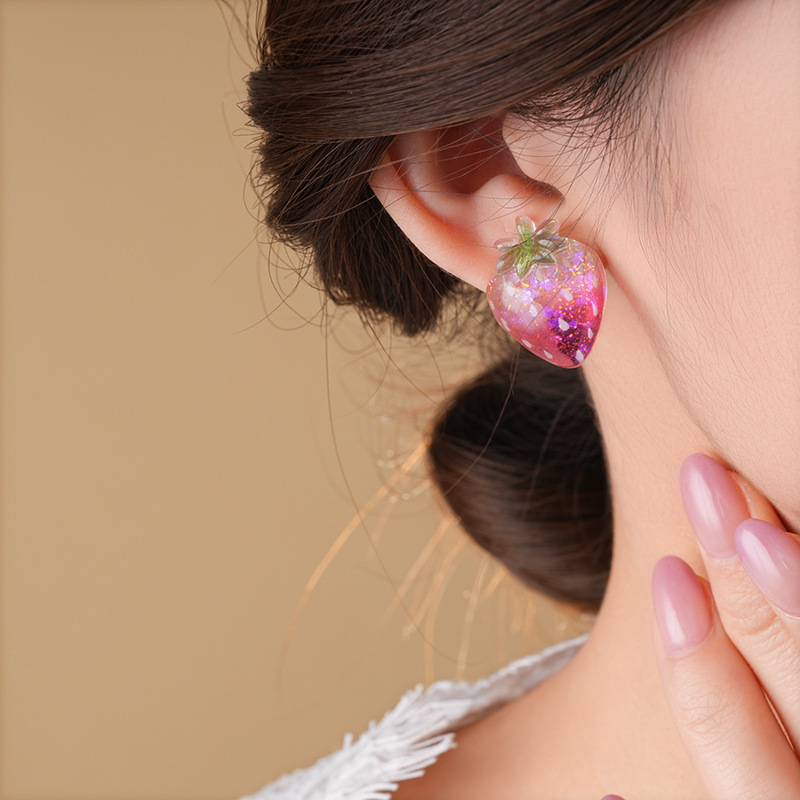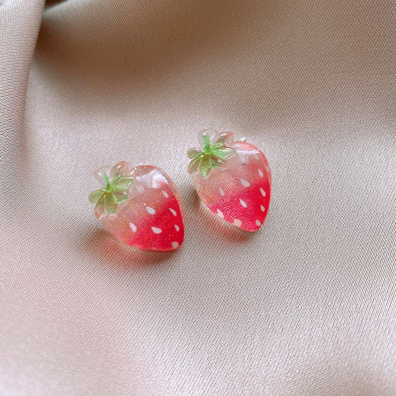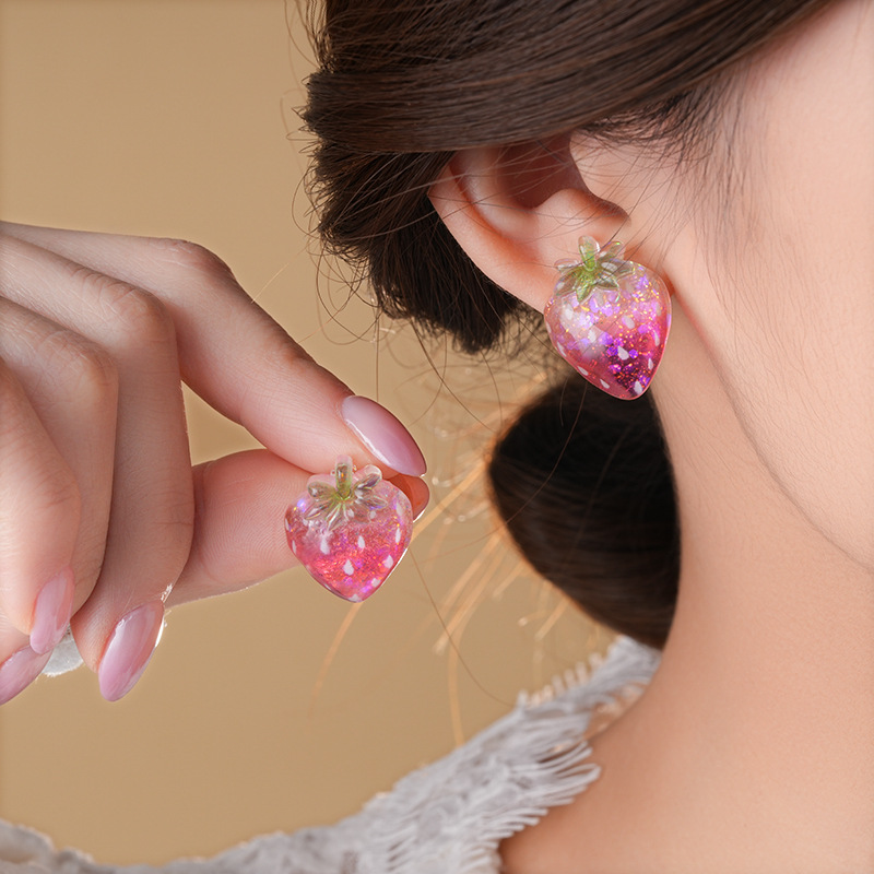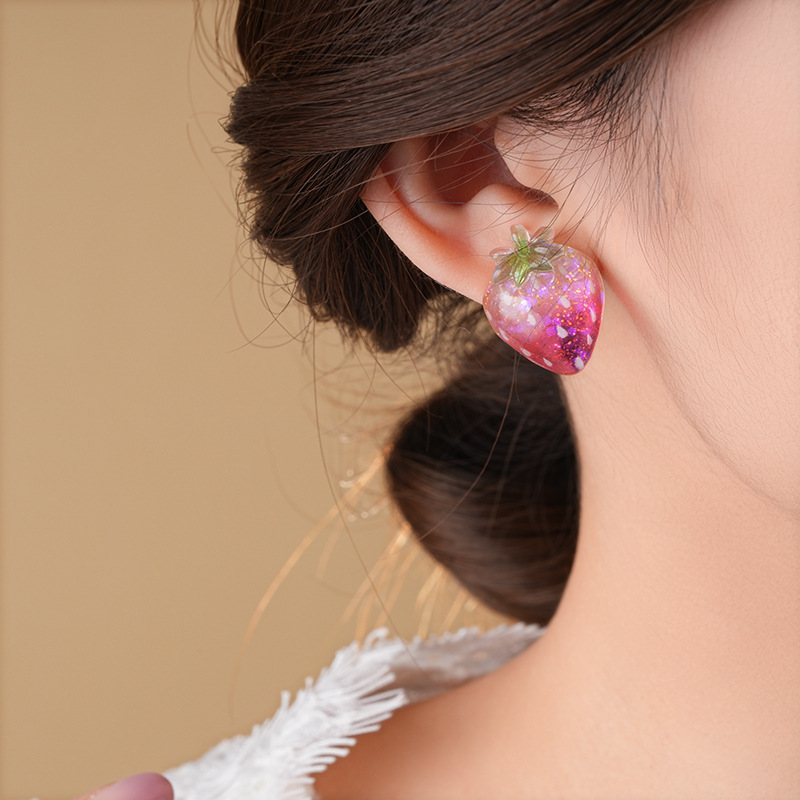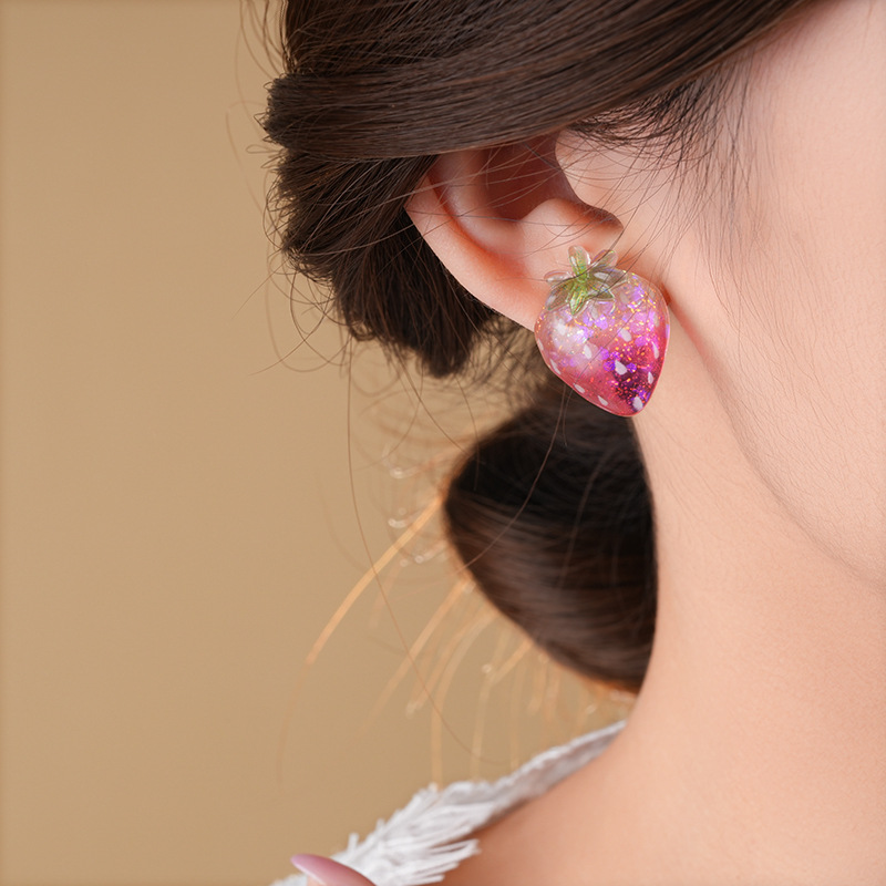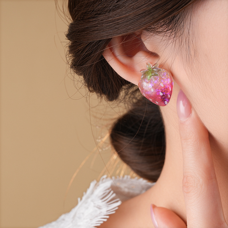 银针树脂桃子草莓耳钉简约独特设计耳环轻奢高级感新款时尚耳饰女