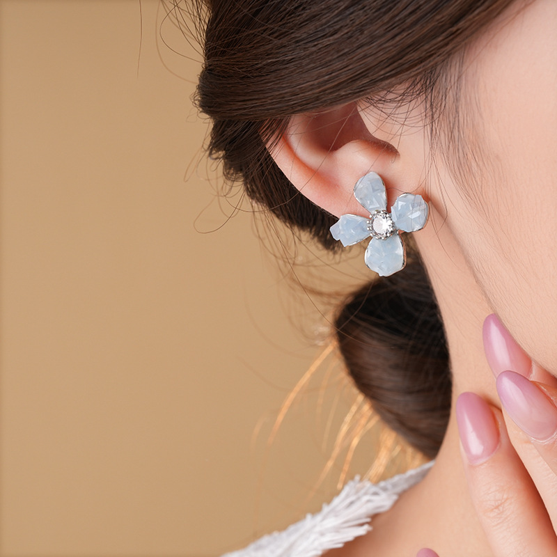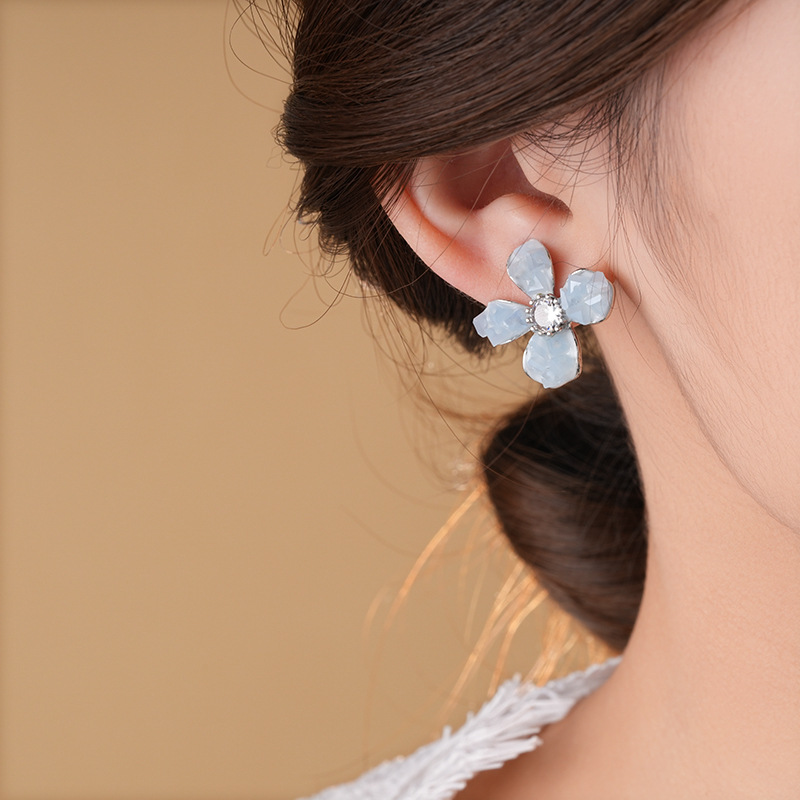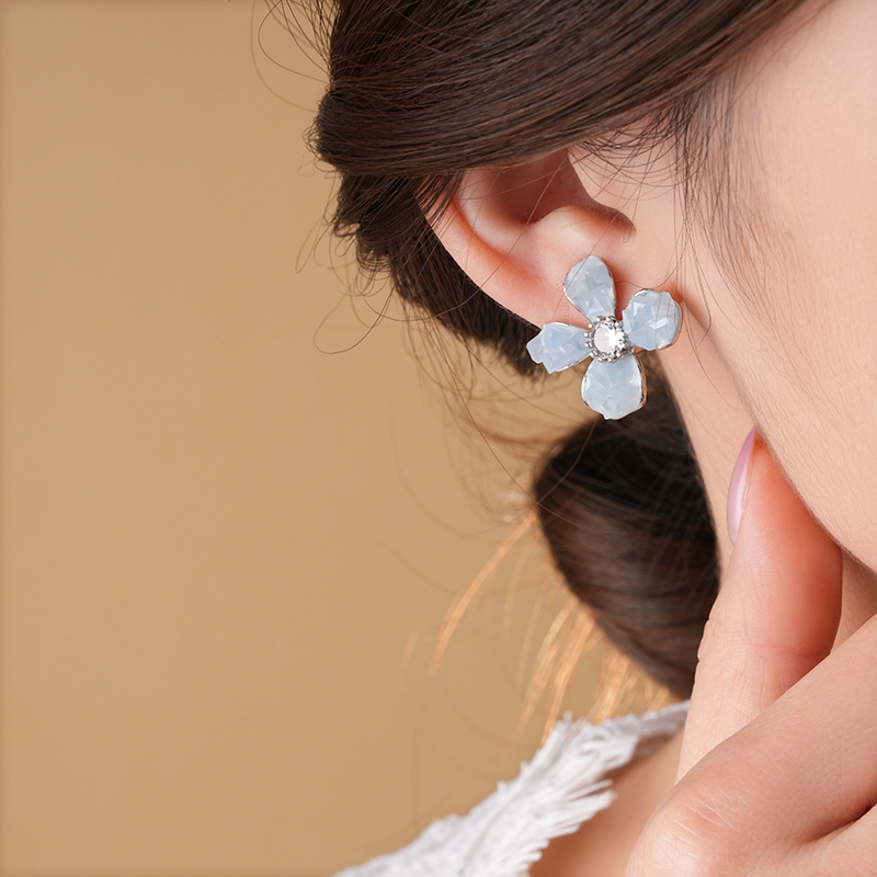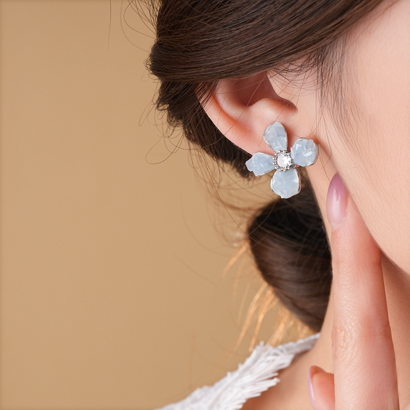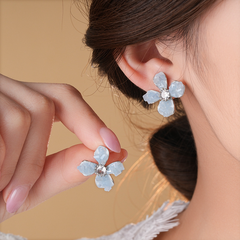 银针锆石水晶蝴蝶结花朵耳环简约时尚耳钉轻奢高级感新款耳饰批发