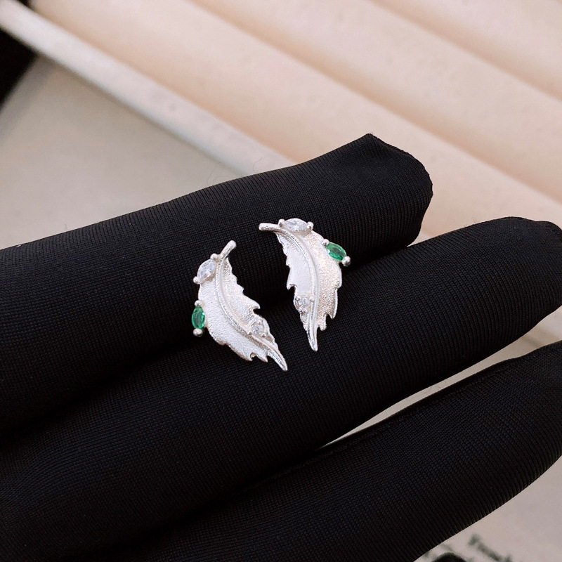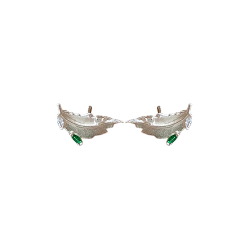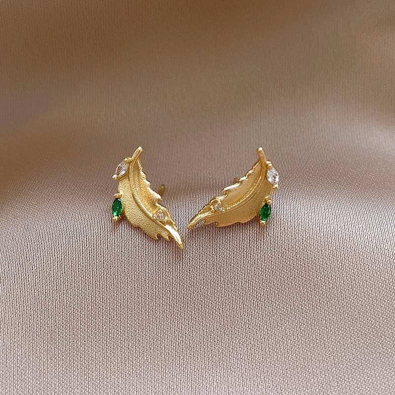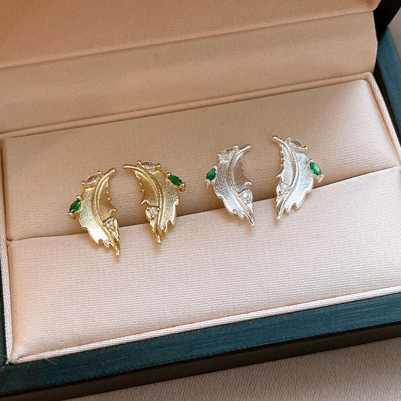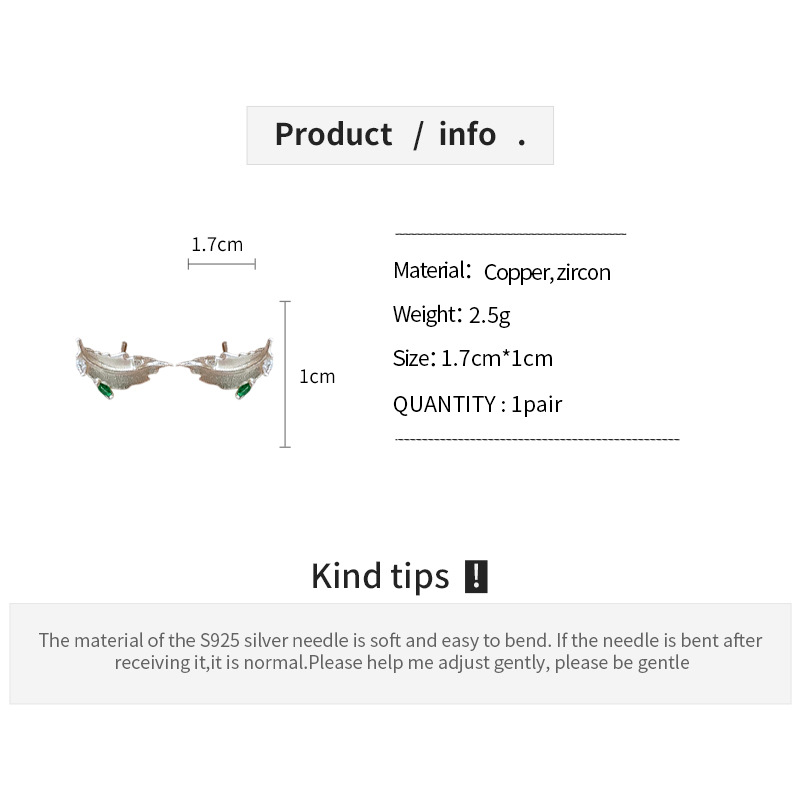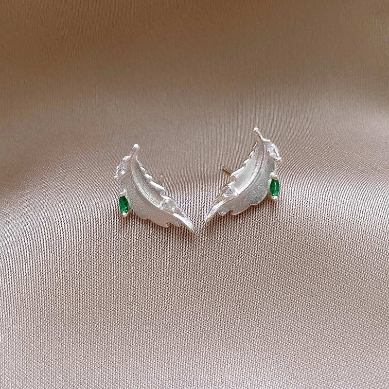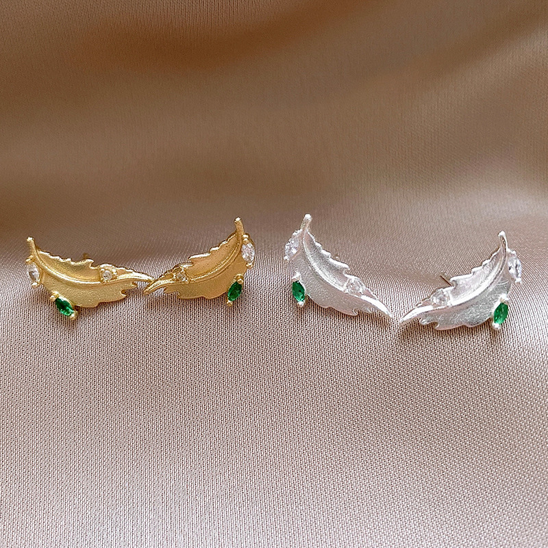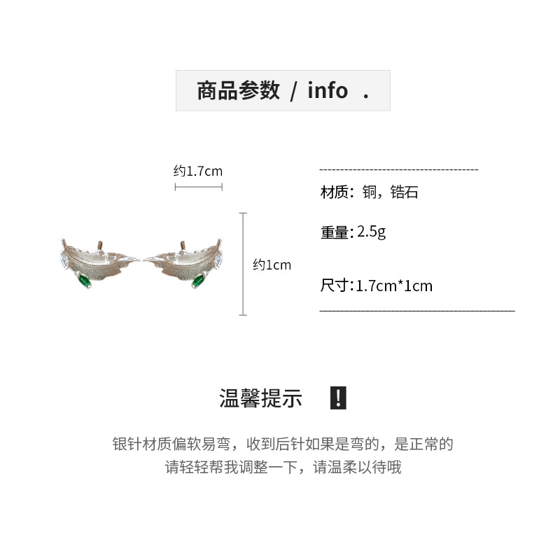 银针锆石简约拉丝树叶耳钉女欧美时尚百搭新款耳环轻奢高级感耳饰