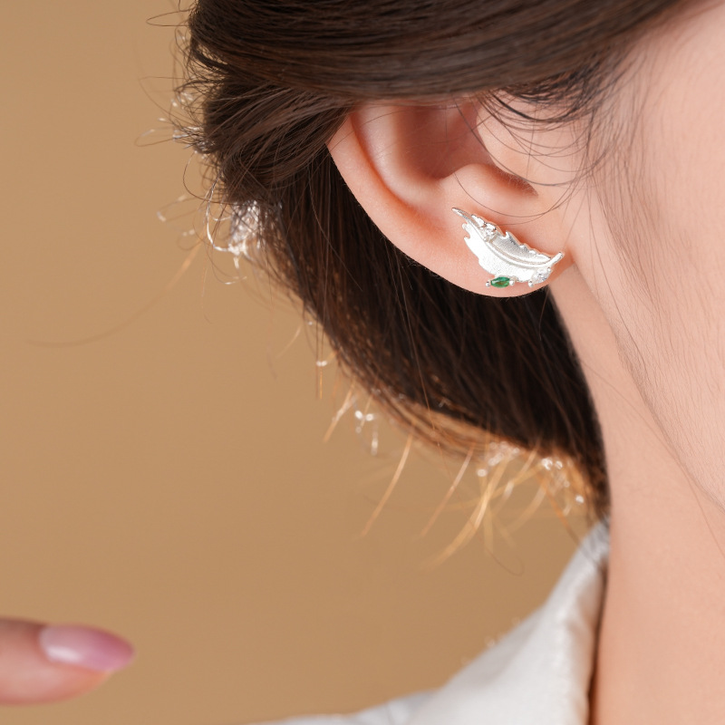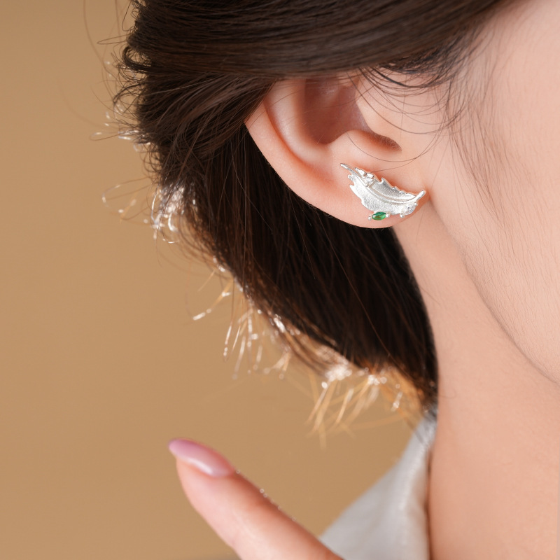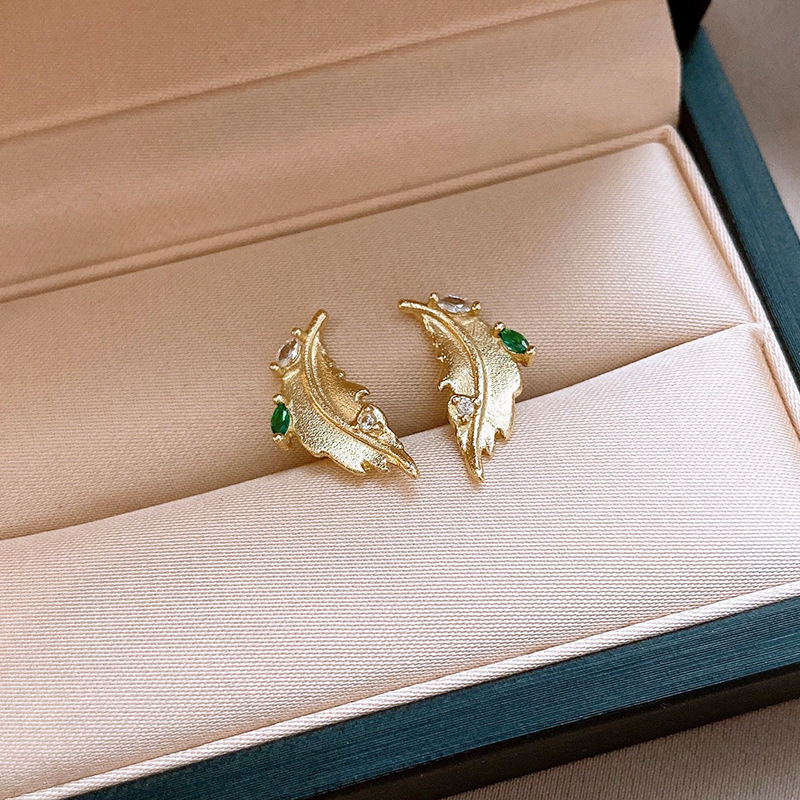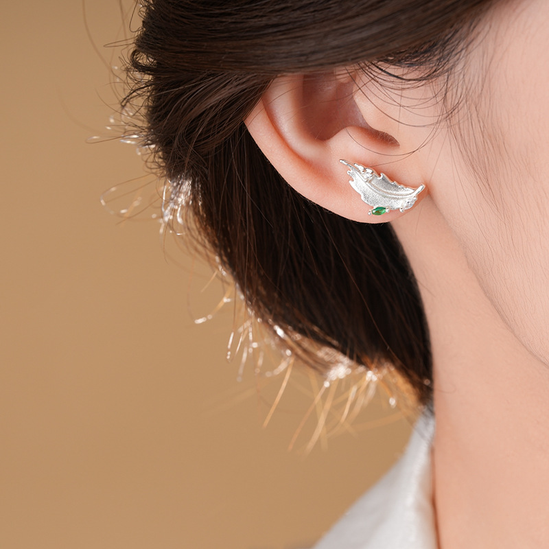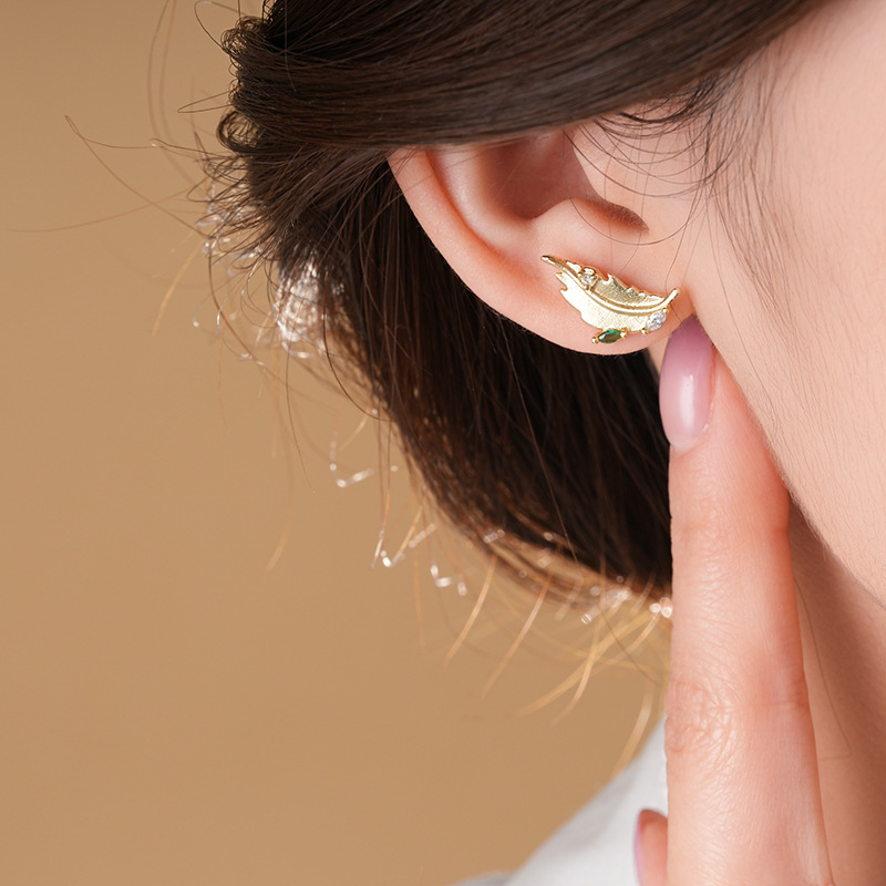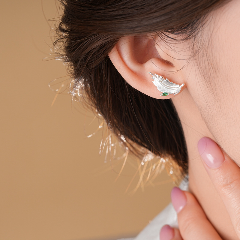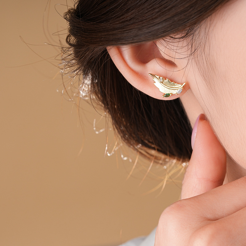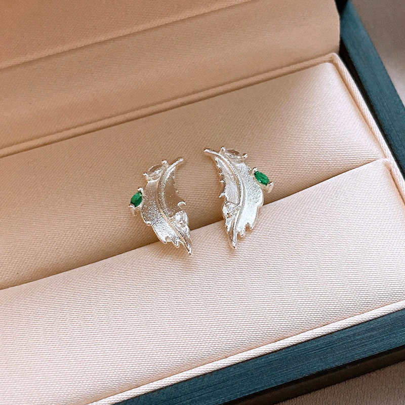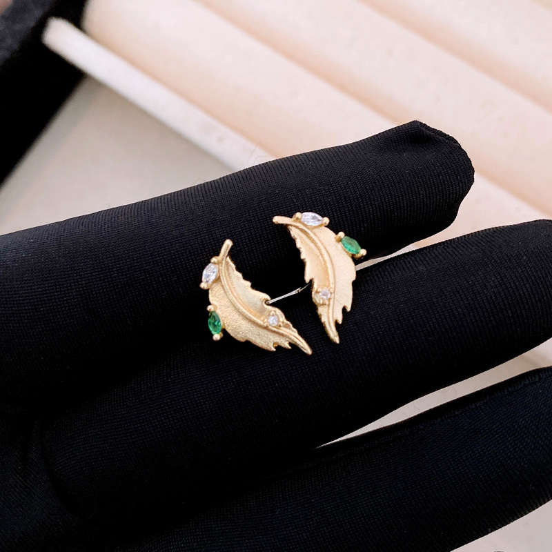 银针锆石简约拉丝树叶耳钉女欧美时尚百搭新款耳环轻奢高级感耳饰