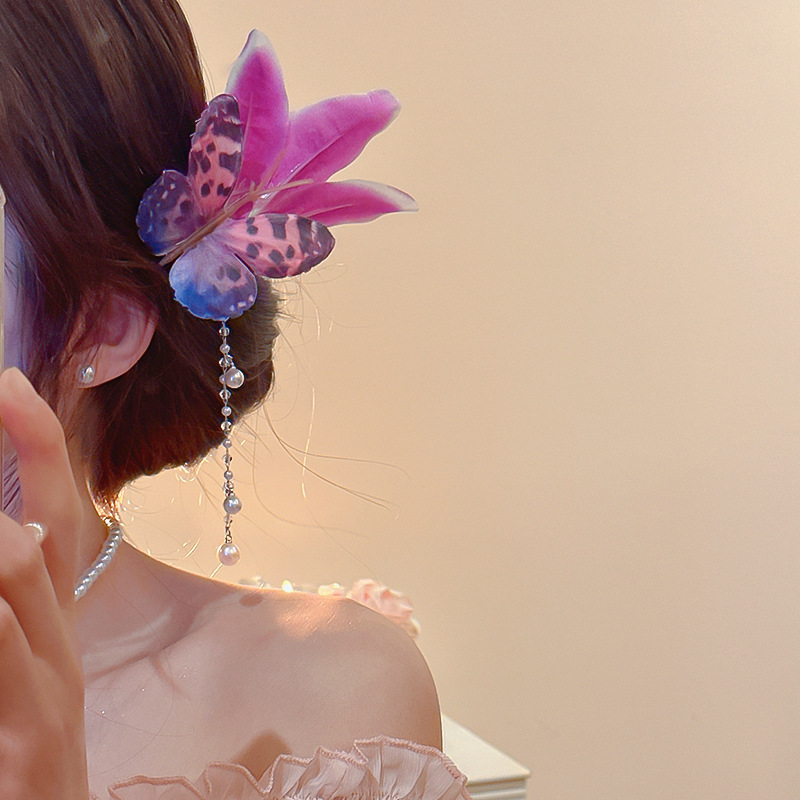 度假风鸡蛋花彼岸花朵抓夹甜美少女刘海侧边发夹波西米亚时尚发饰