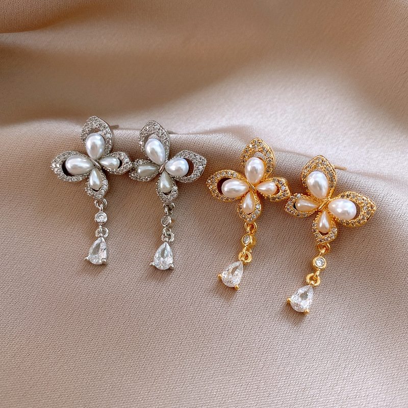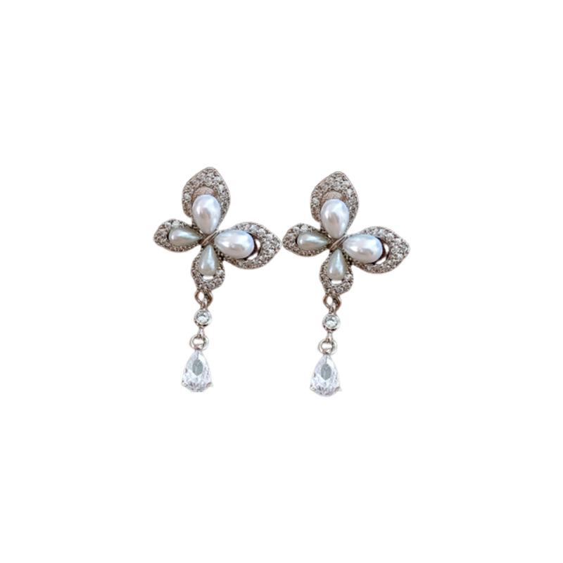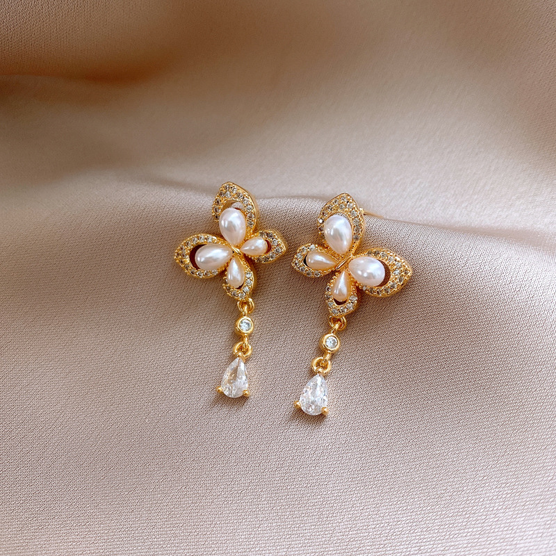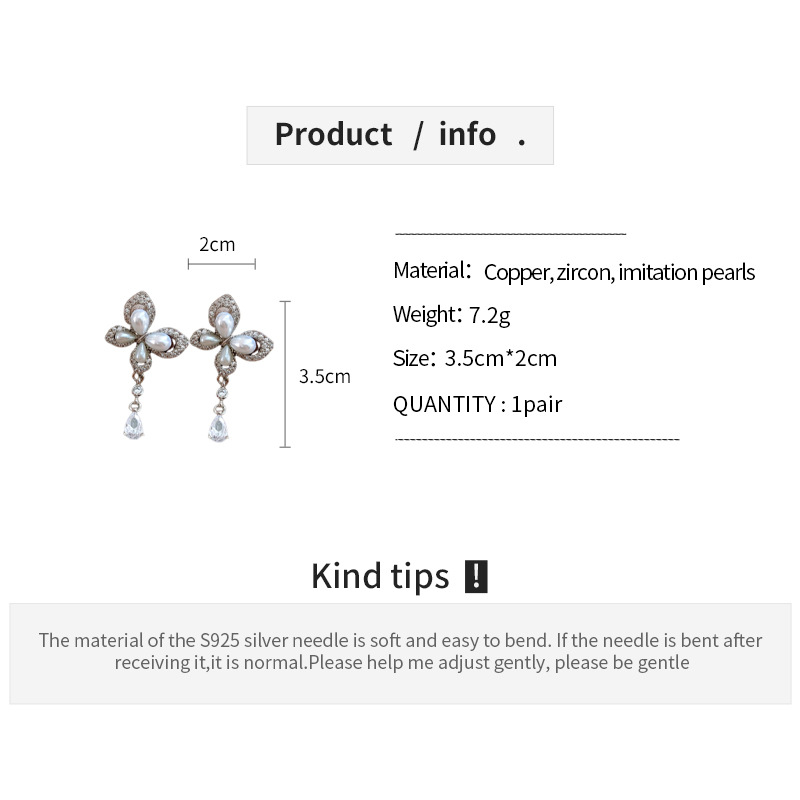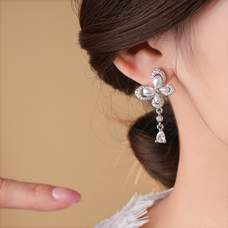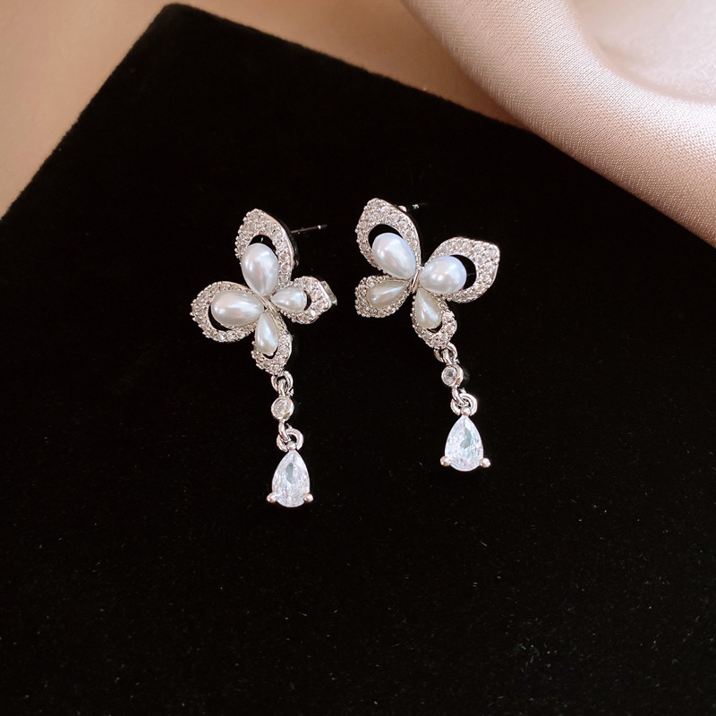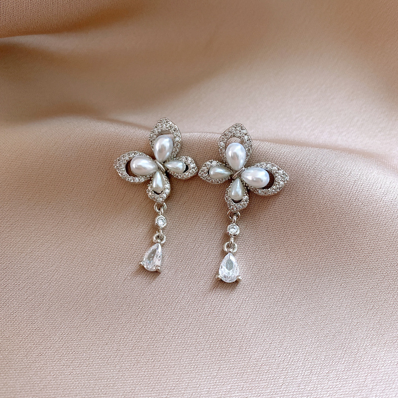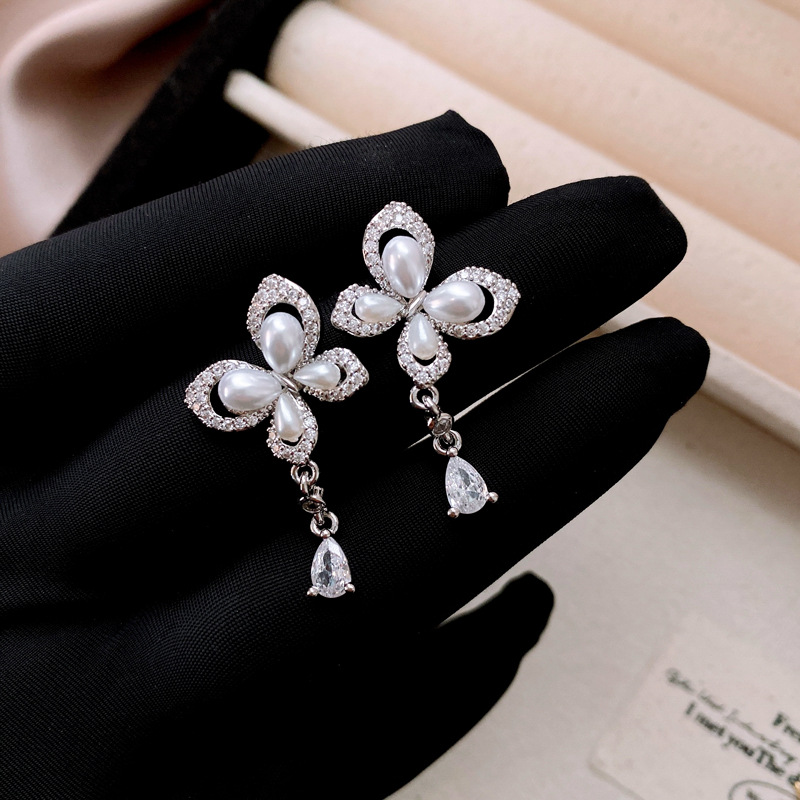 真金电镀银针锆石珍珠蝴蝶流苏耳环时尚耳钉轻奢高级感新款耳饰女