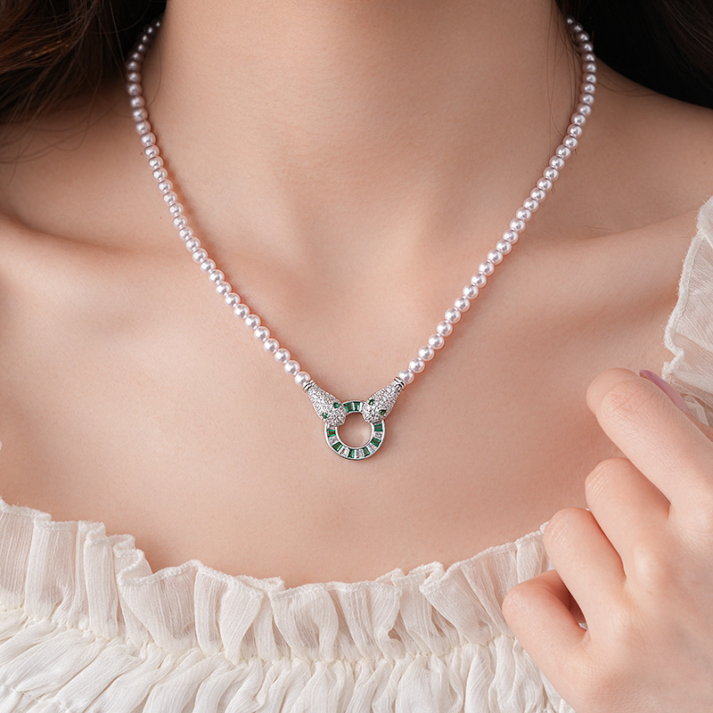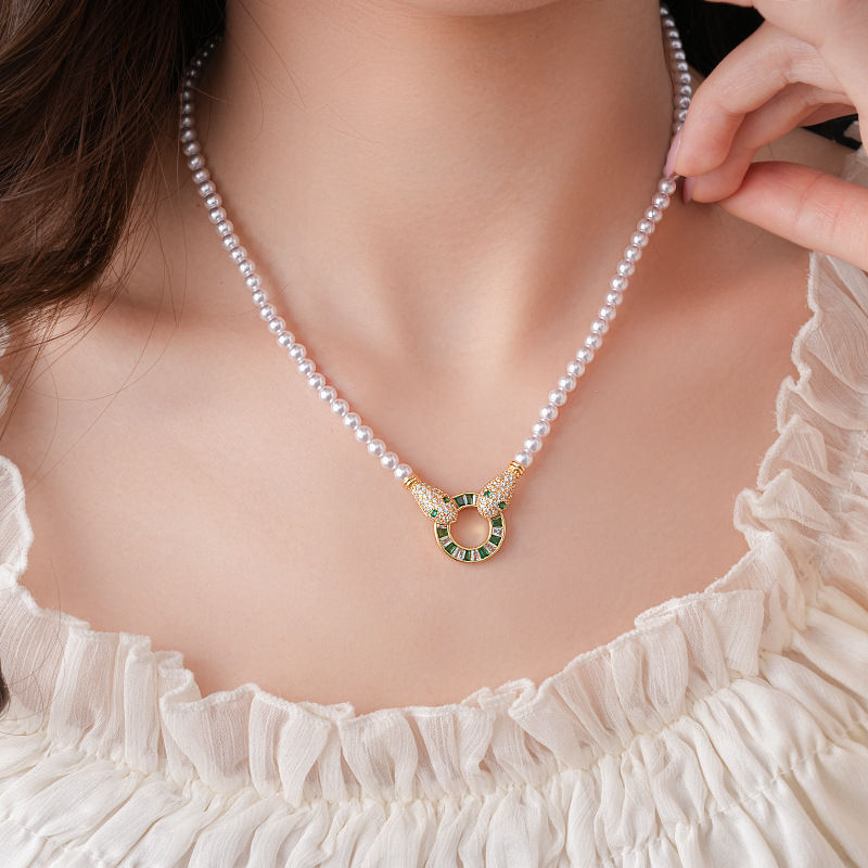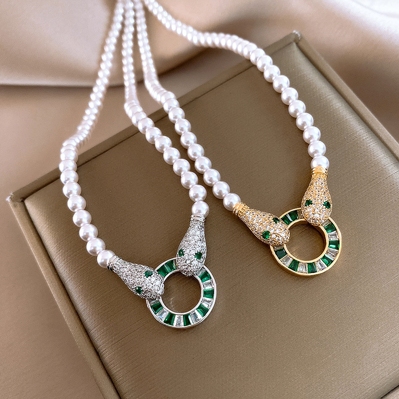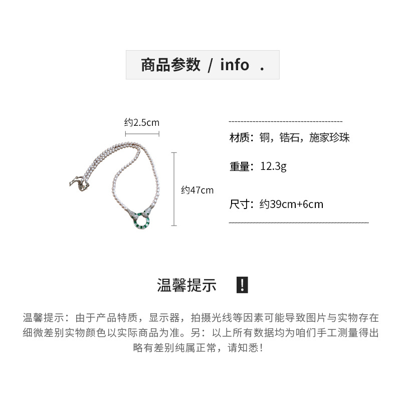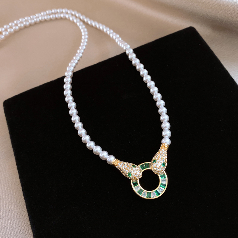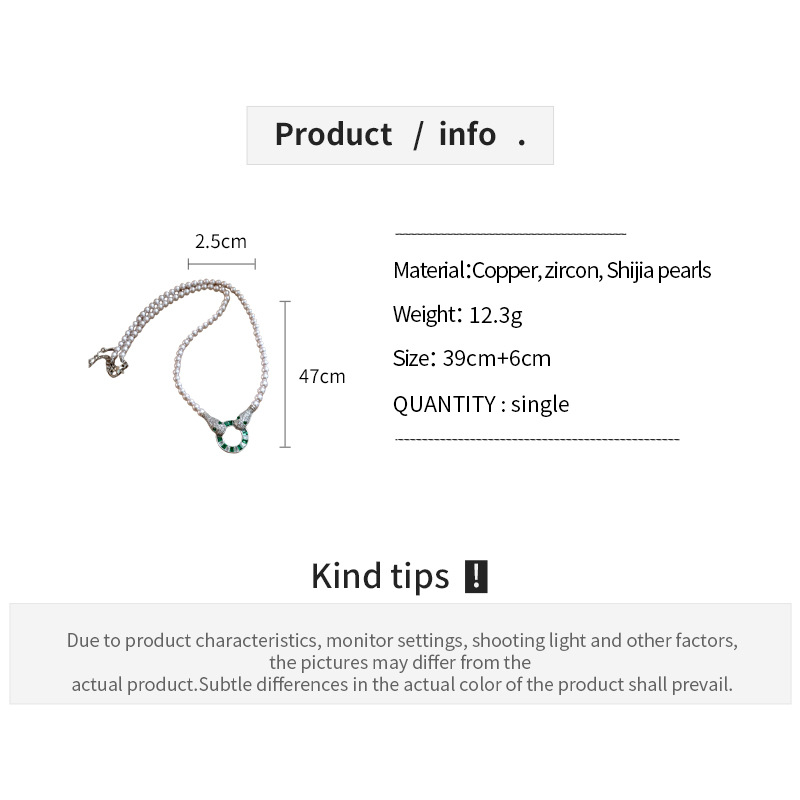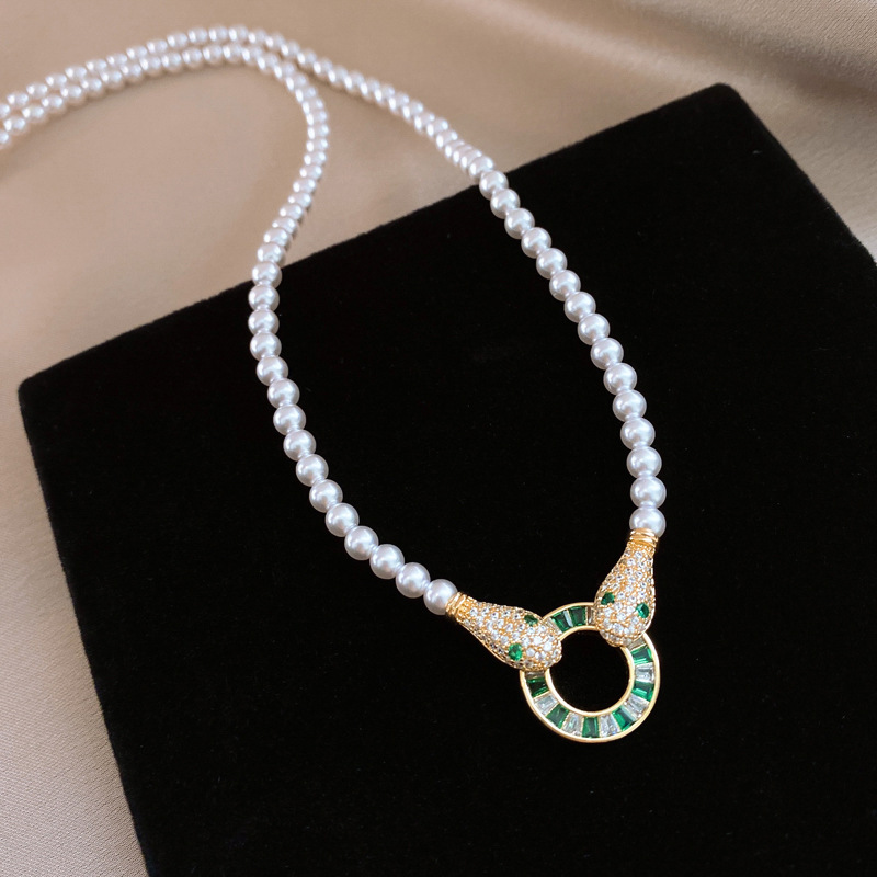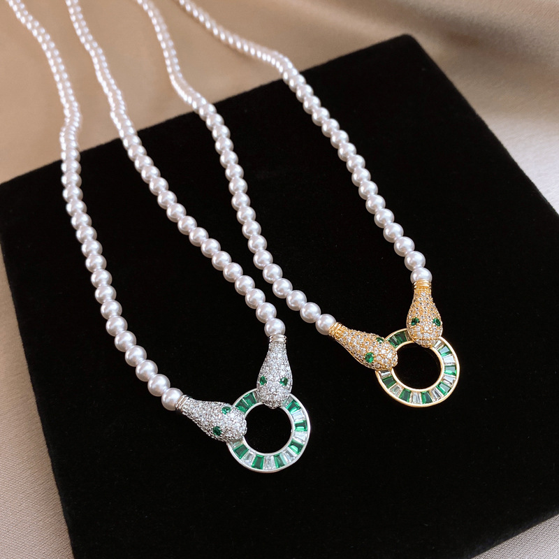 真金电镀锆石施家珍珠蛇形项链轻奢高级感百搭锁骨链新款项饰批发