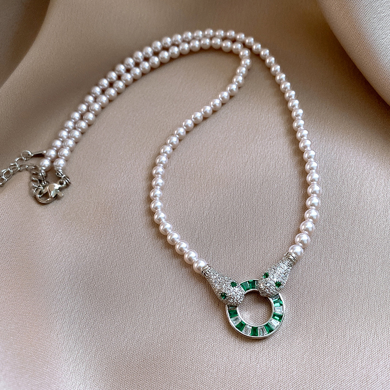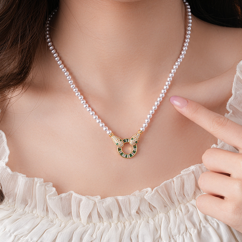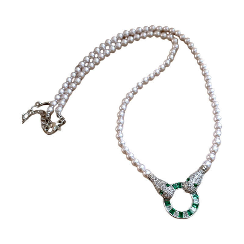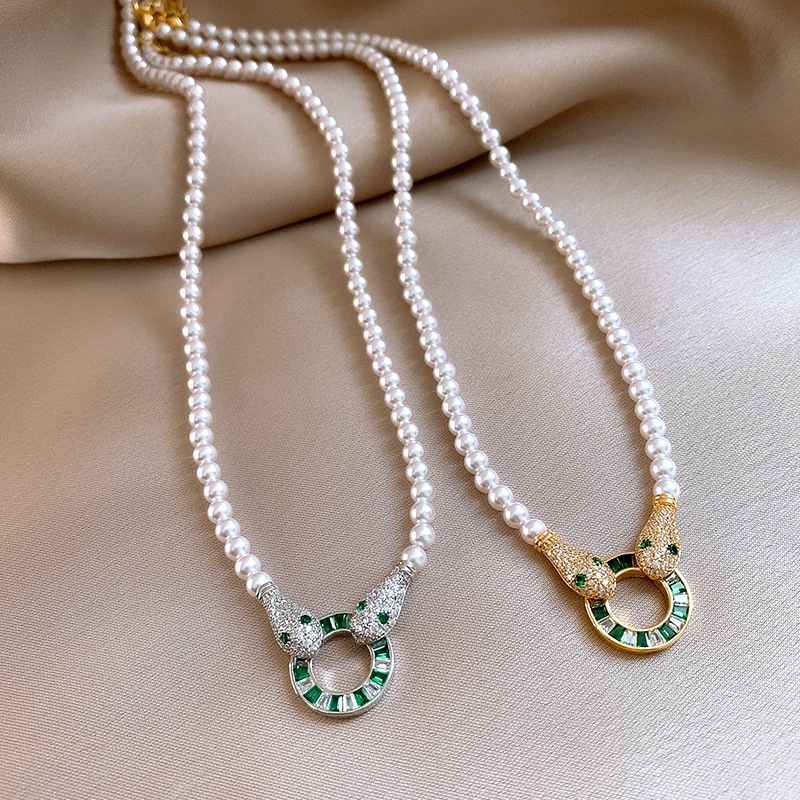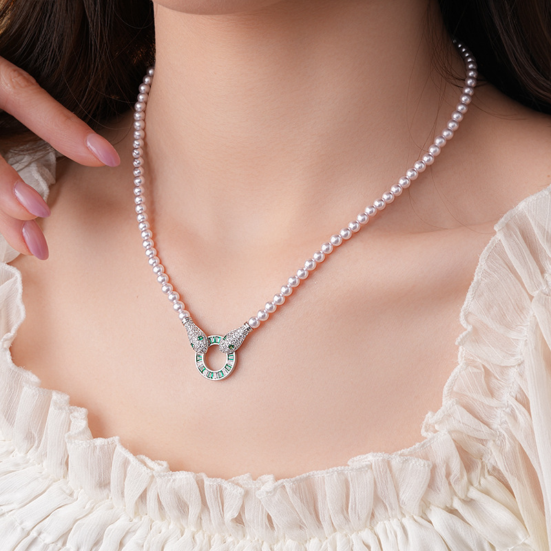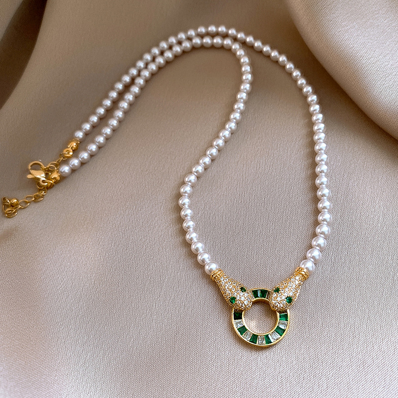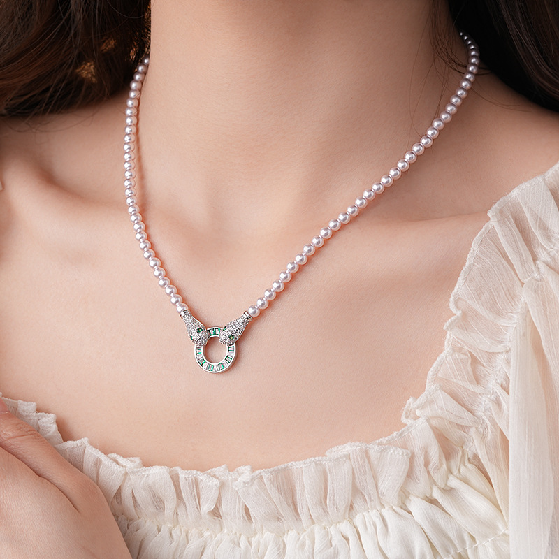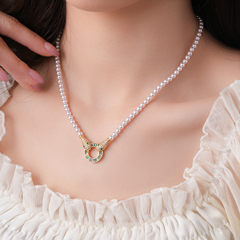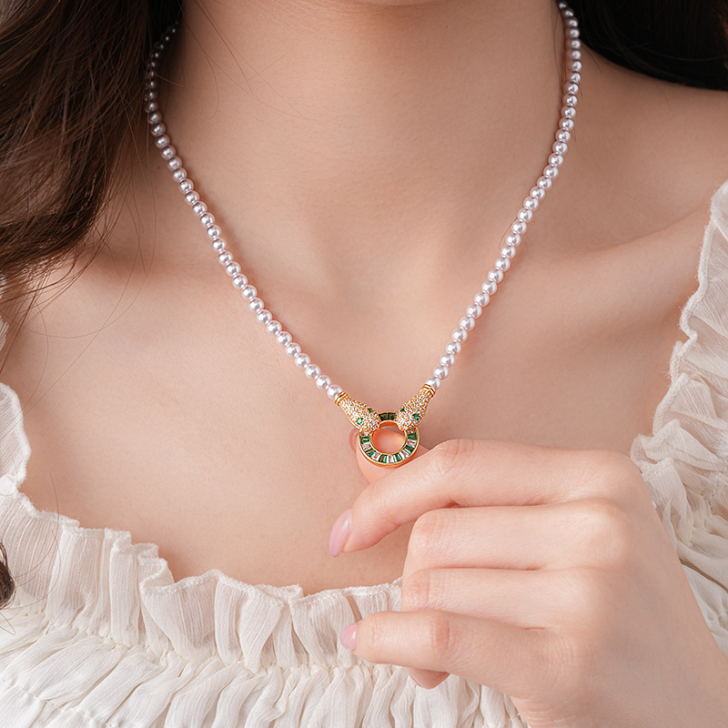 真金电镀锆石施家珍珠蛇形项链轻奢高级感百搭锁骨链新款项饰批发