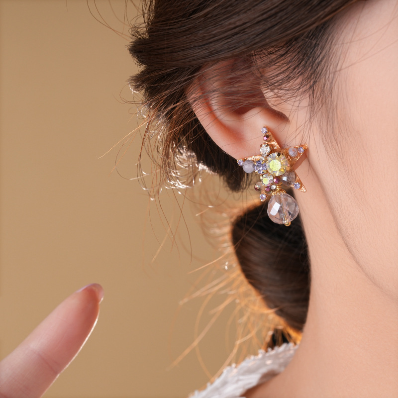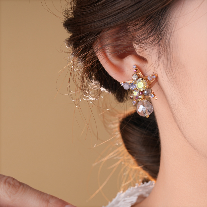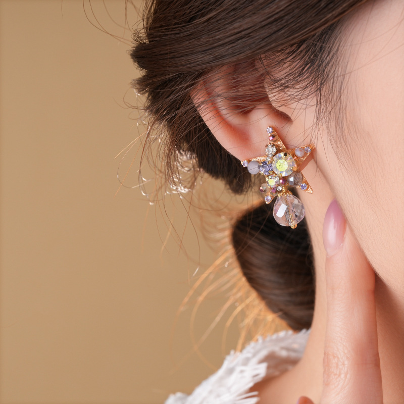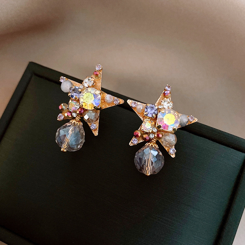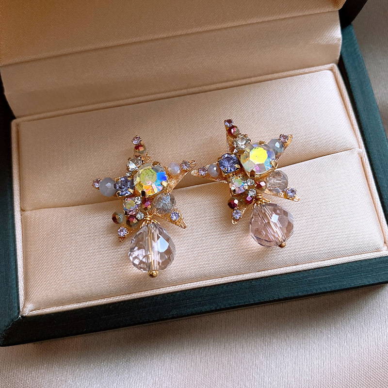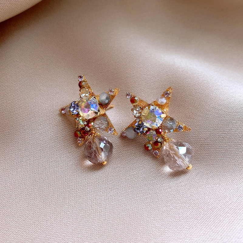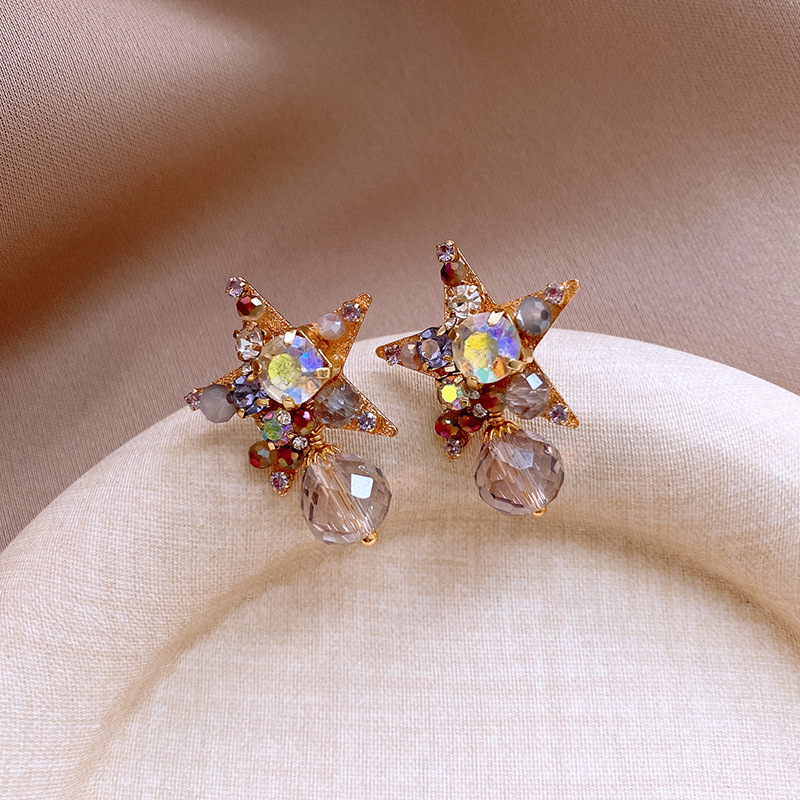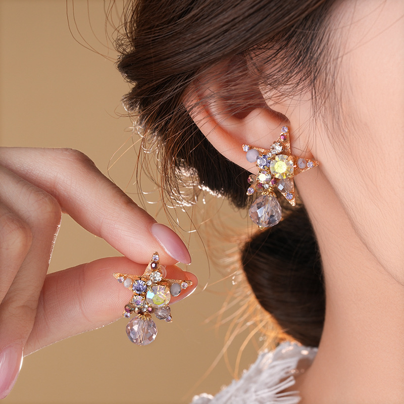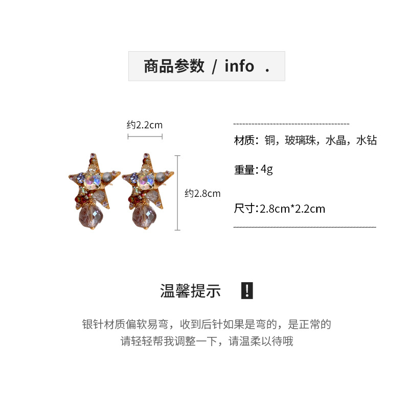 真金电镀银针镶钻水晶星星耳环精致时尚耳钉轻奢高级感新款耳饰女