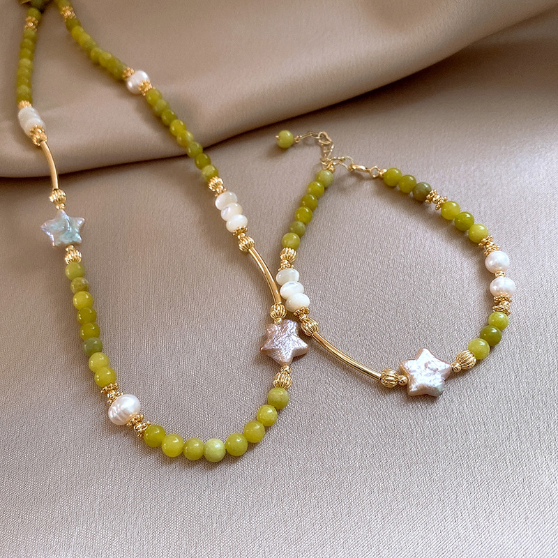 真金电镀天然石巴洛克珍珠星星项链时尚简约手链新款百搭首饰批发