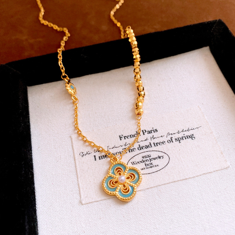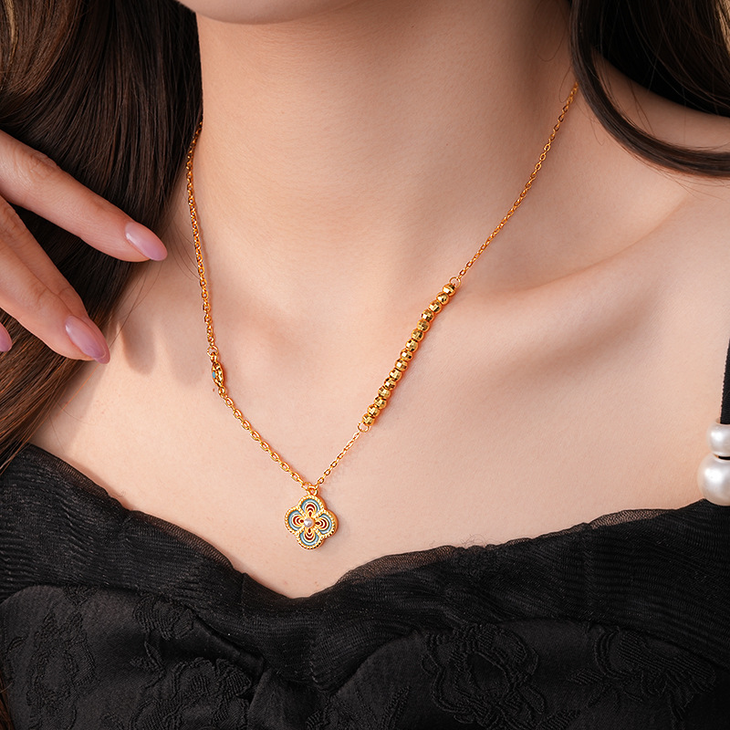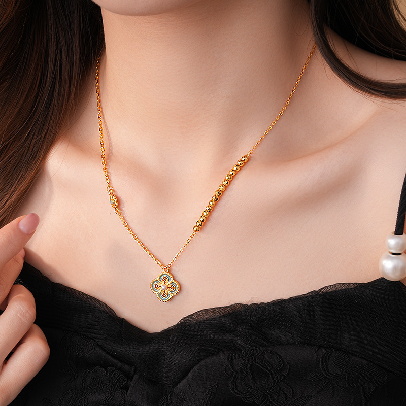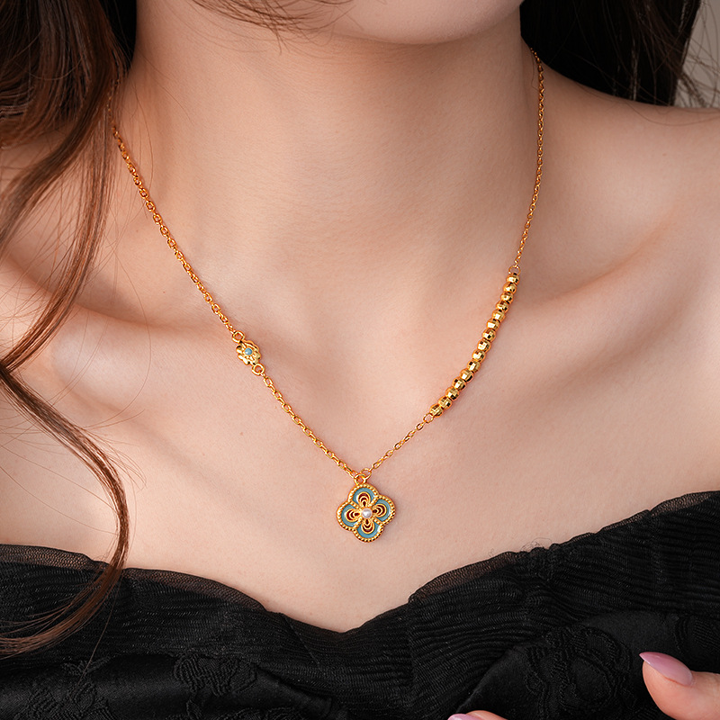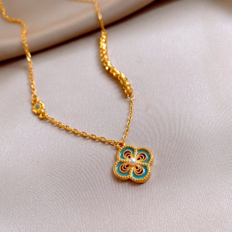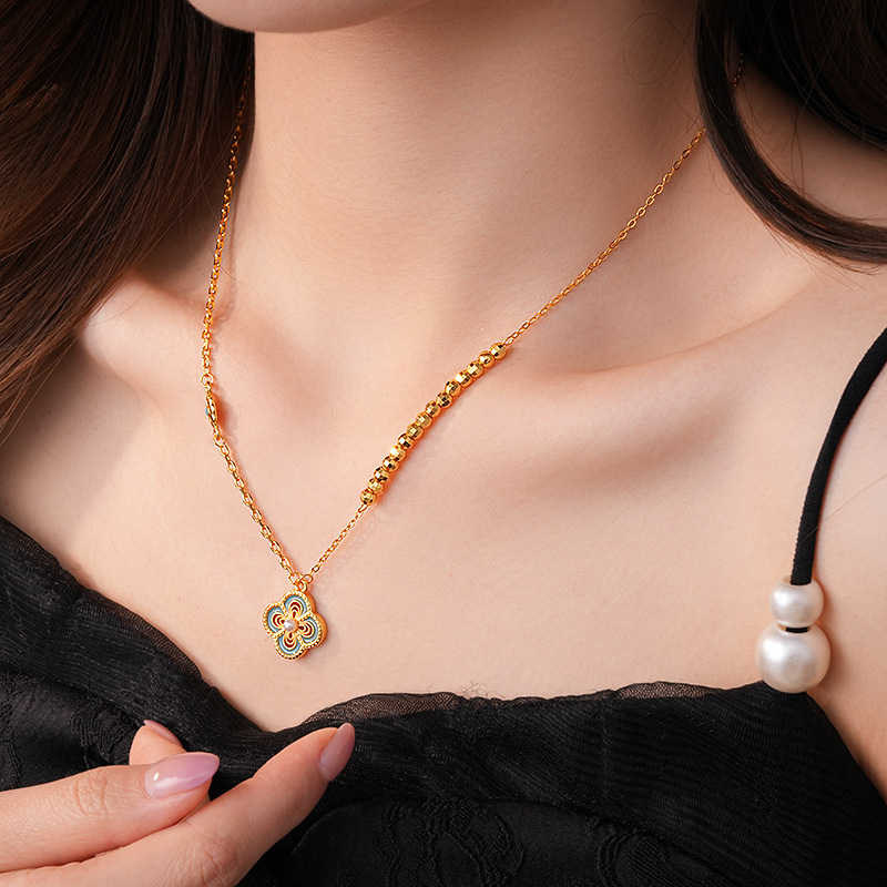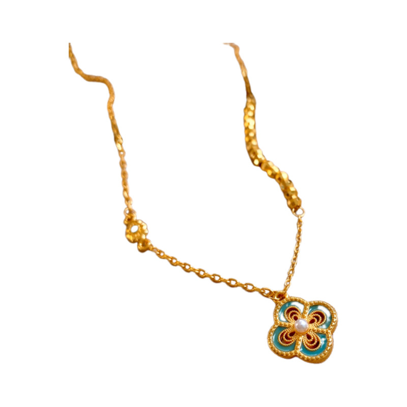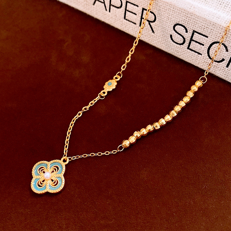 24k真金电镀滴油镂空花朵项链简约高级感锁骨链新中式轻奢项饰女