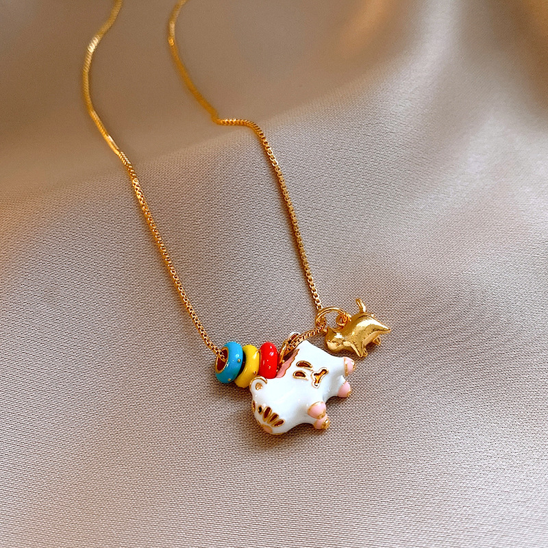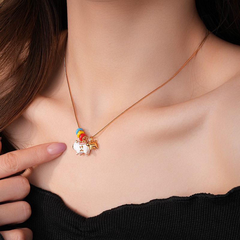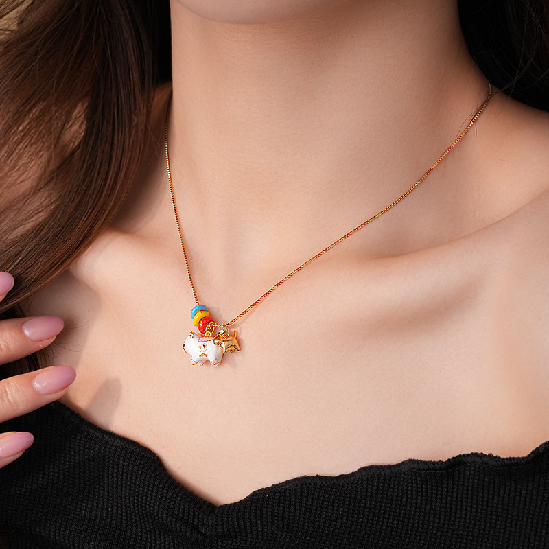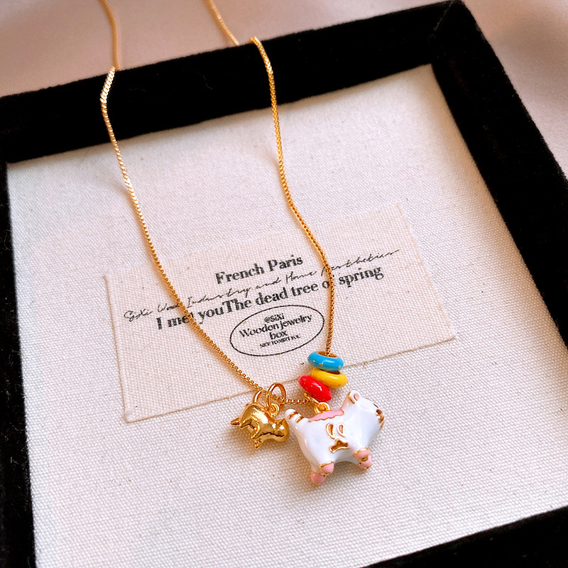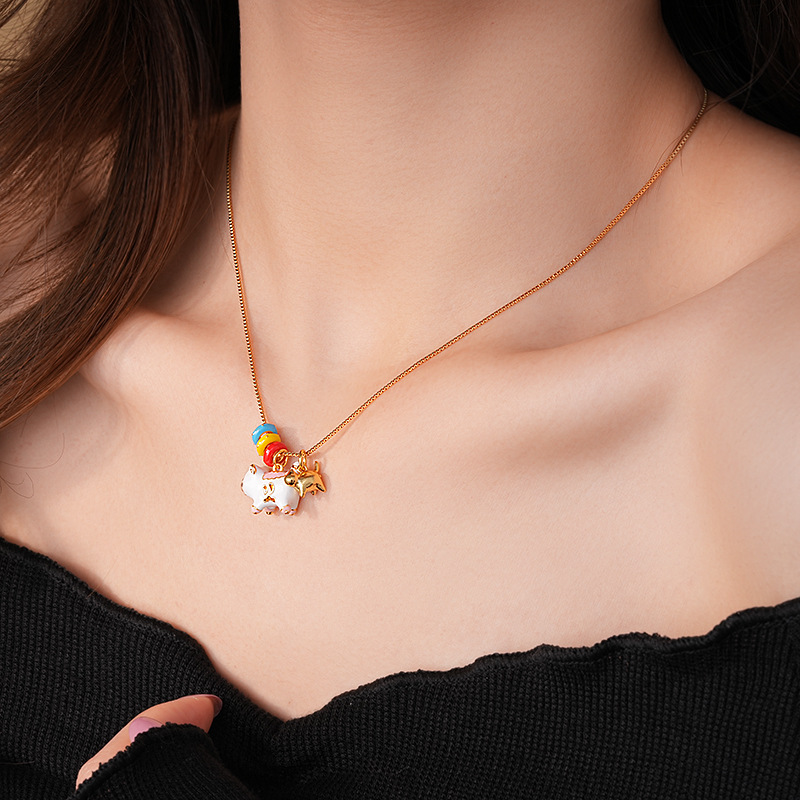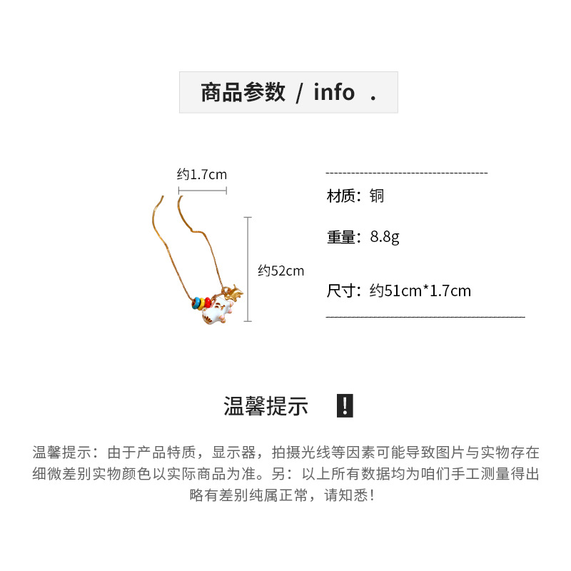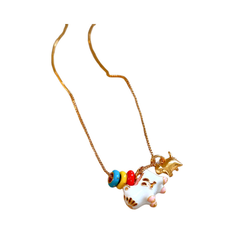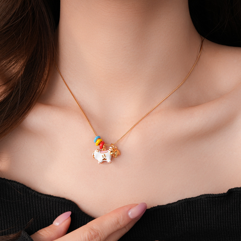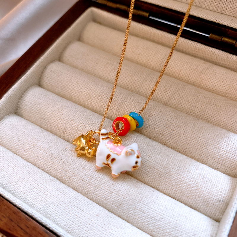 18k真金电镀彩色滴油老虎吊坠项链高级感锁骨链新中式复古项饰女