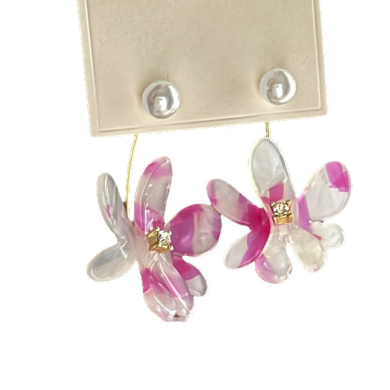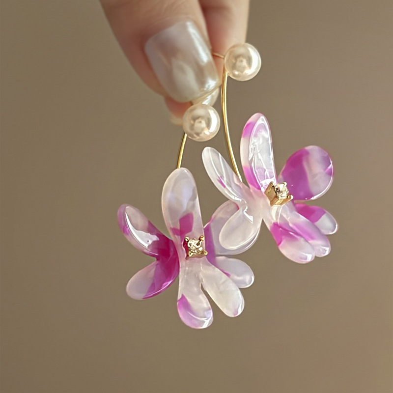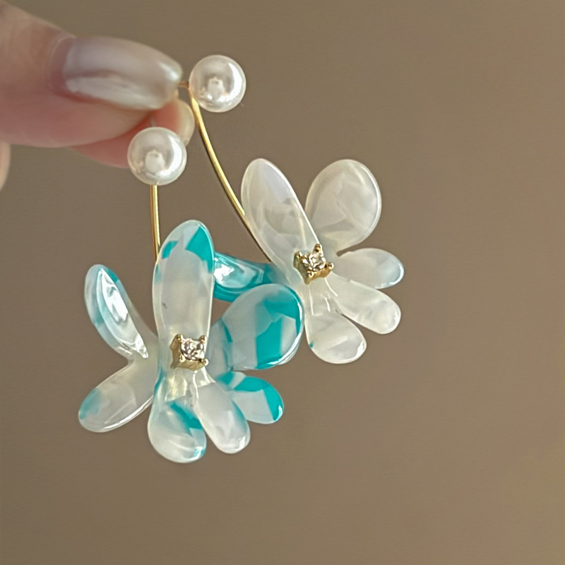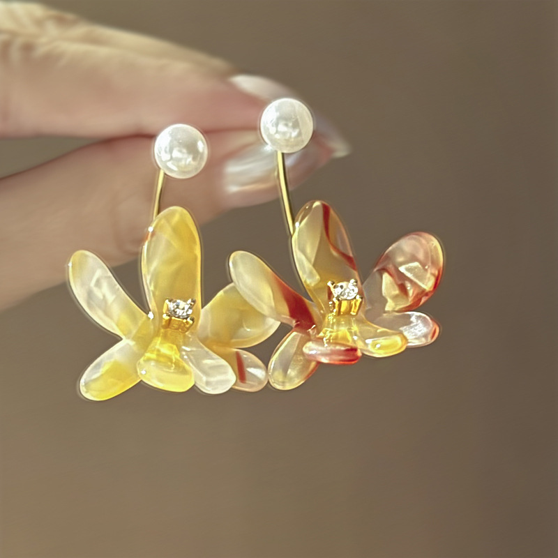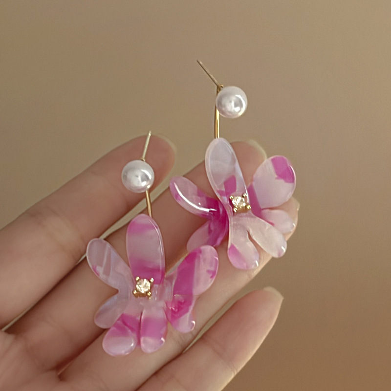 银针小清新醋酸镶钻花朵珍珠耳环欧美简约时尚耳钉轻奢高级感耳饰