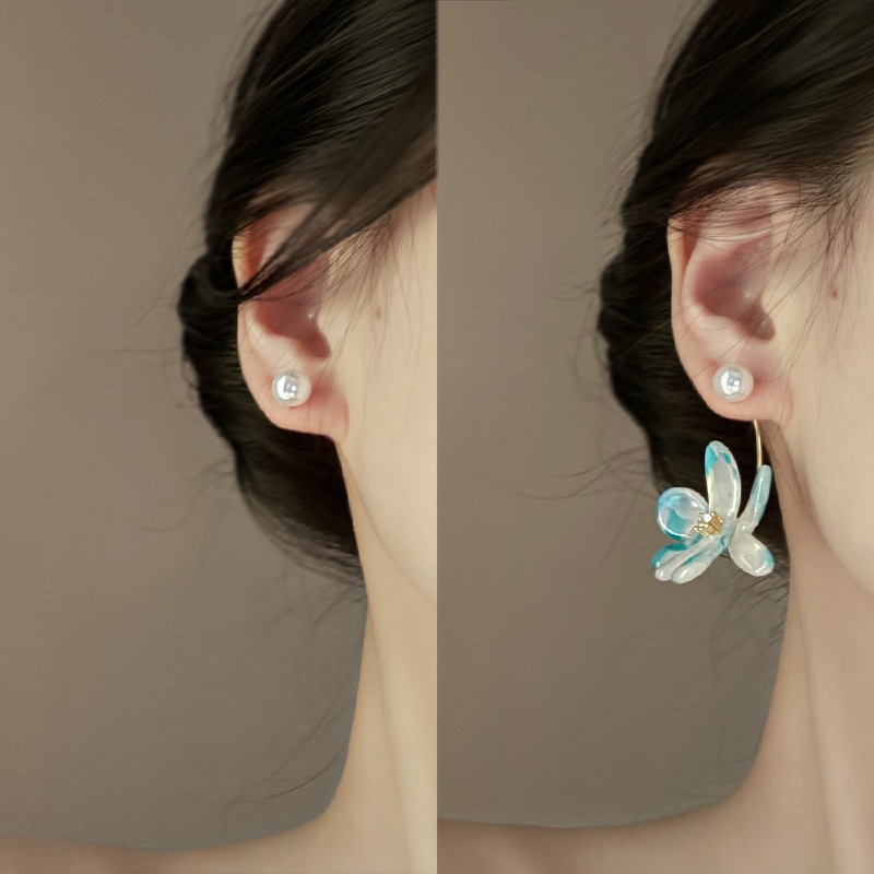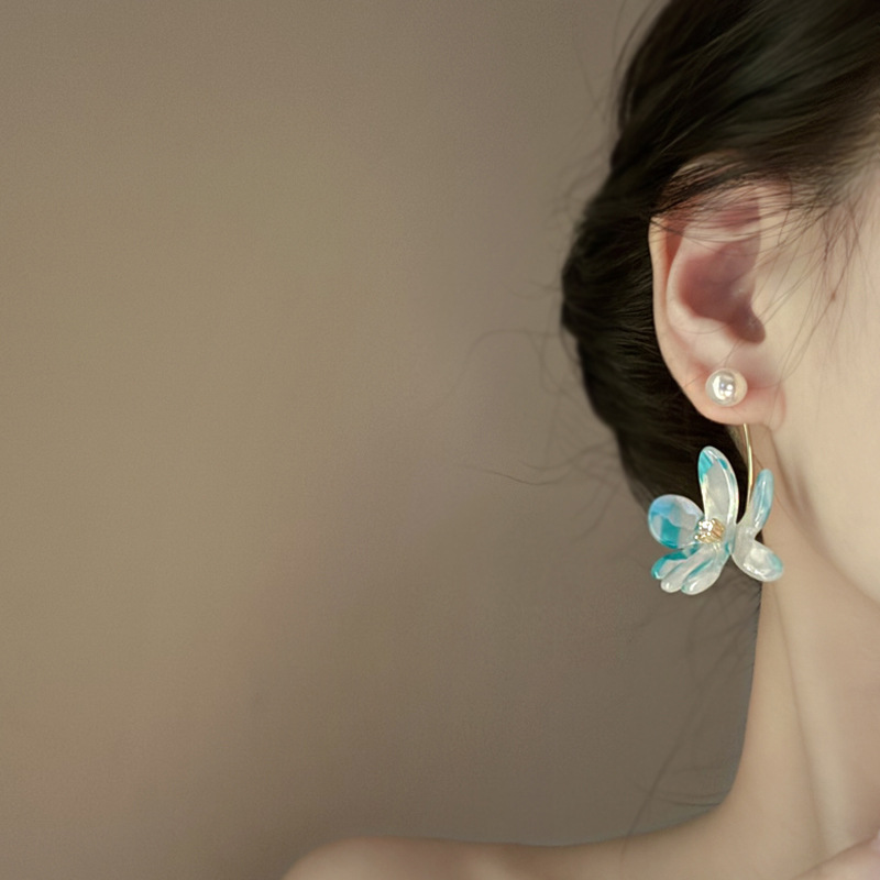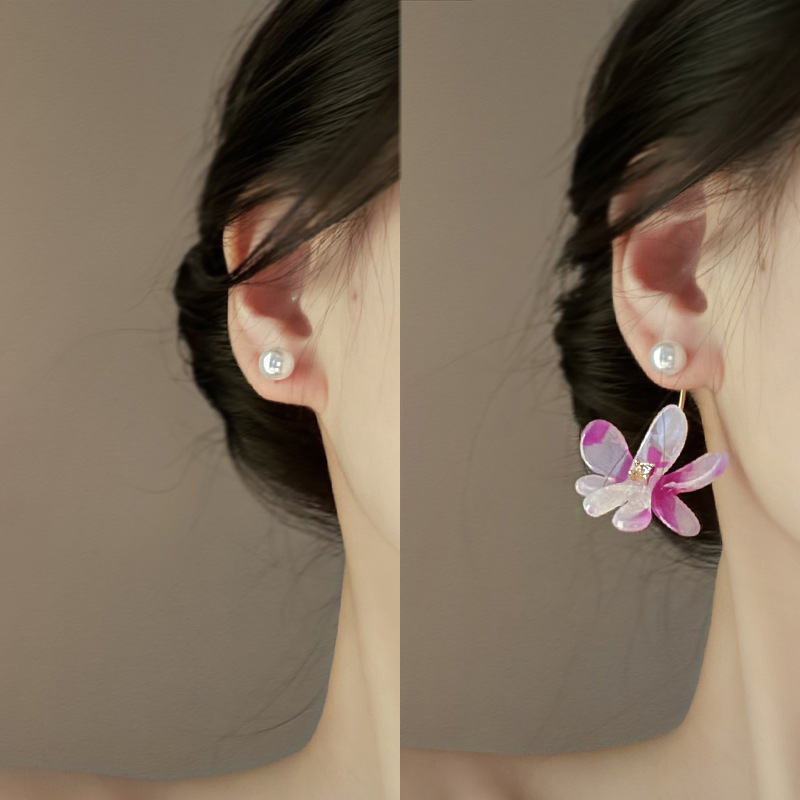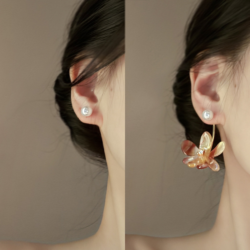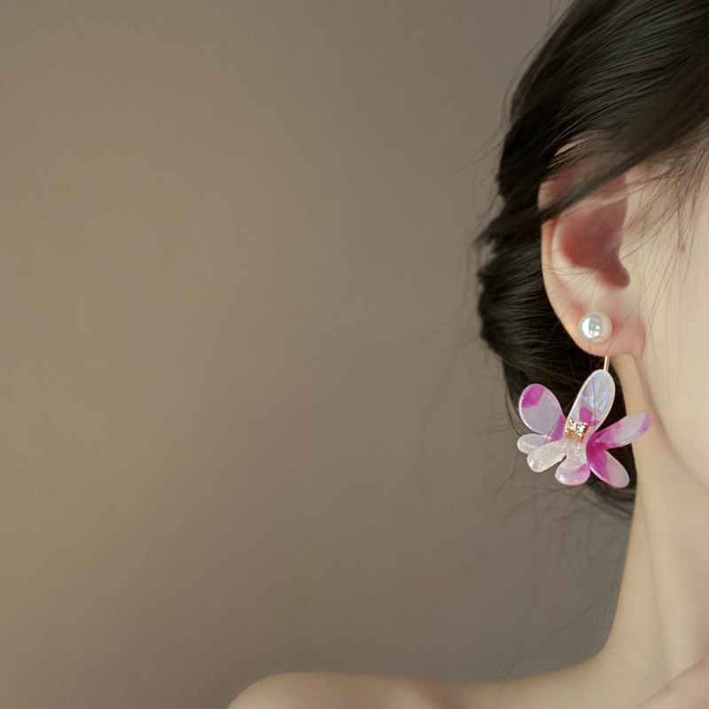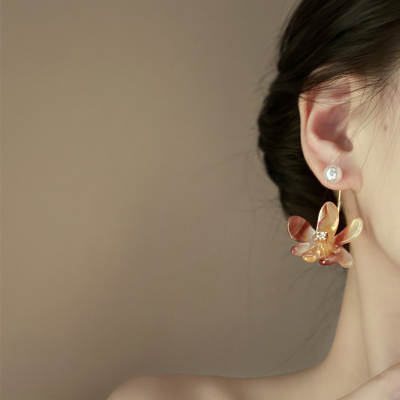 银针小清新醋酸镶钻花朵珍珠耳环欧美简约时尚耳钉轻奢高级感耳饰