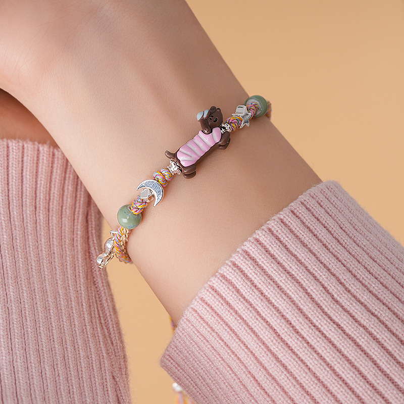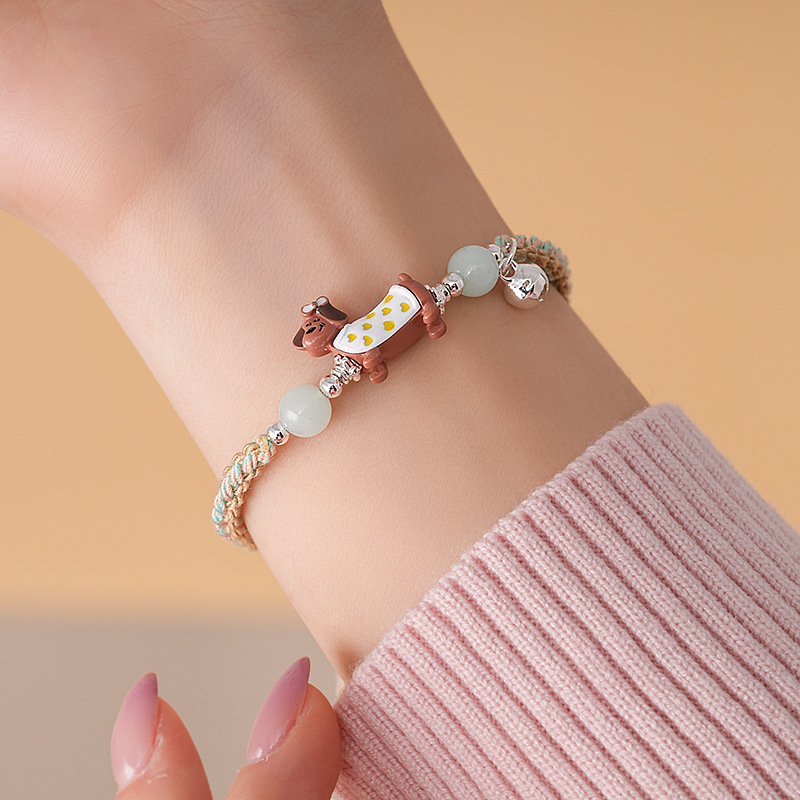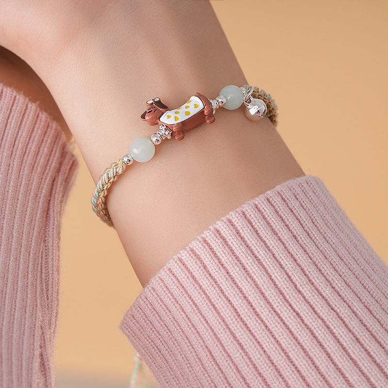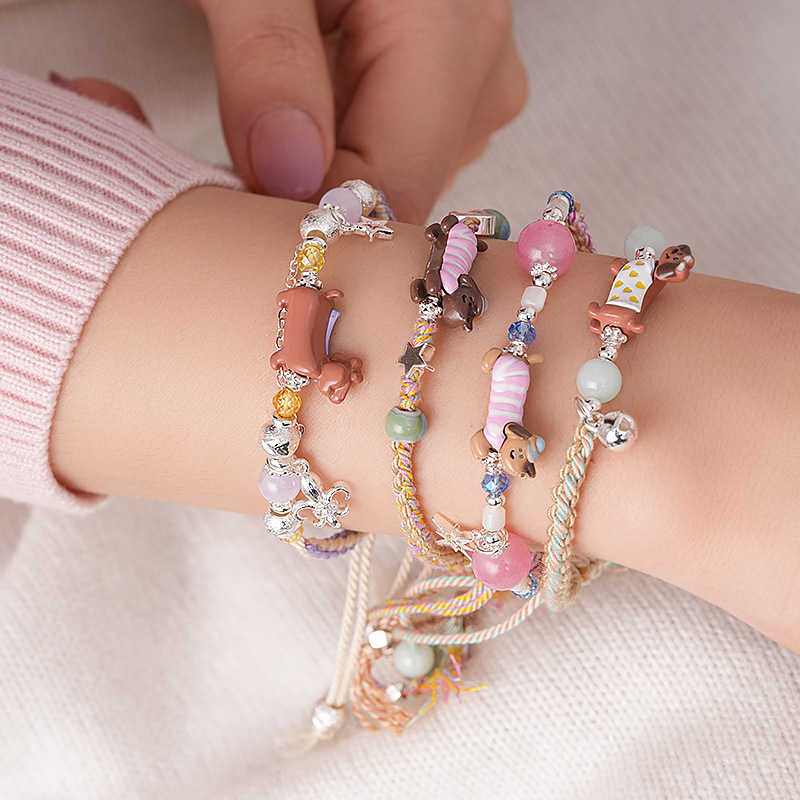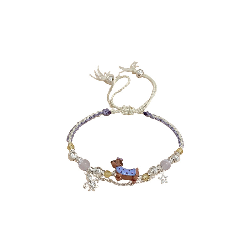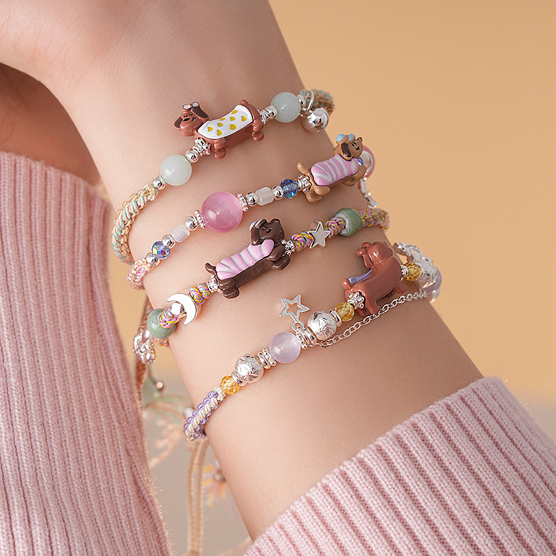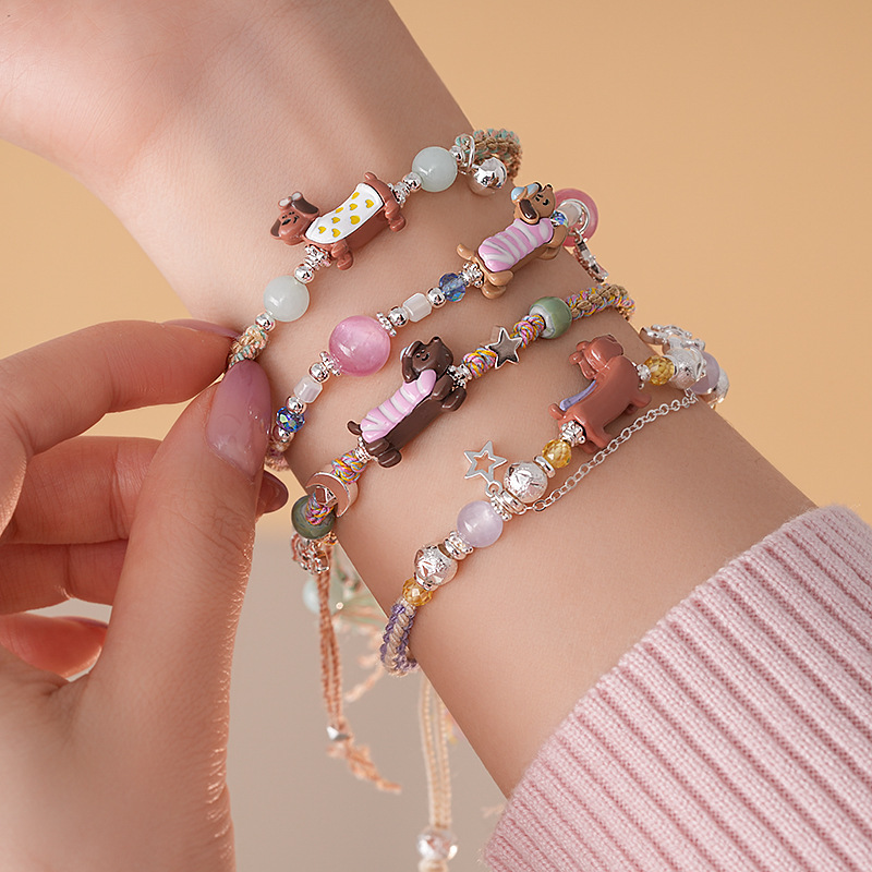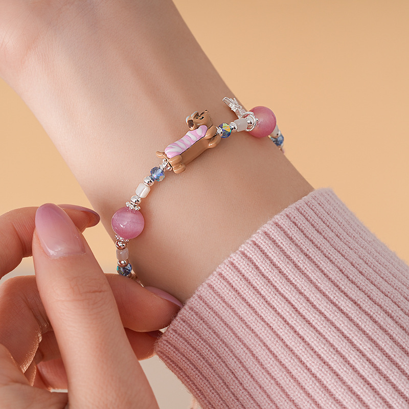 手工编织天然石碎银小狗手链轻奢高级感精致可爱手环时尚手饰批发