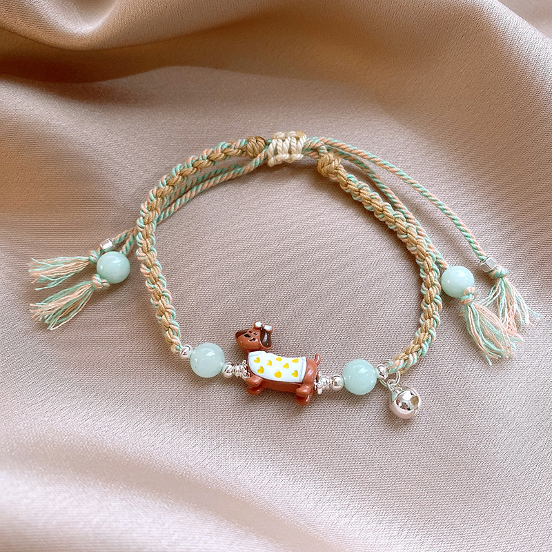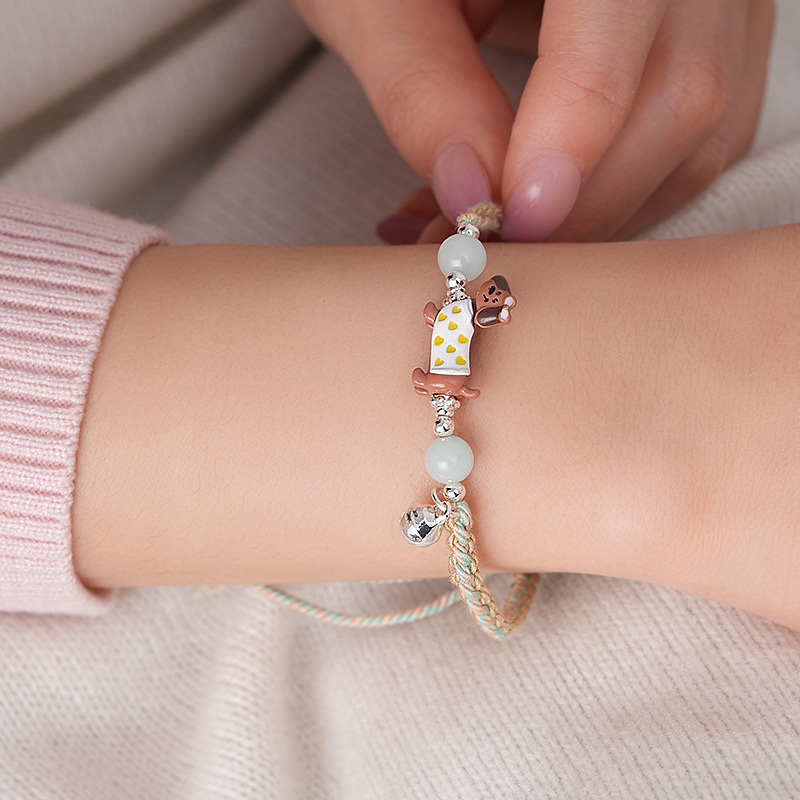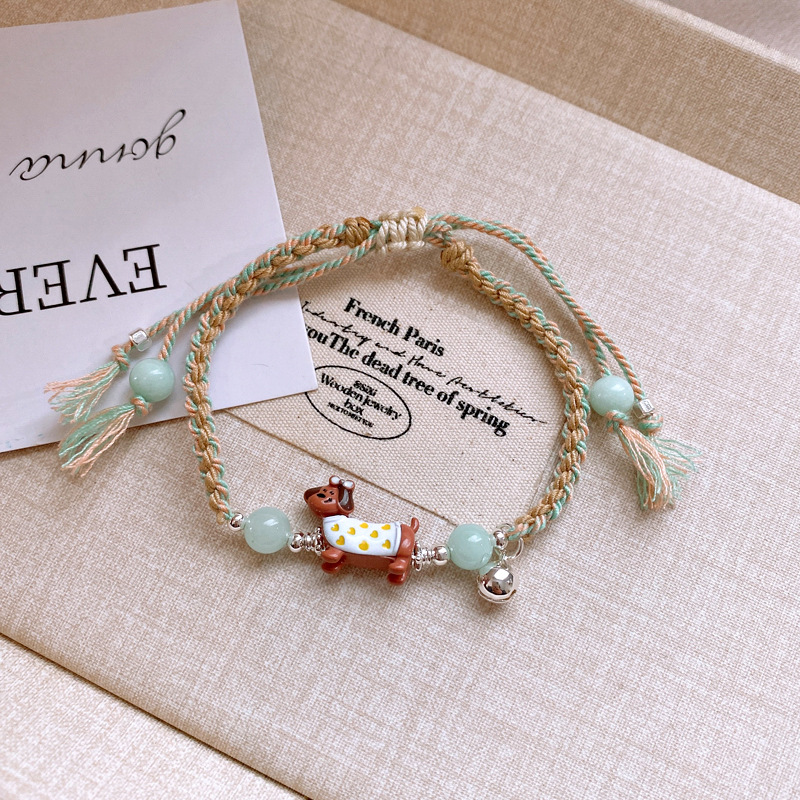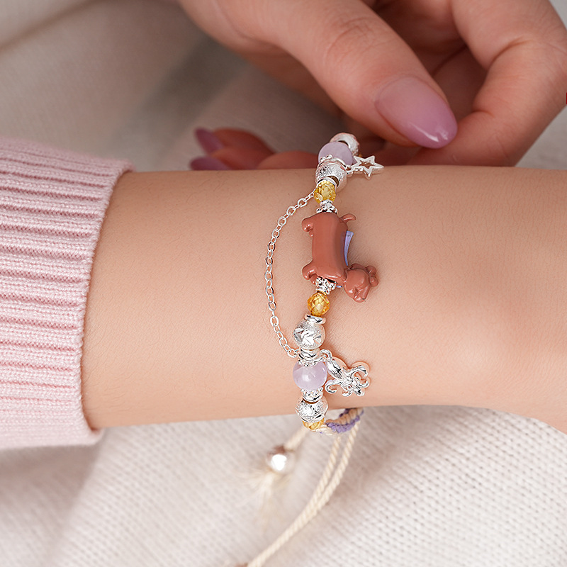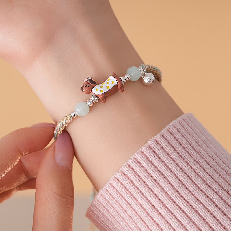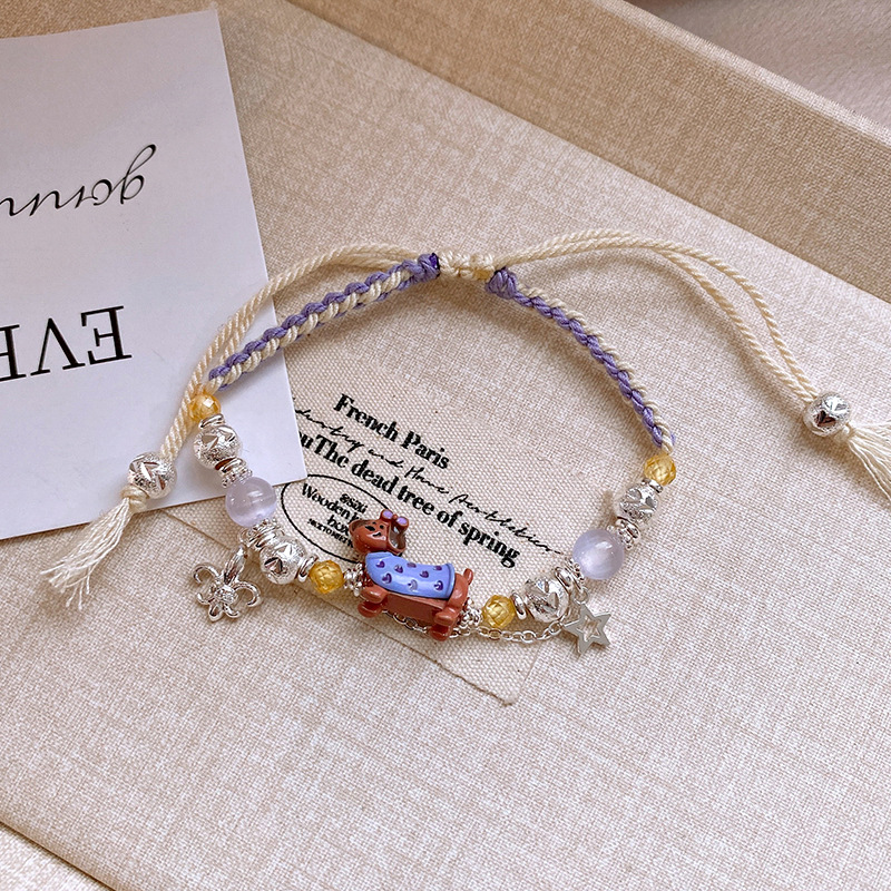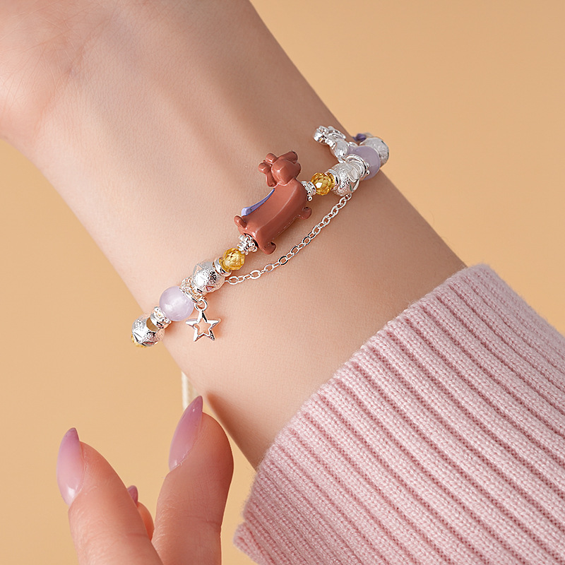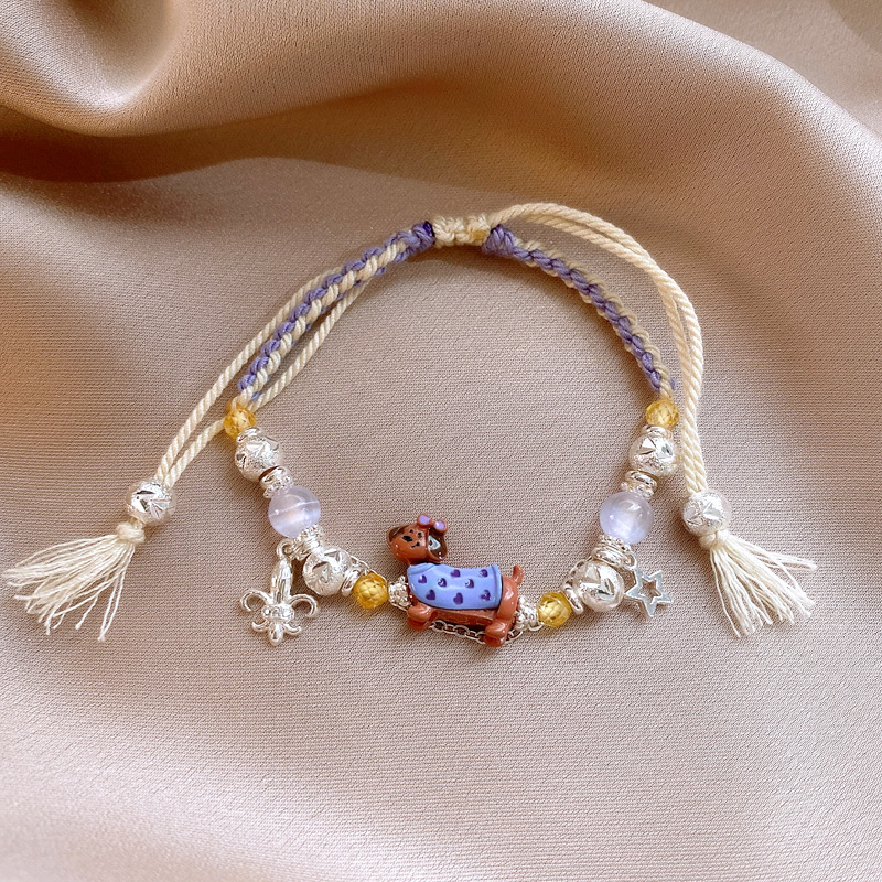 手工编织天然石碎银小狗手链轻奢高级感精致可爱手环时尚手饰批发