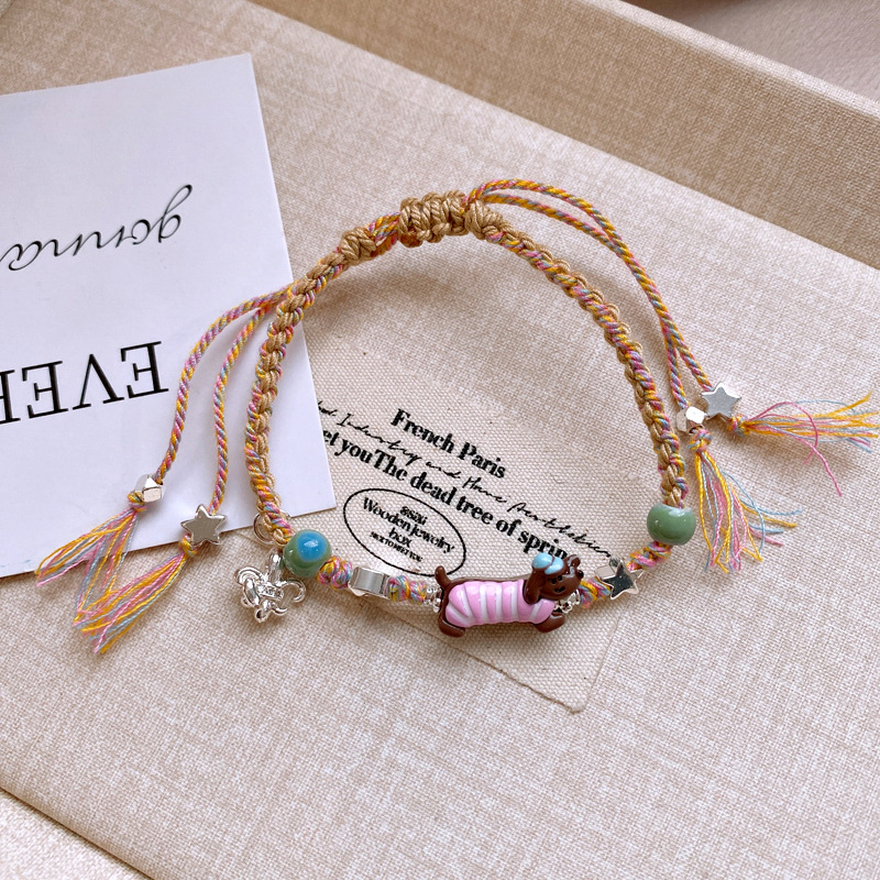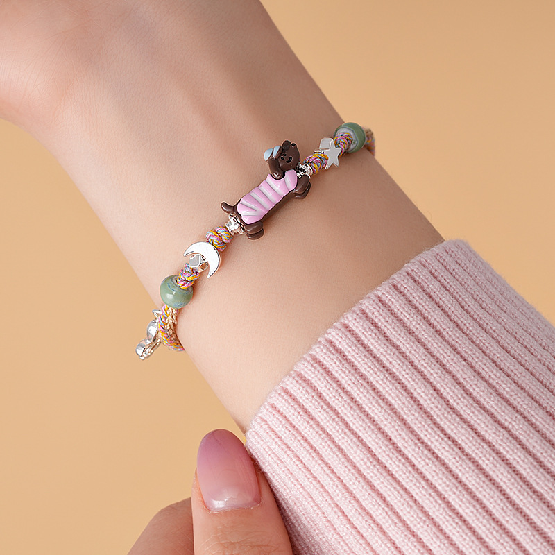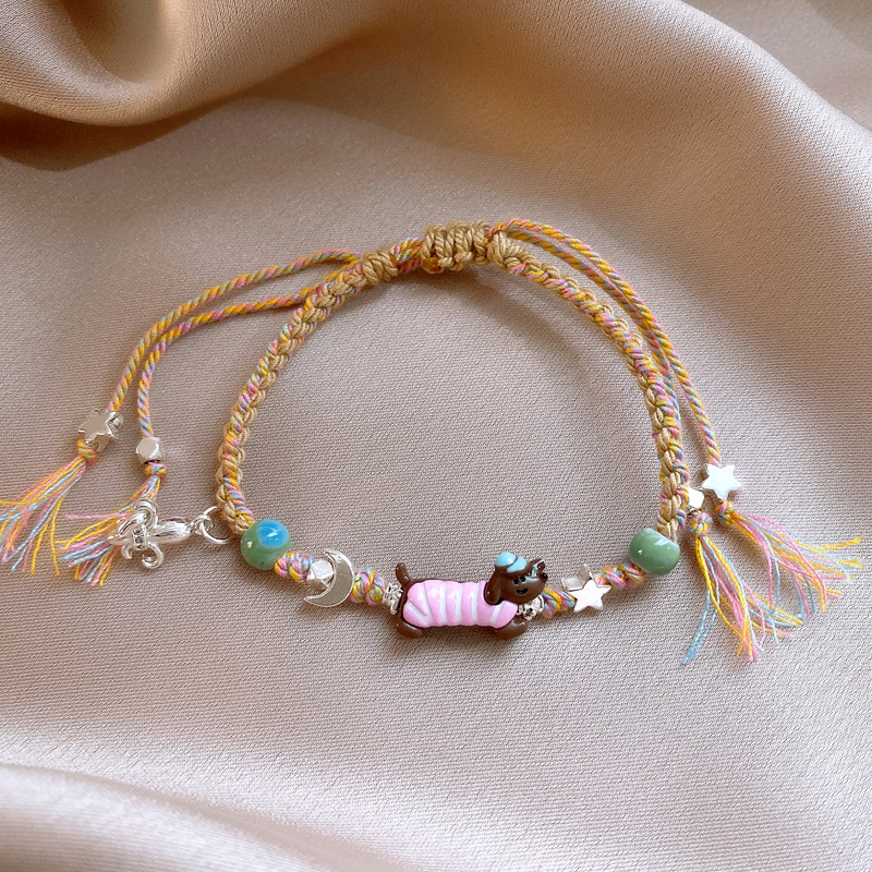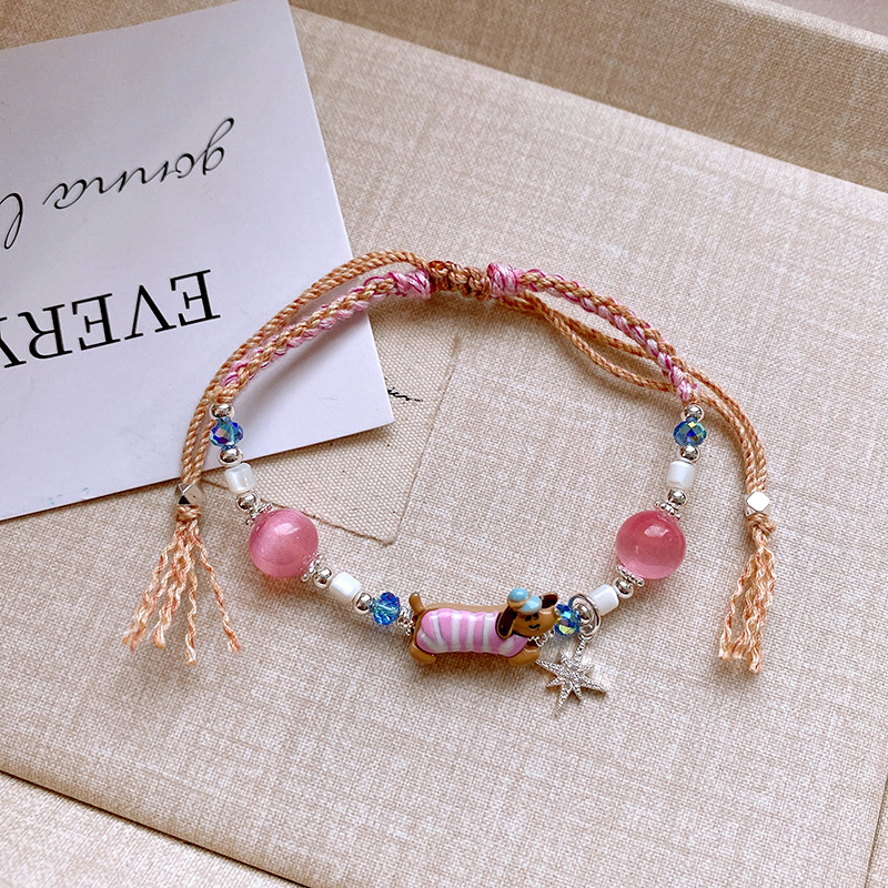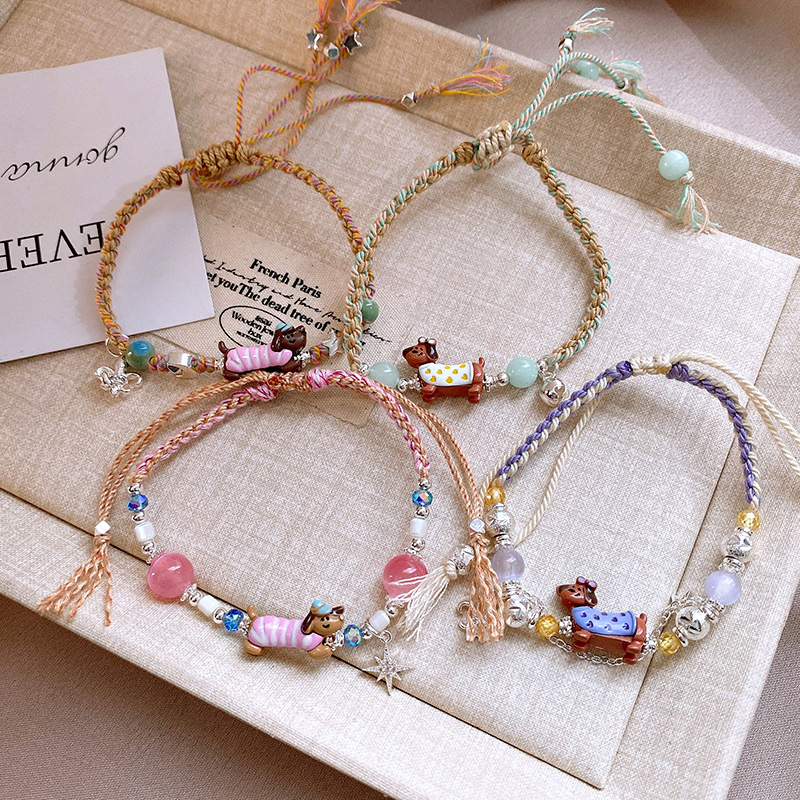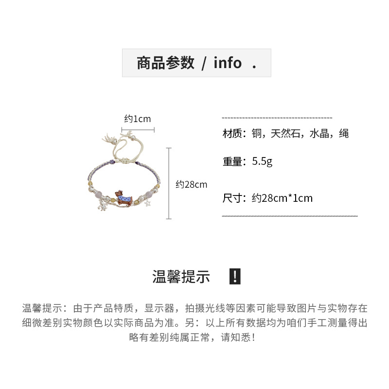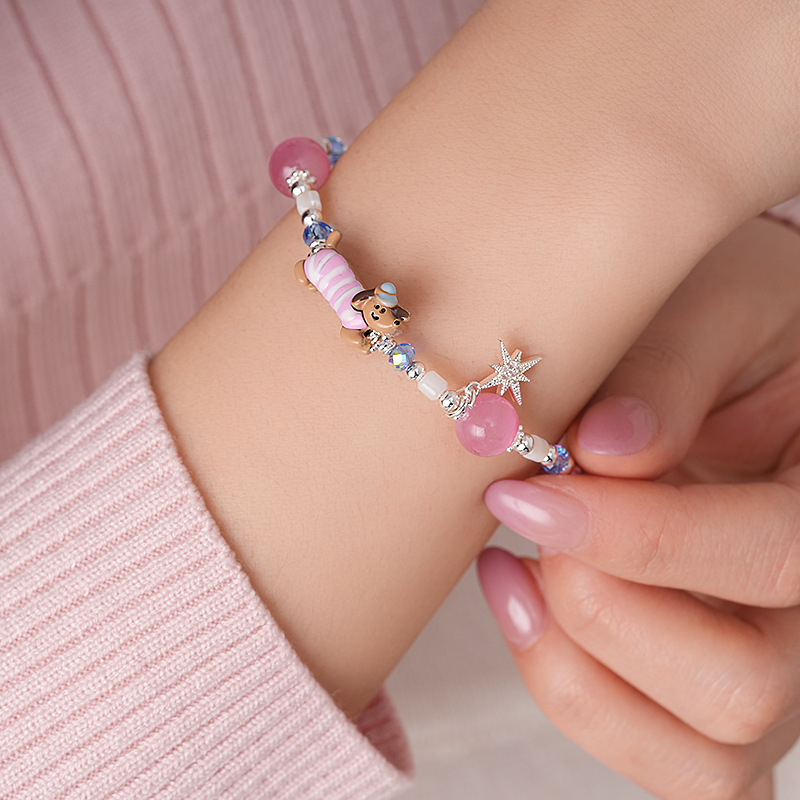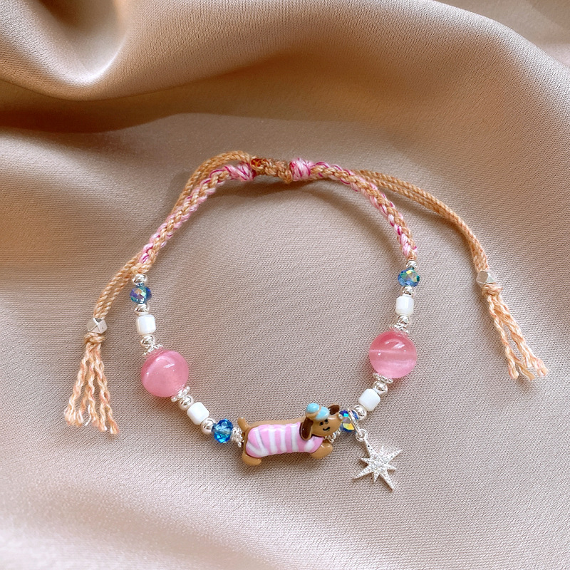 手工编织天然石碎银小狗手链轻奢高级感精致可爱手环时尚手饰批发