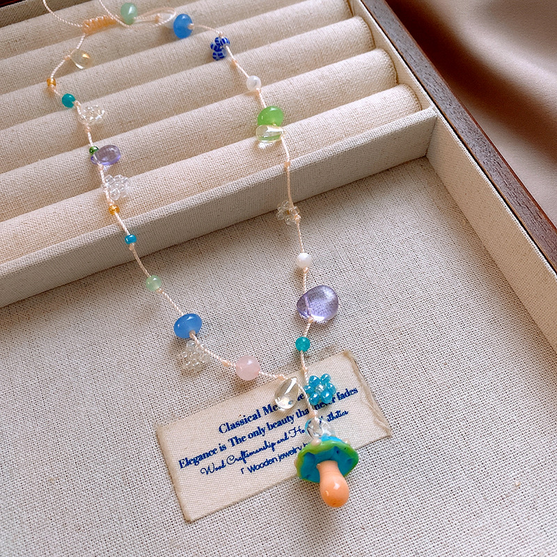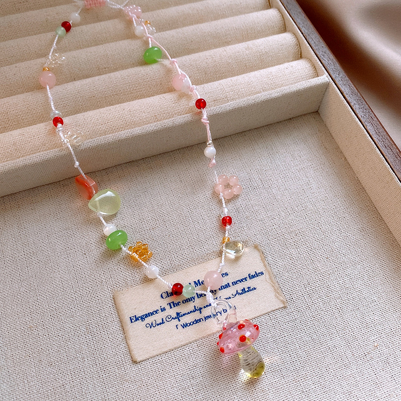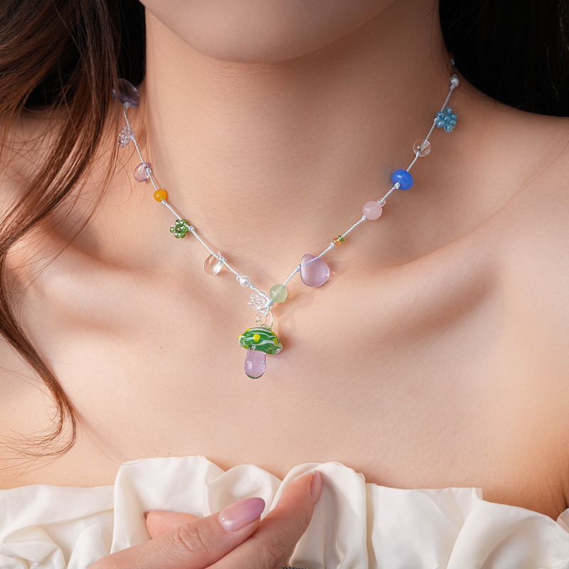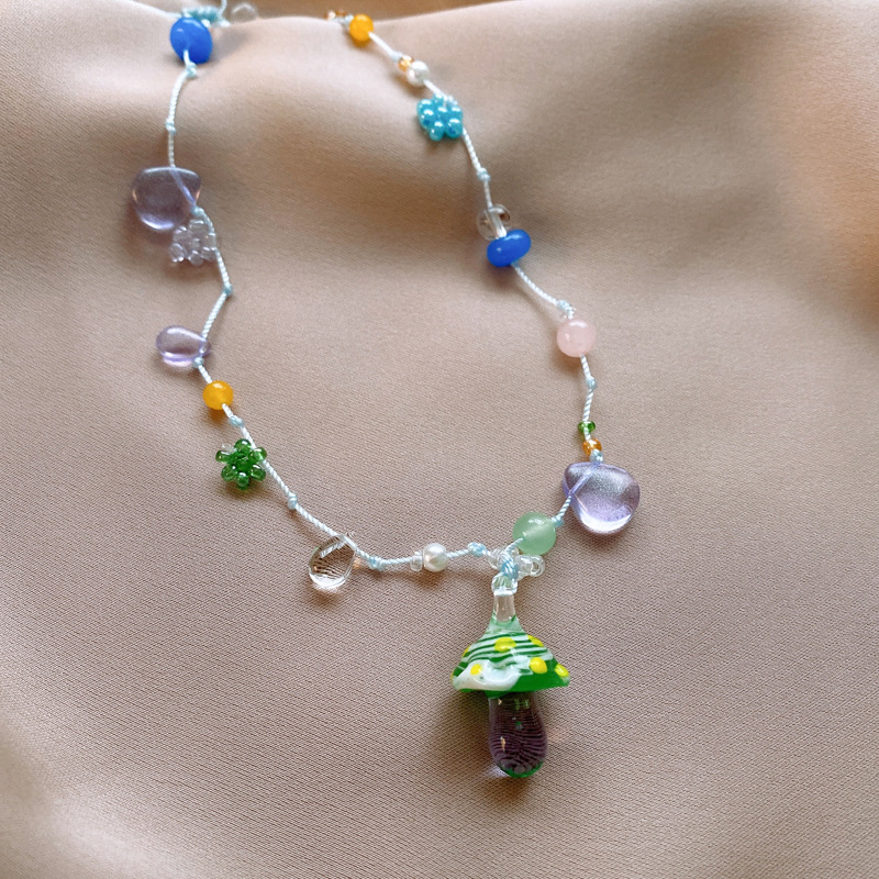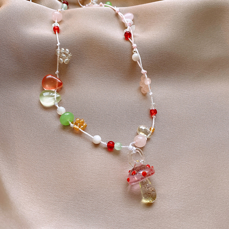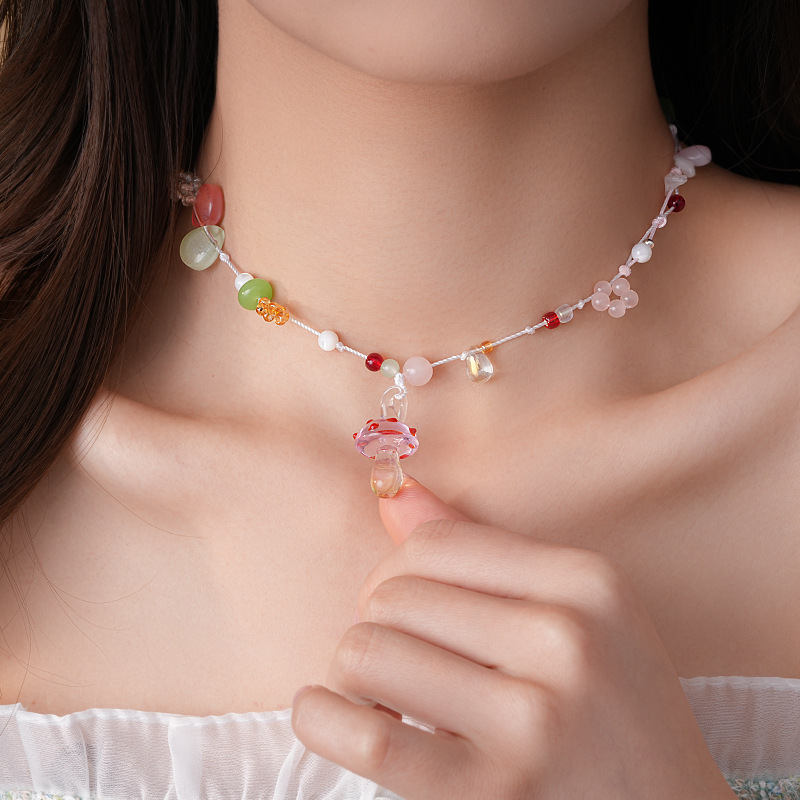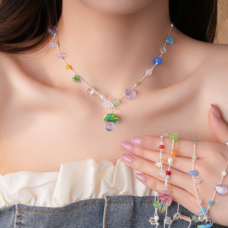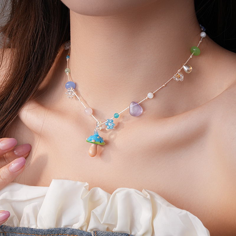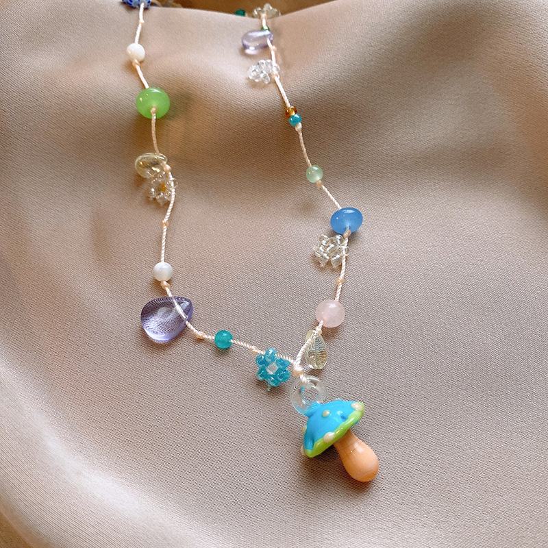 手工编织水滴花朵珍珠蘑菇吊坠项链小众锁骨链轻奢高级感项饰批发