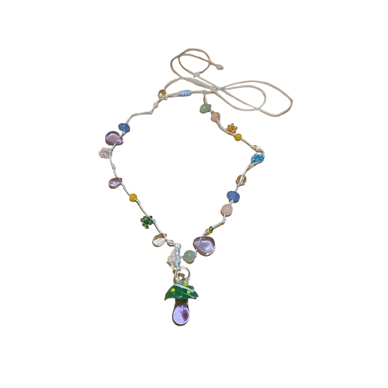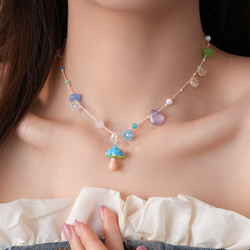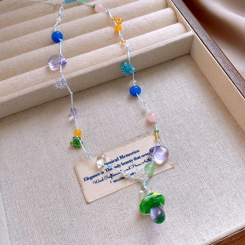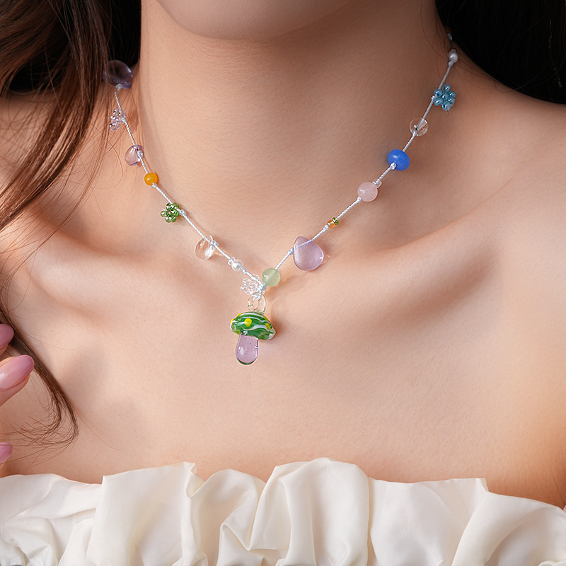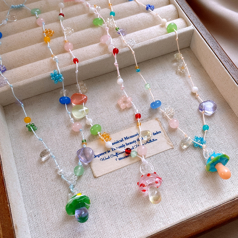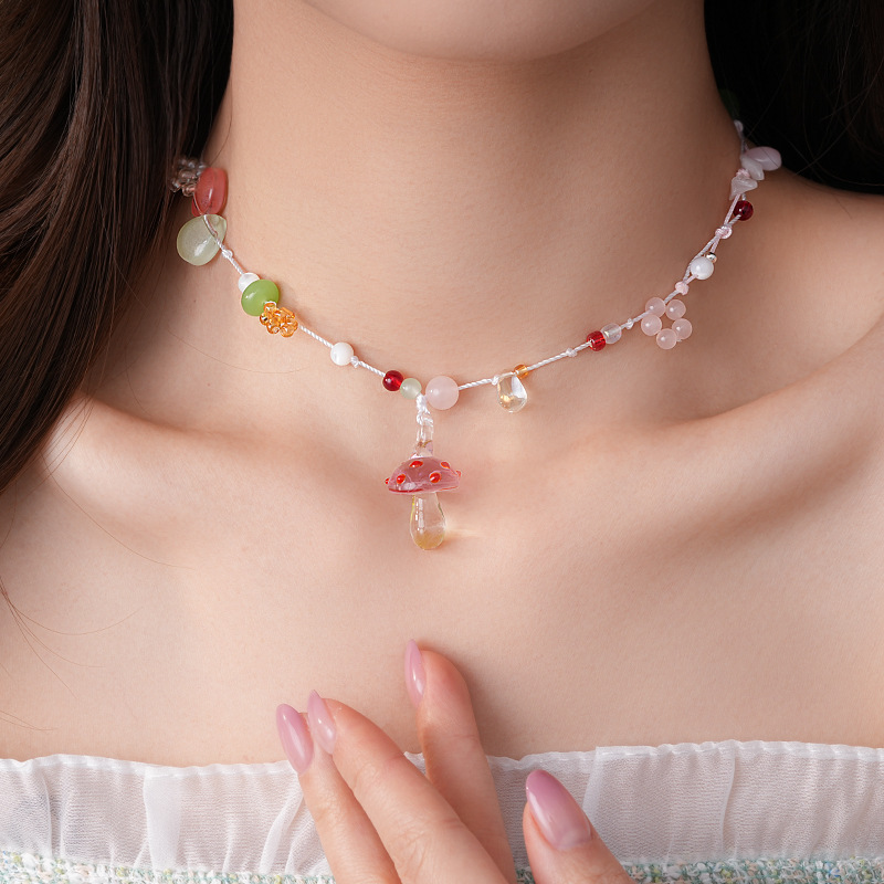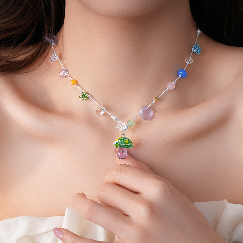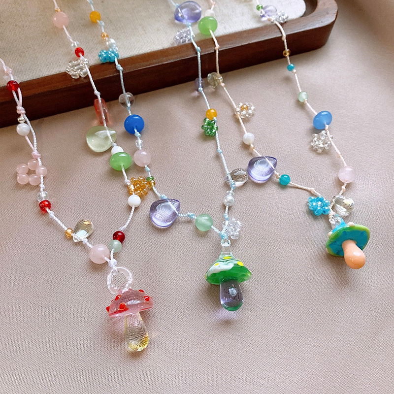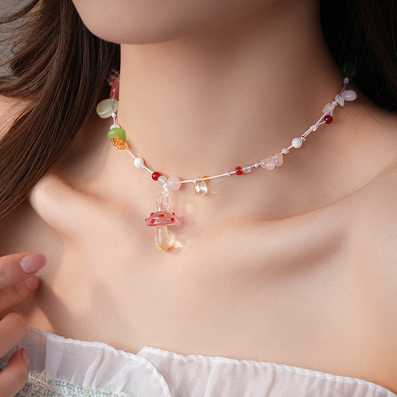 手工编织水滴花朵珍珠蘑菇吊坠项链小众锁骨链轻奢高级感项饰批发