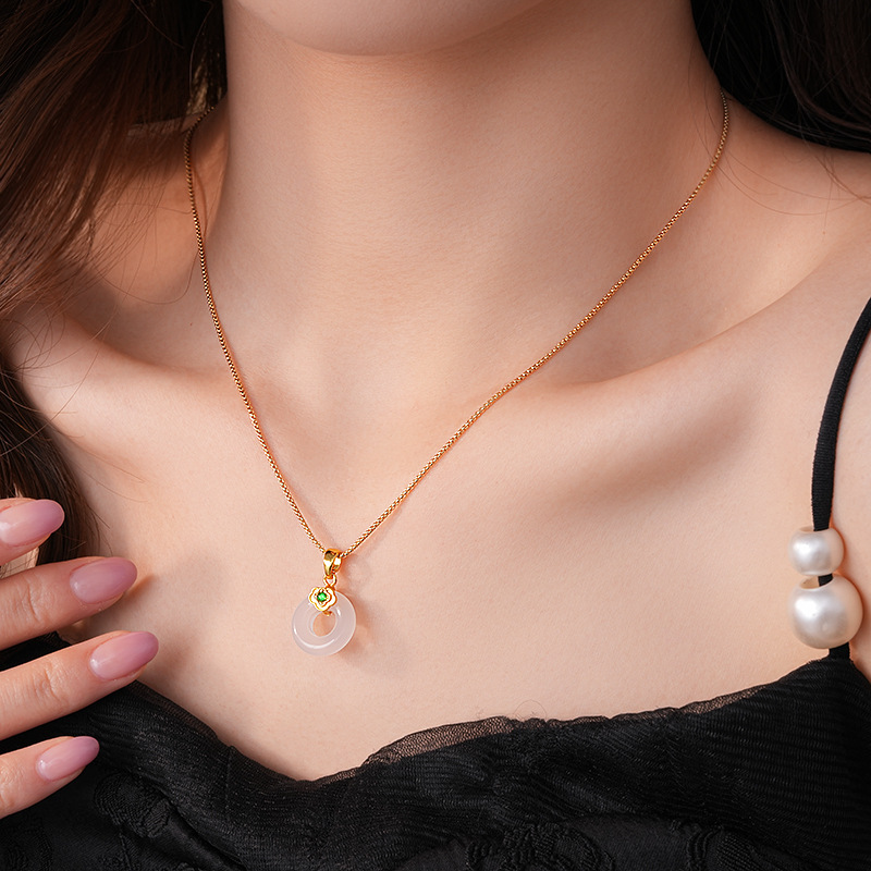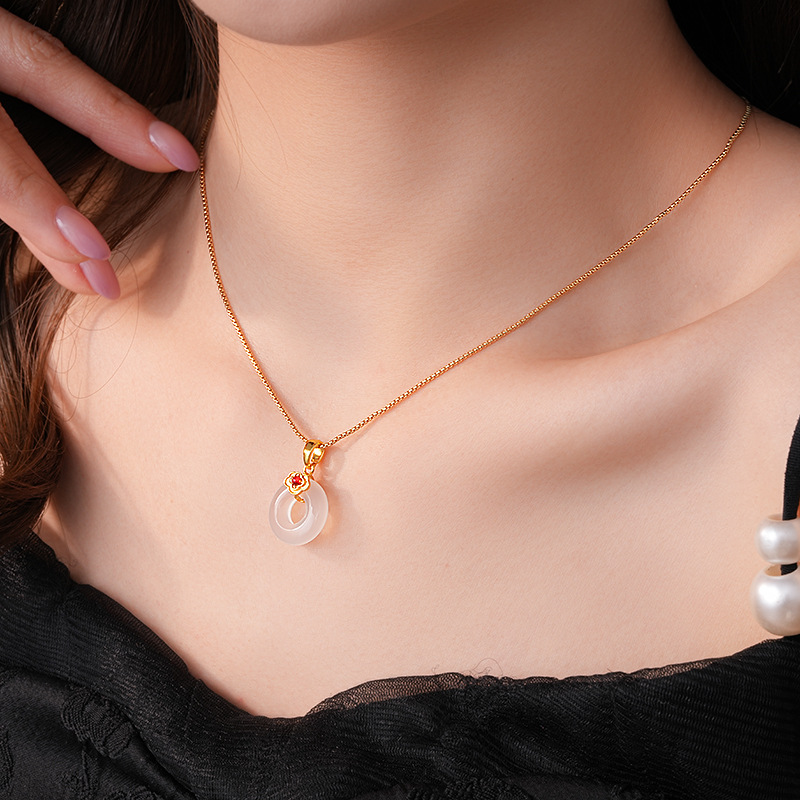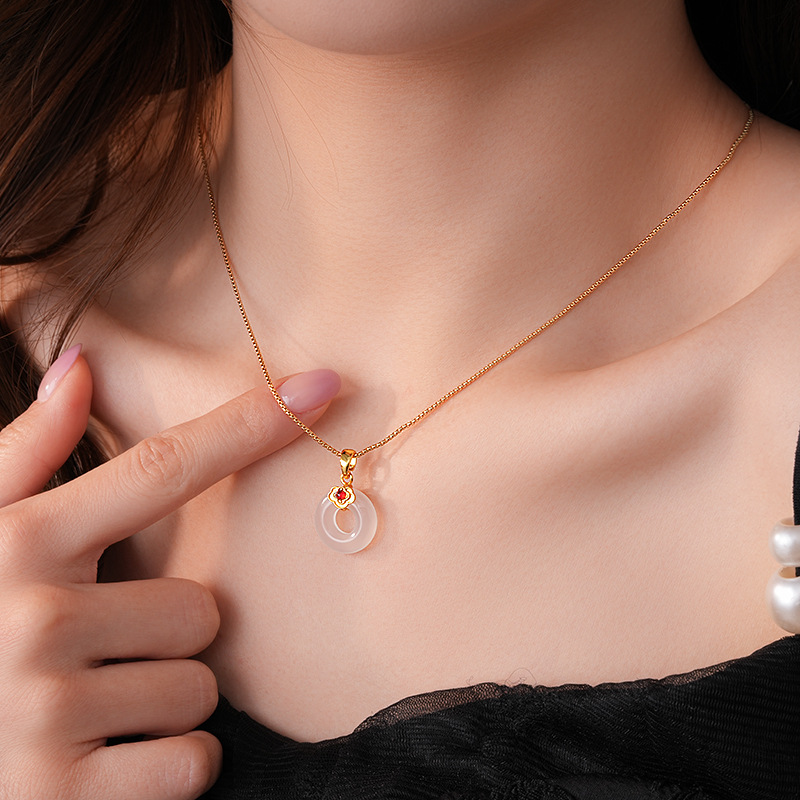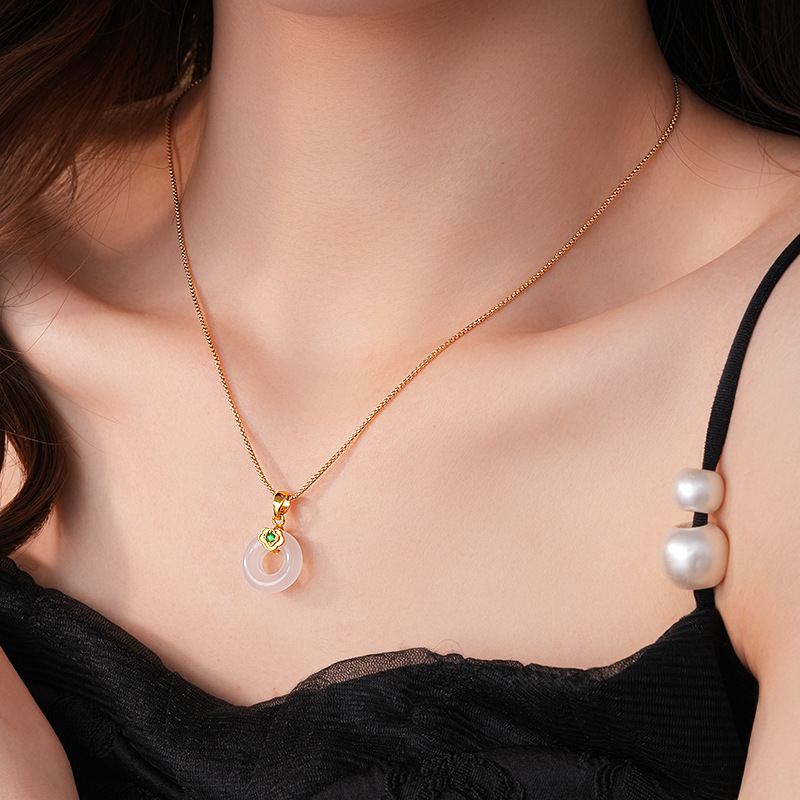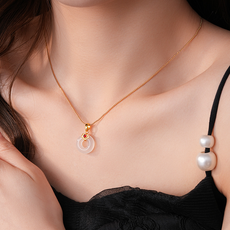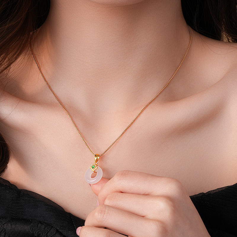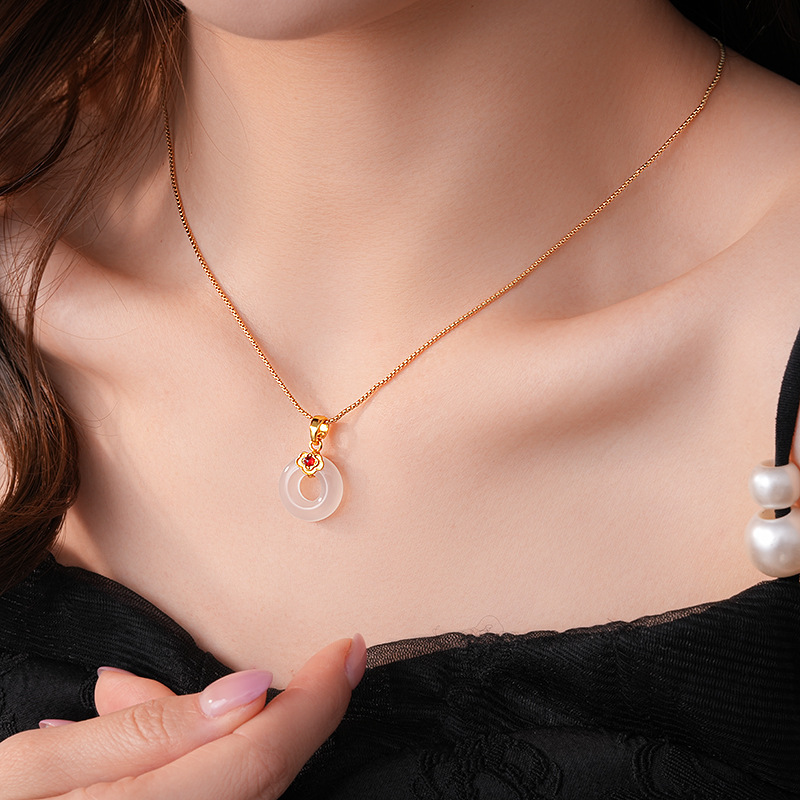 真金电镀锆石玉佩圆环玉髓项链简约高级感锁骨链女新中式项饰批发