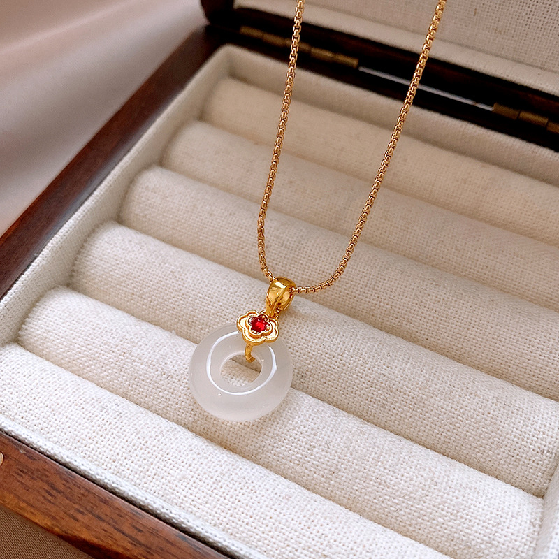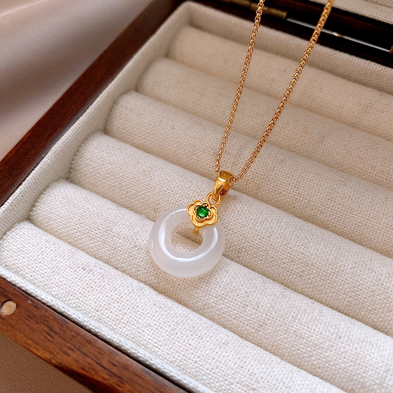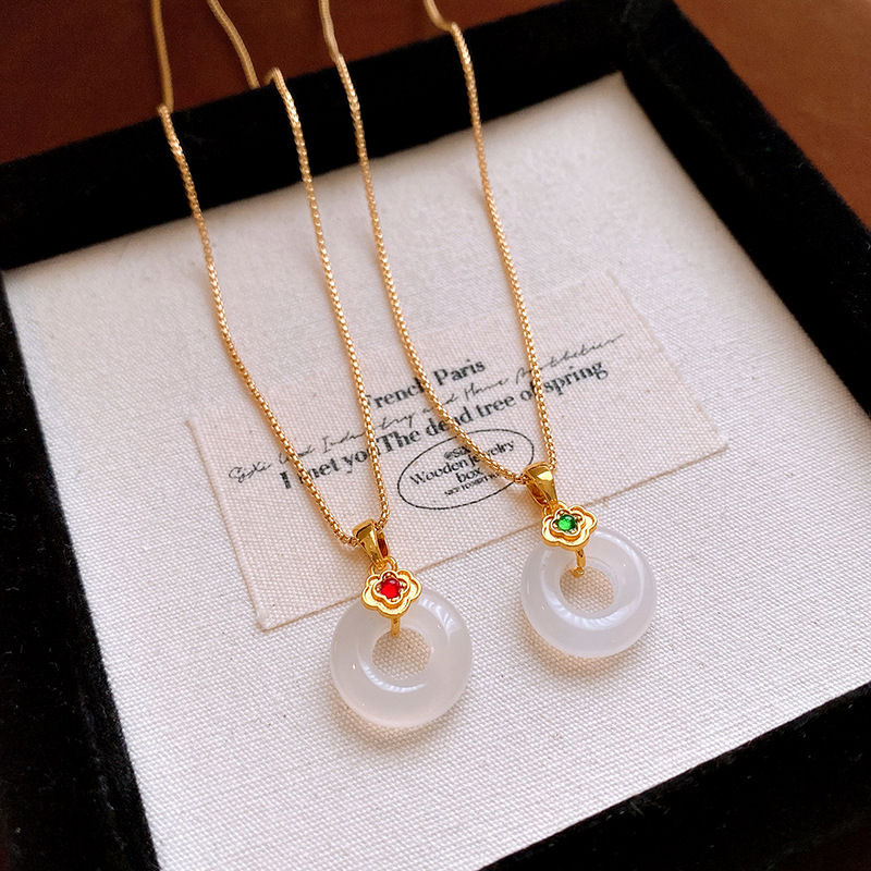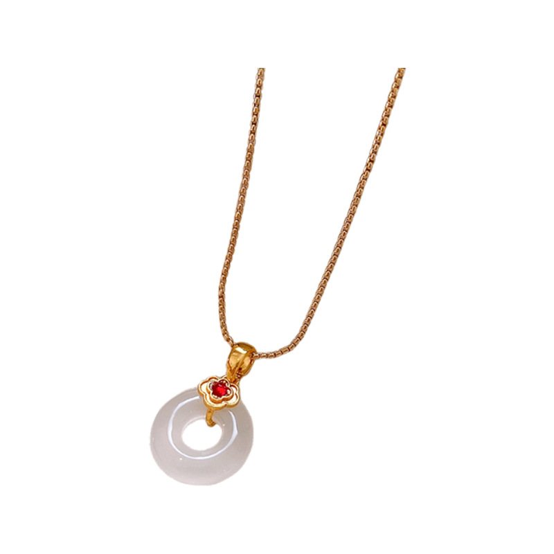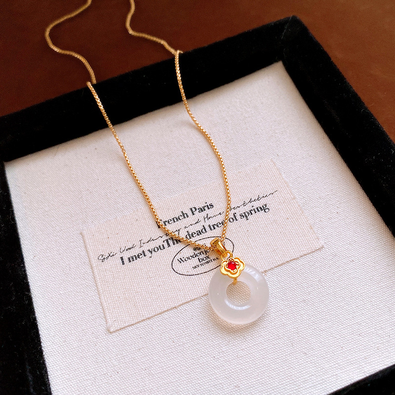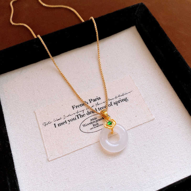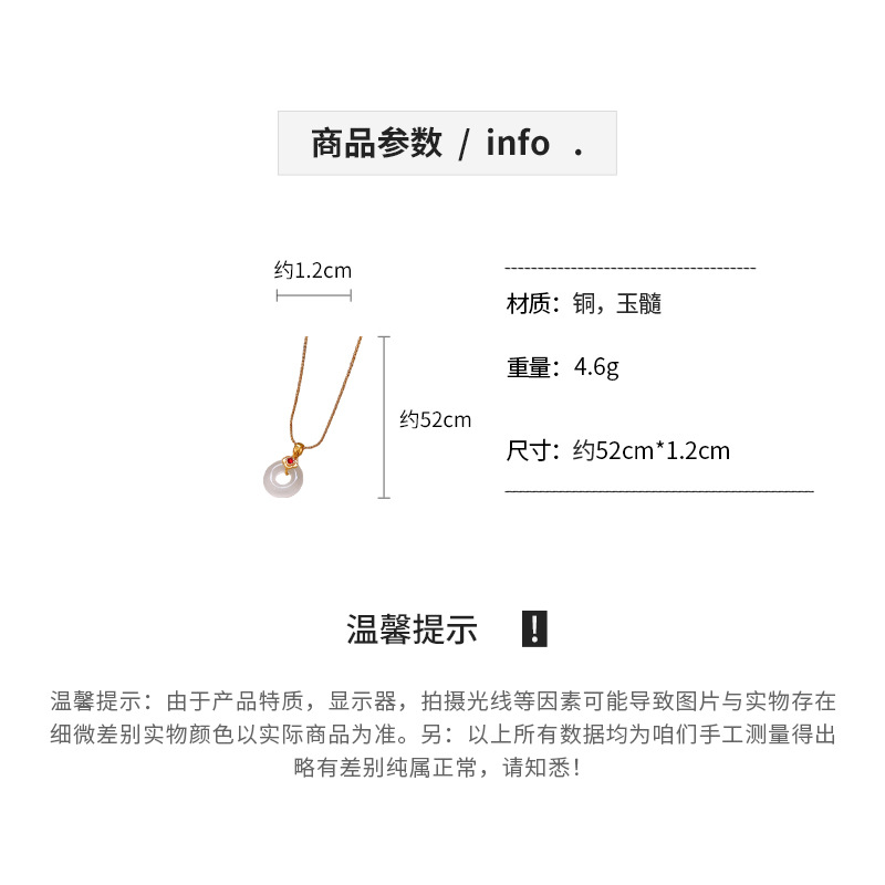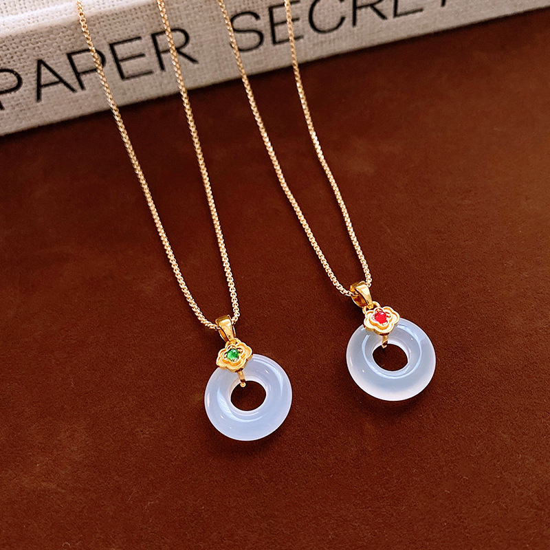 真金电镀锆石玉佩圆环玉髓项链简约高级感锁骨链女新中式项饰批发